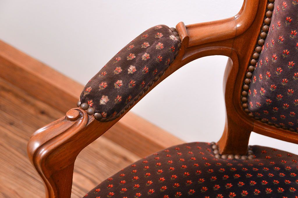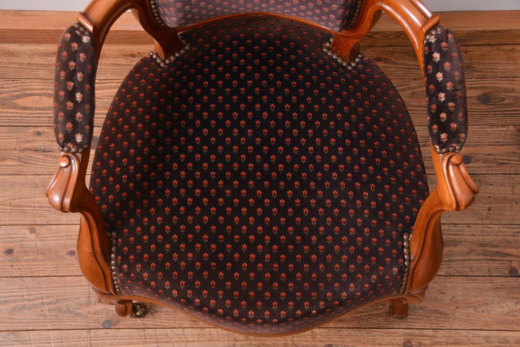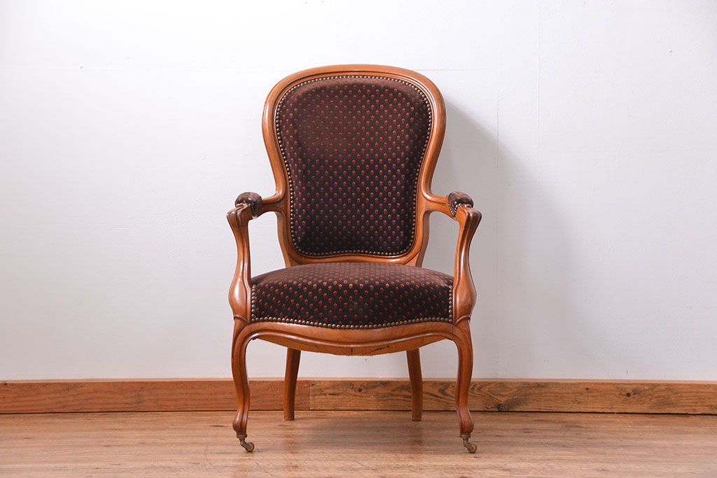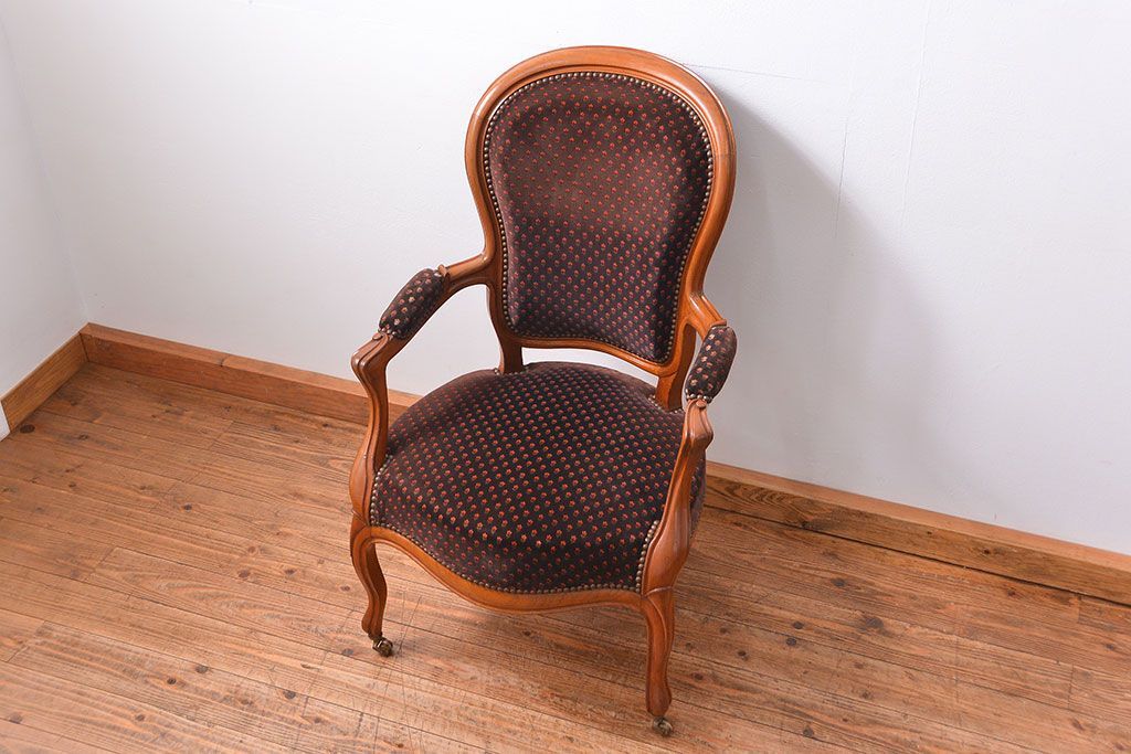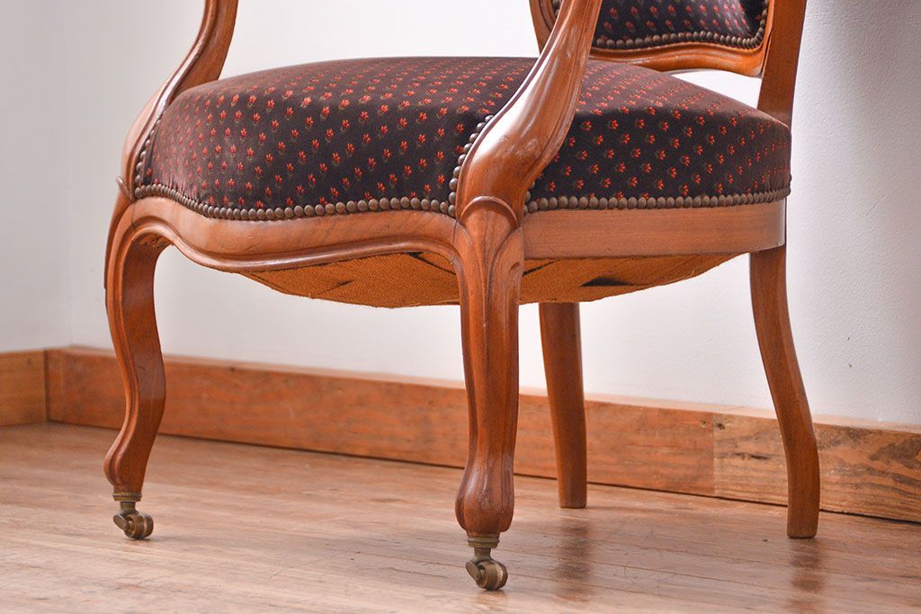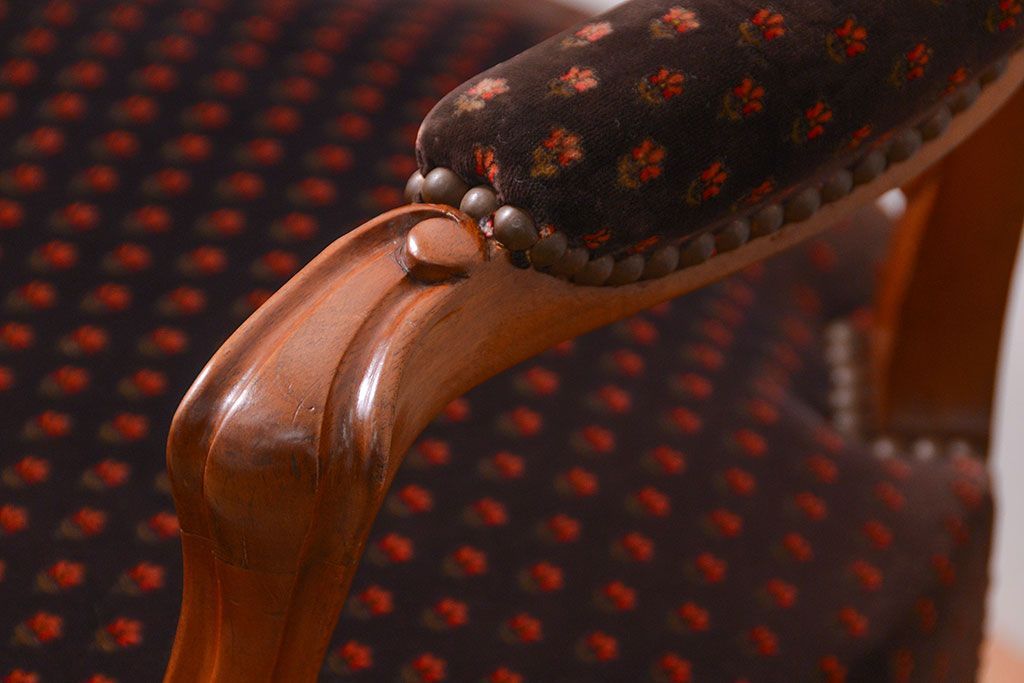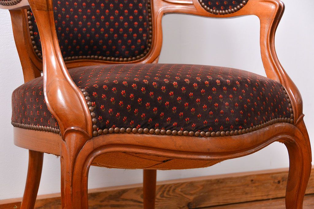 ラフジュ工房> 椅子・ベンチ> アームチェア > アンティーク家具 フランスアンティーク マホガニー材の上質なアームチェア(1) (リビングチェア、サロンチェア、椅子、イス)