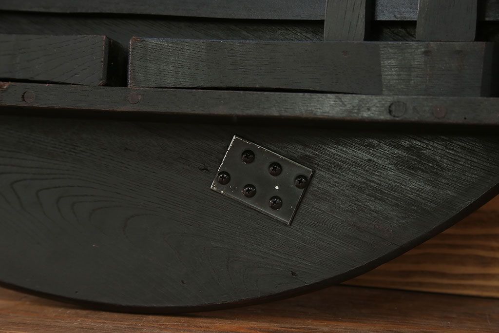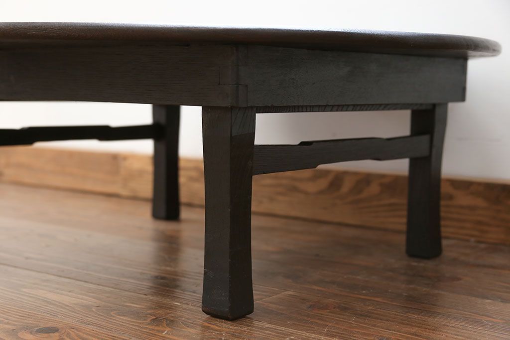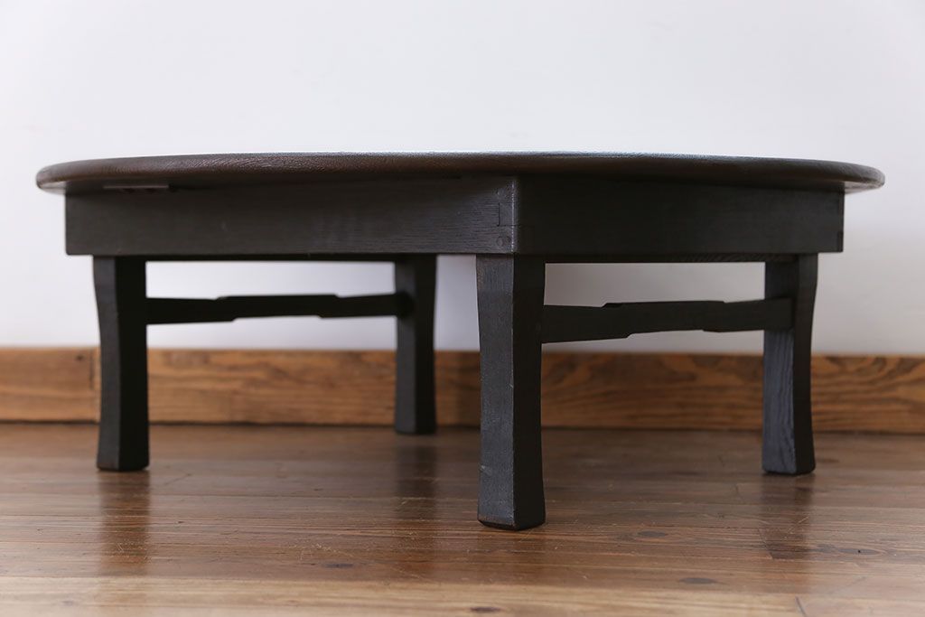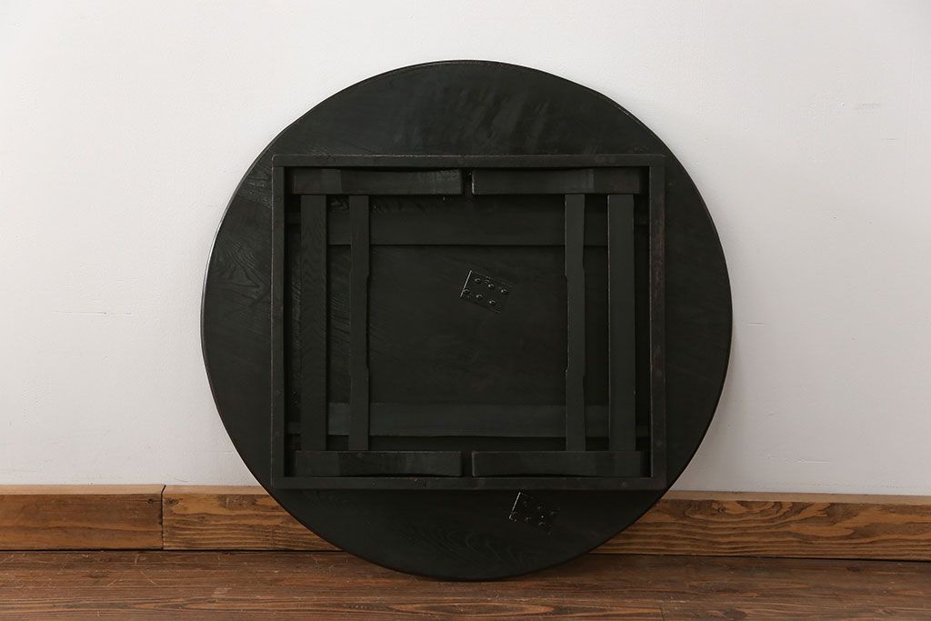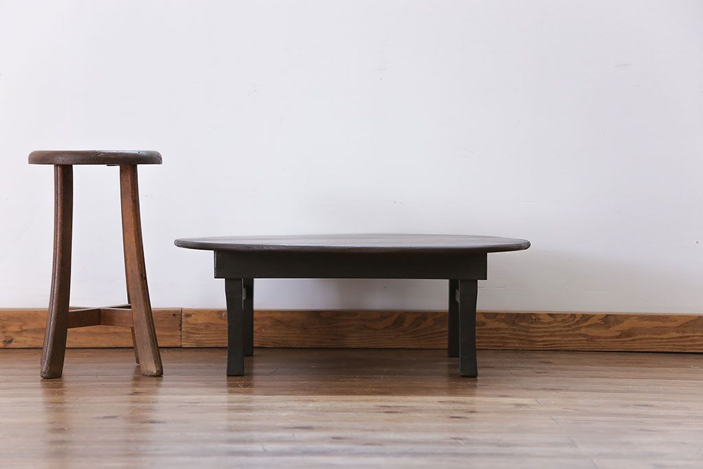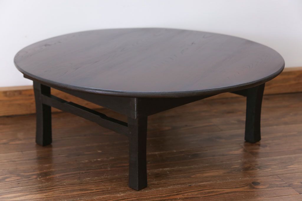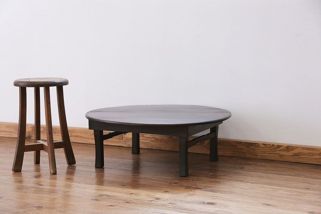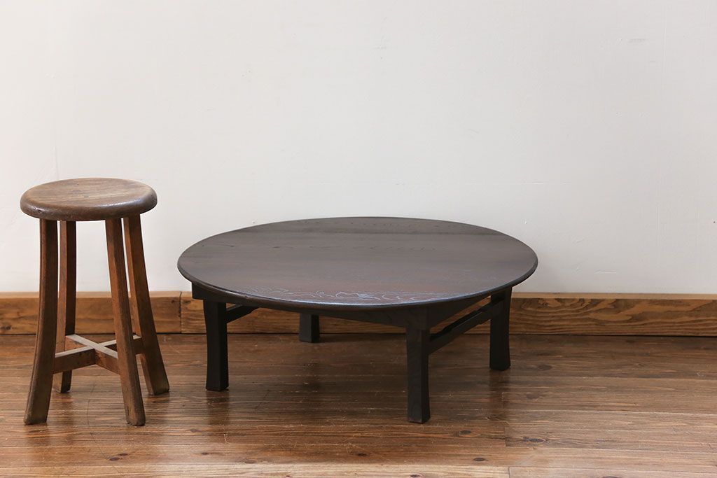 レトロ家具 昭和レトロ 古い栓材のシックな丸型ちゃぶ台 (座卓、座机)