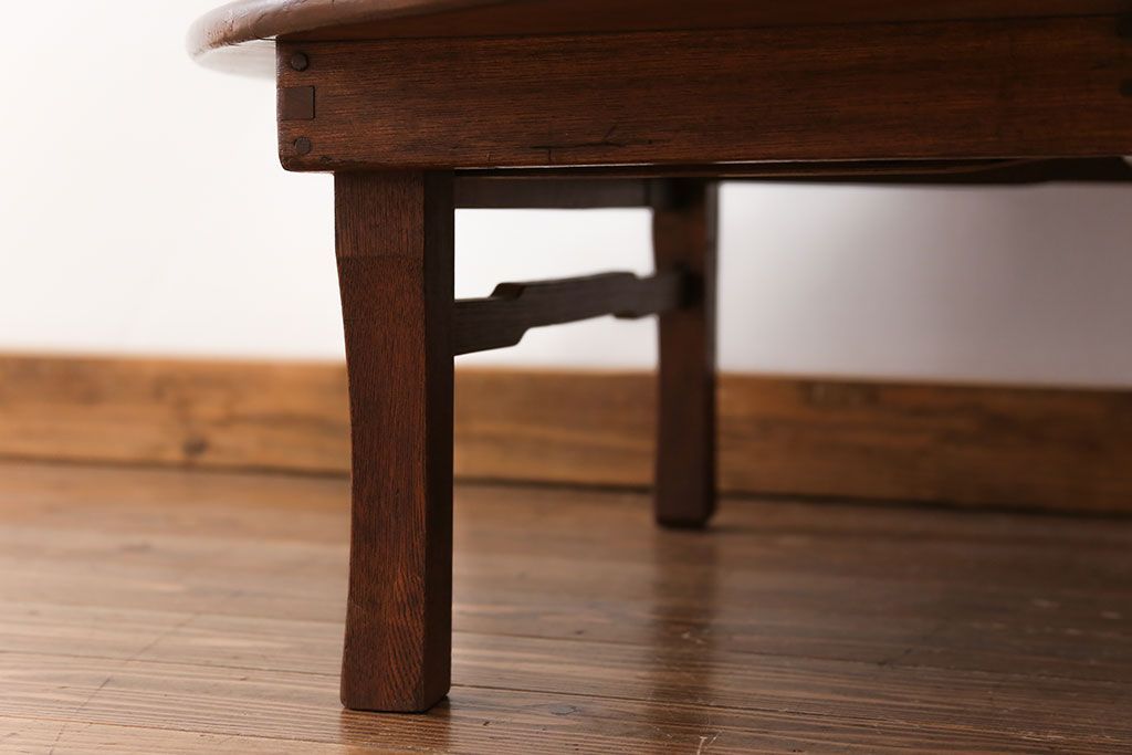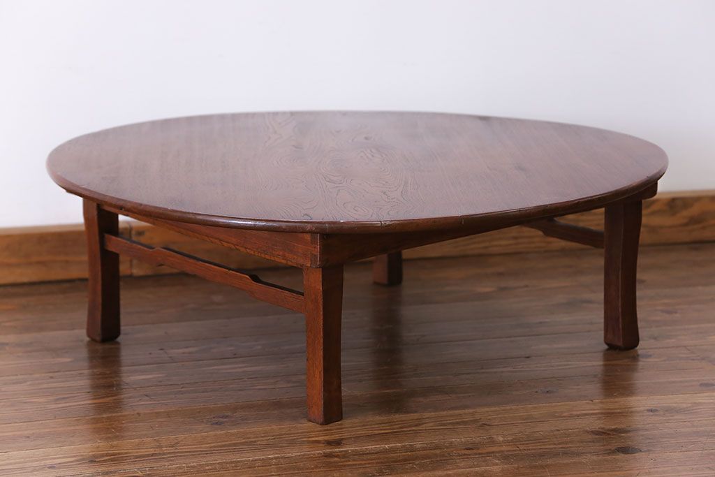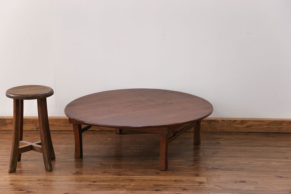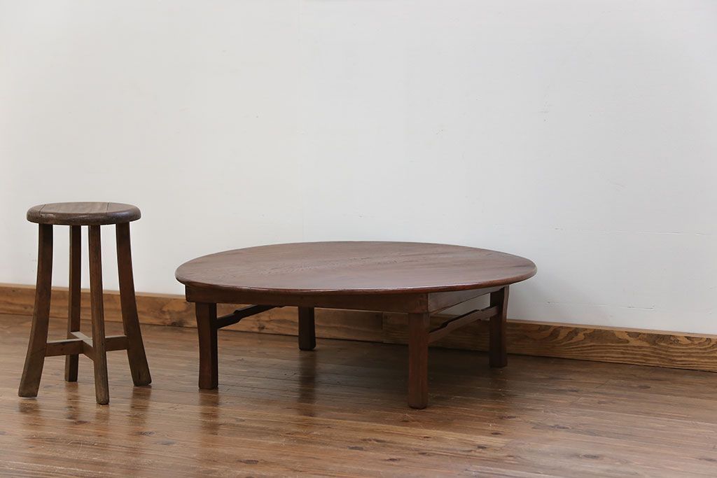 レトロ家具 昭和レトロ 古い栓材の丸型ちゃぶ台 (テーブル、机)