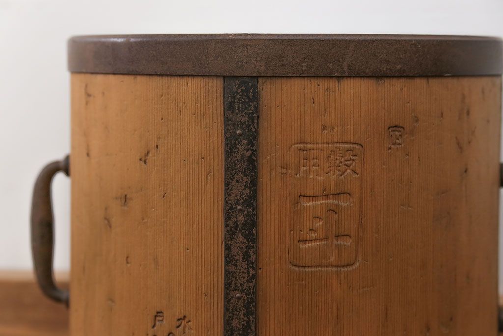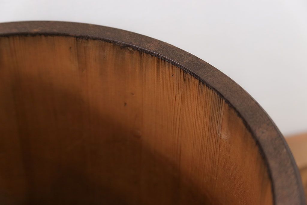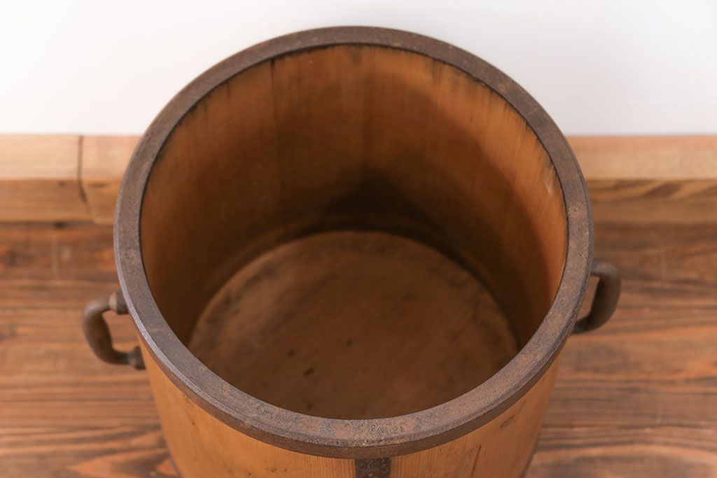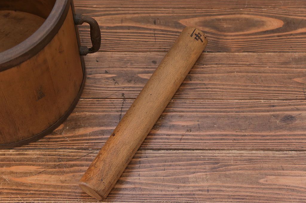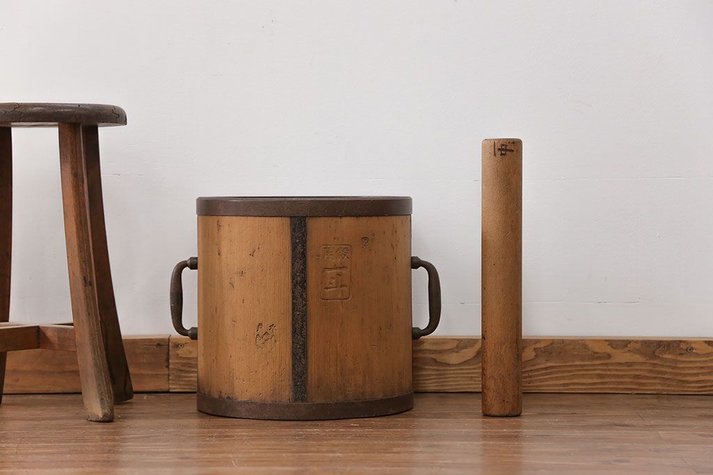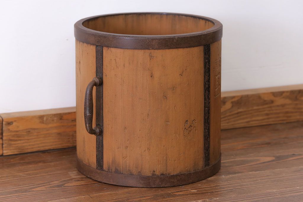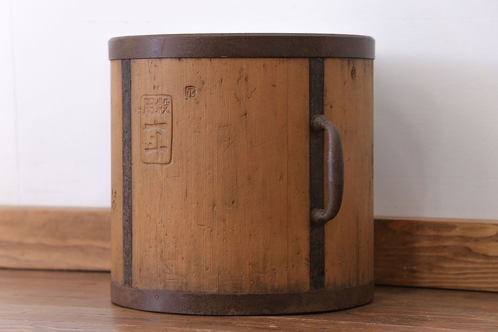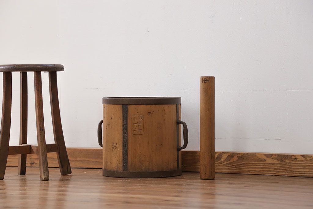 アンティーク雑貨 アンティーク 古い木の棒付き一斗升 (一斗マス、マガジンラック、ゴミ箱)