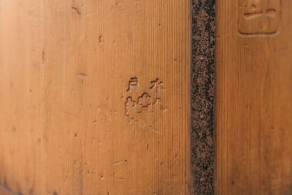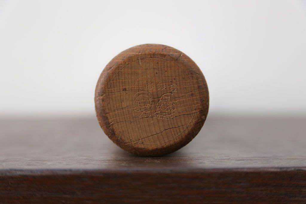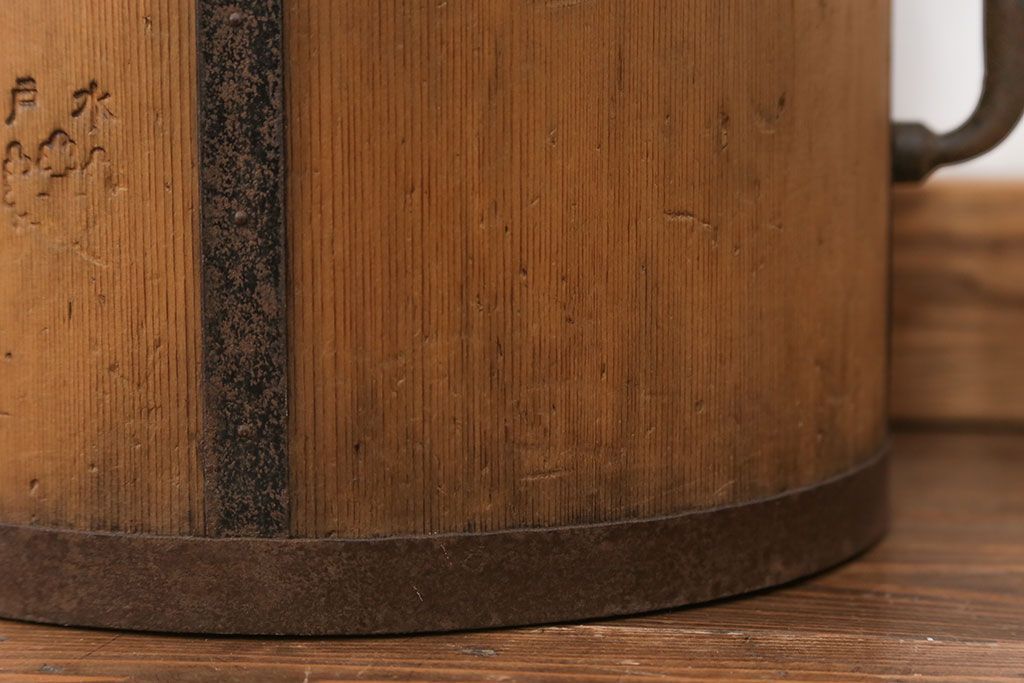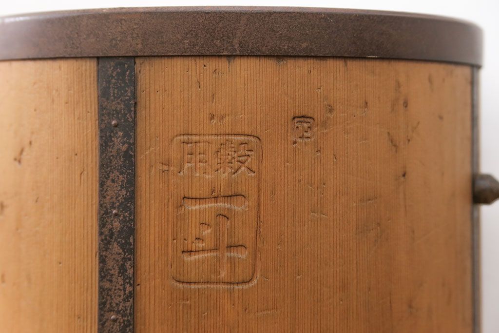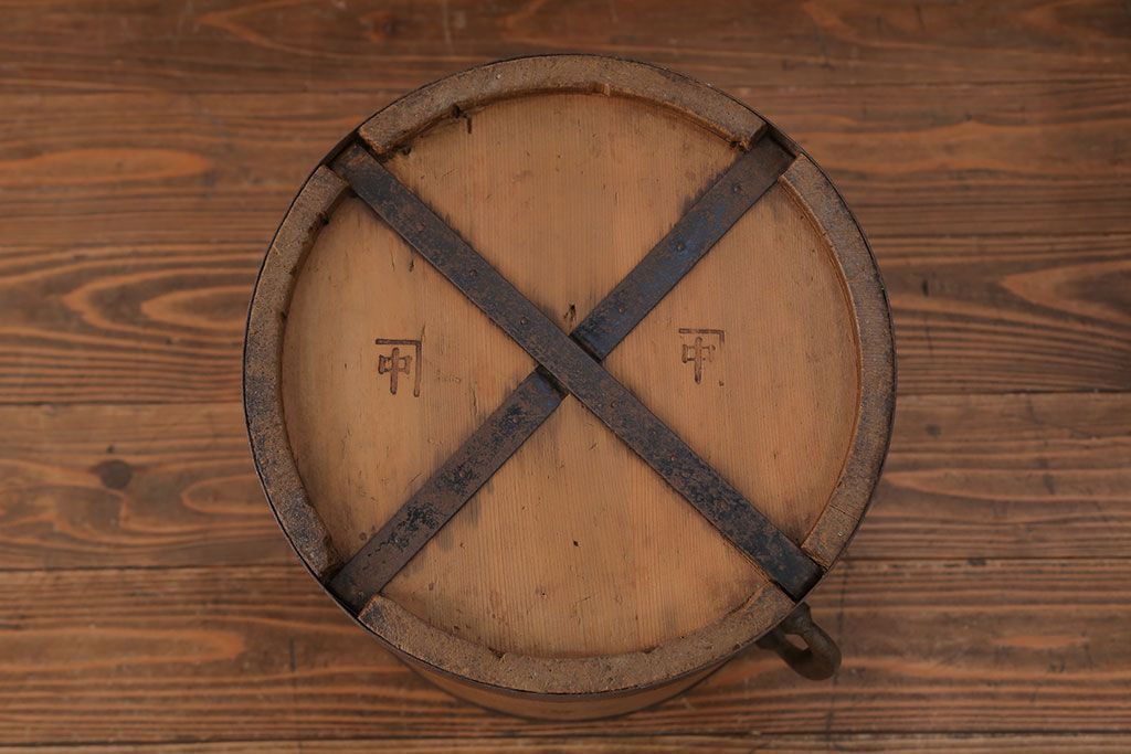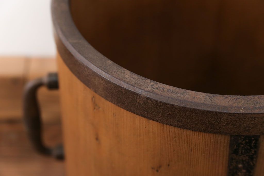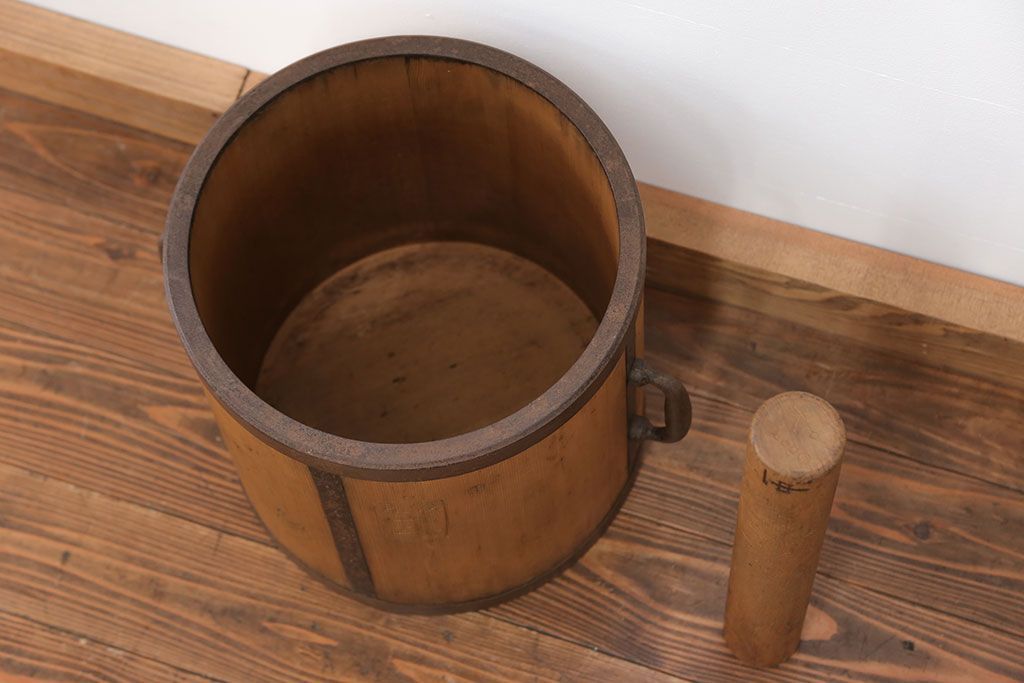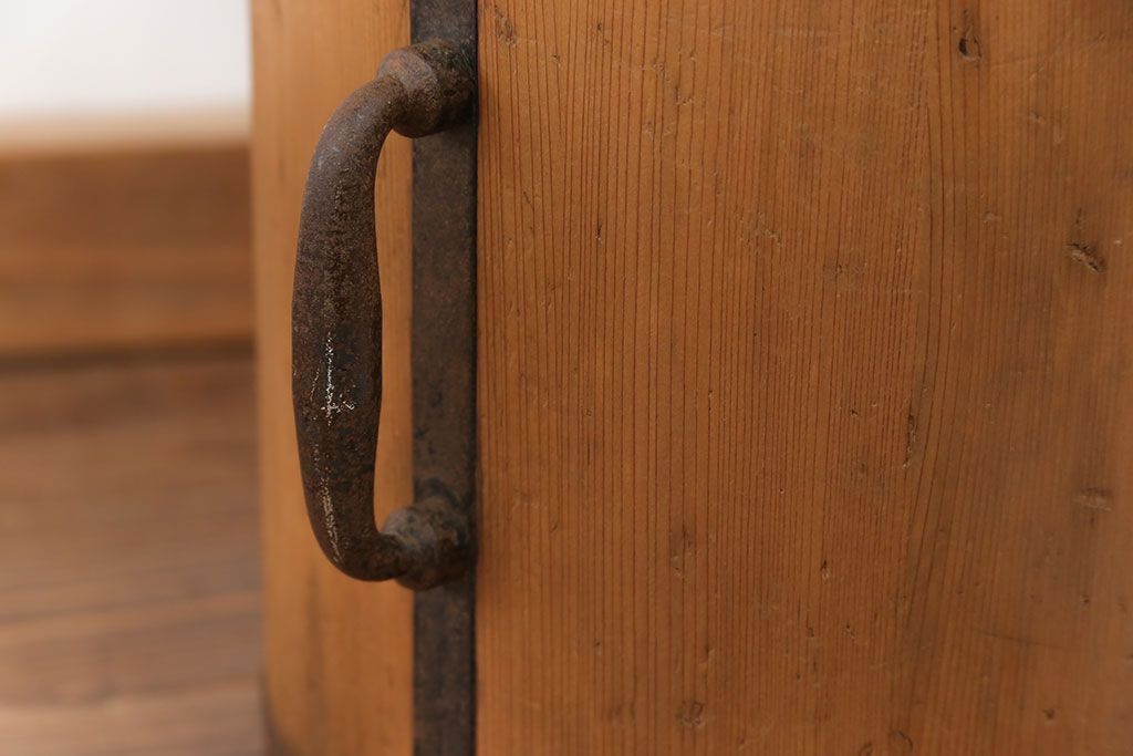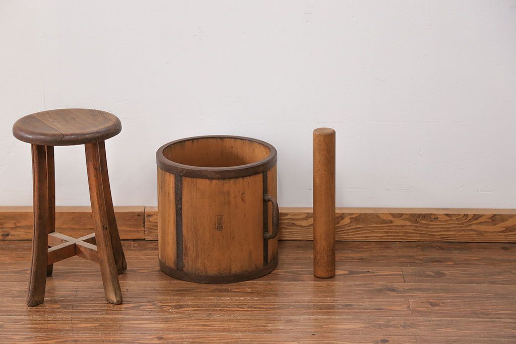 アンティーク雑貨 アンティーク 古い木の棒付き一斗升 (一斗マス、マガジンラック、ゴミ箱)