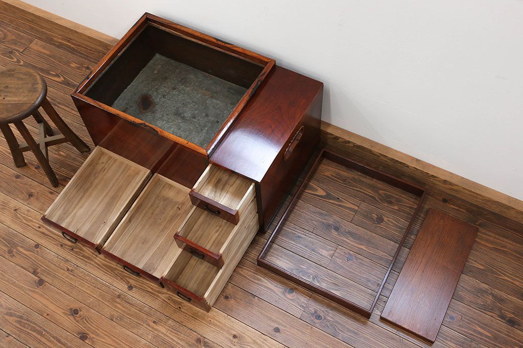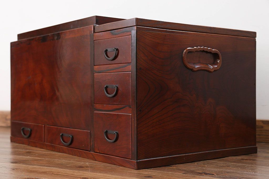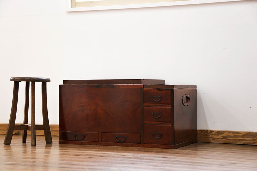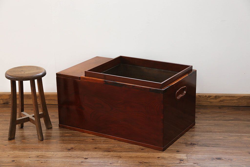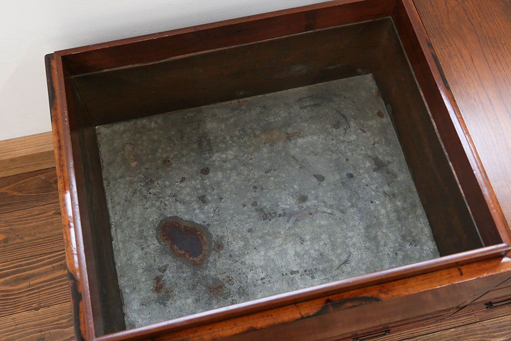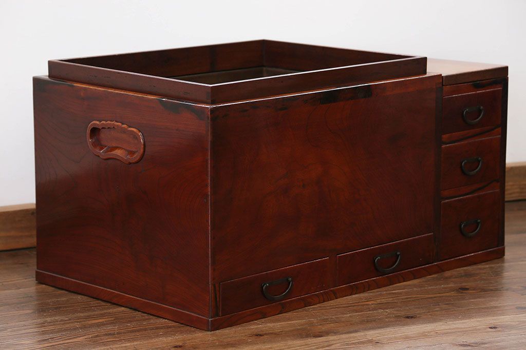 アンティーク雑貨 古民具・骨董 古い欅材の大振りな長火鉢(オカロ、囲炉裏)