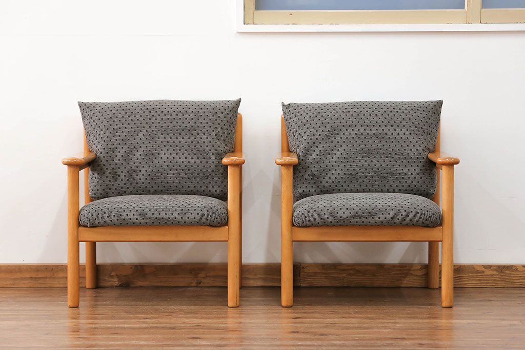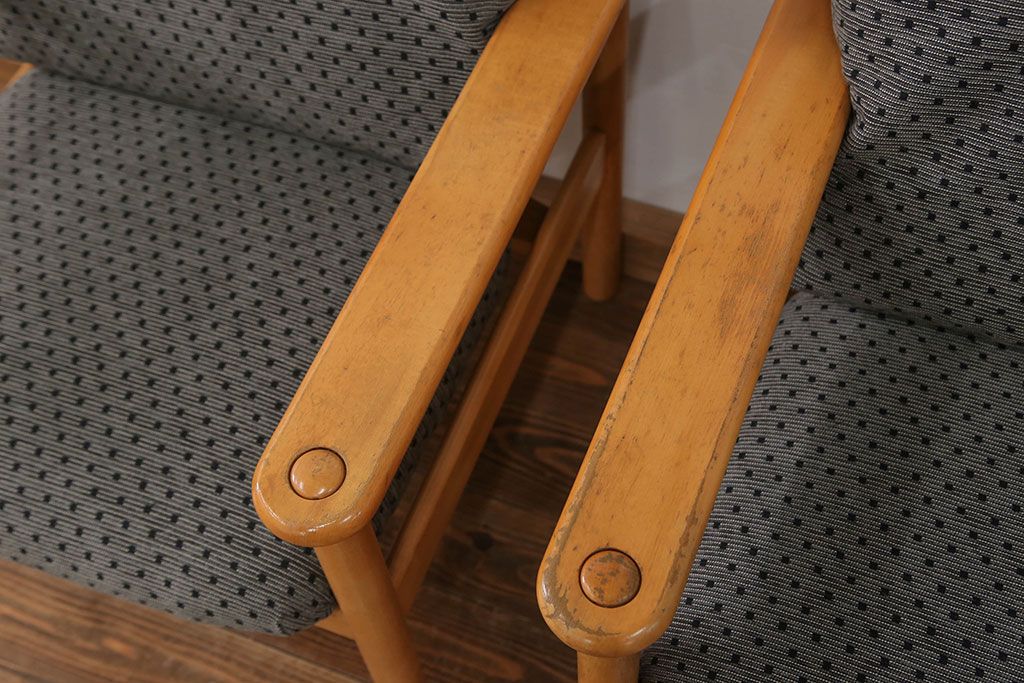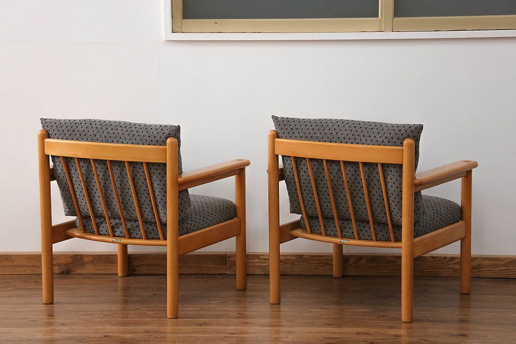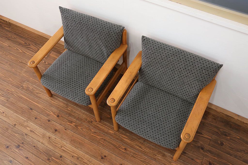 中古 カリモク家具のビンテージ品! レトロなアームチェア2脚セット(1人掛けソファ)
