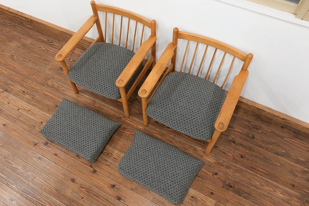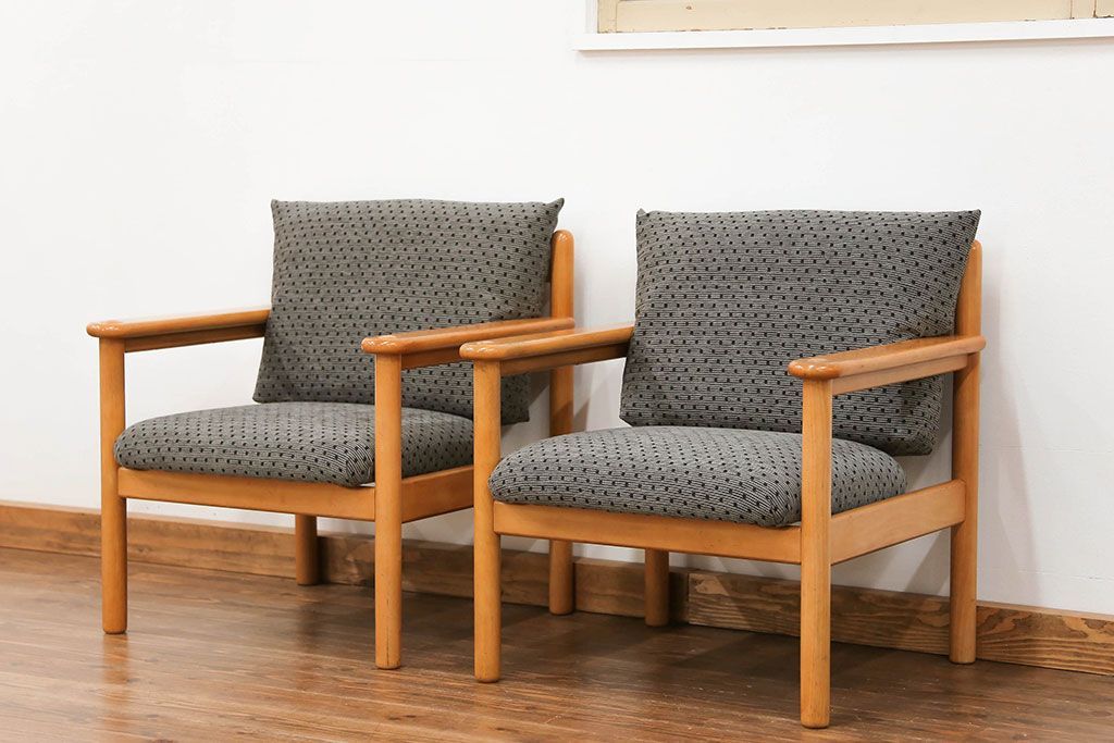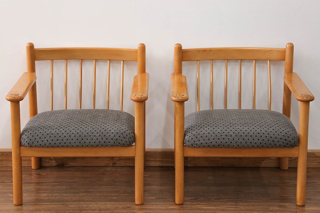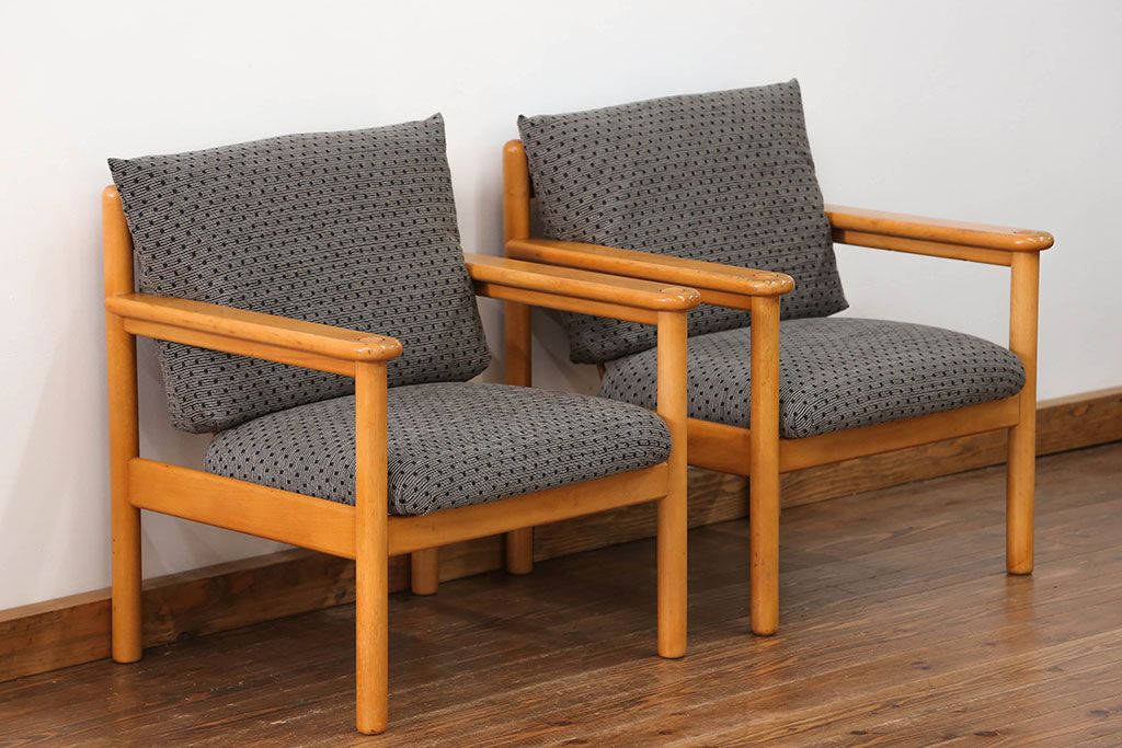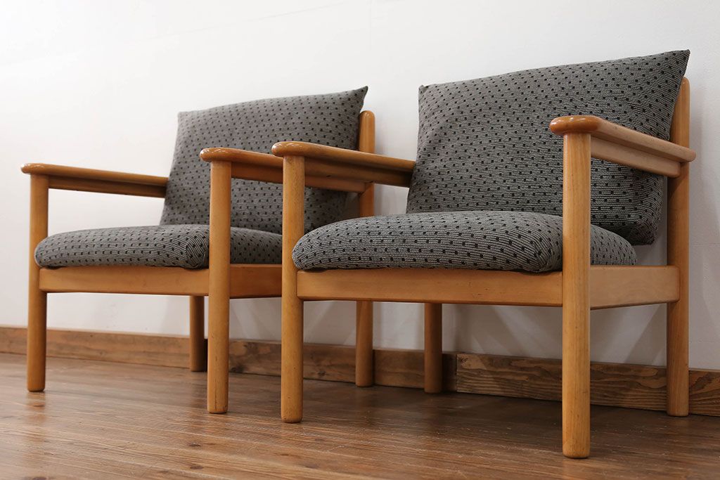 中古 カリモク家具のビンテージ品! レトロなアームチェア2脚セット(1人掛けソファ)