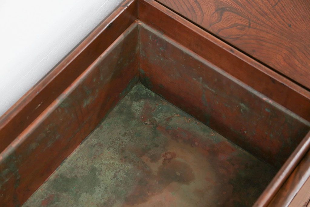 アンティーク雑貨 古民具・骨董 総欅材の長火鉢(オカロ、囲炉裏)