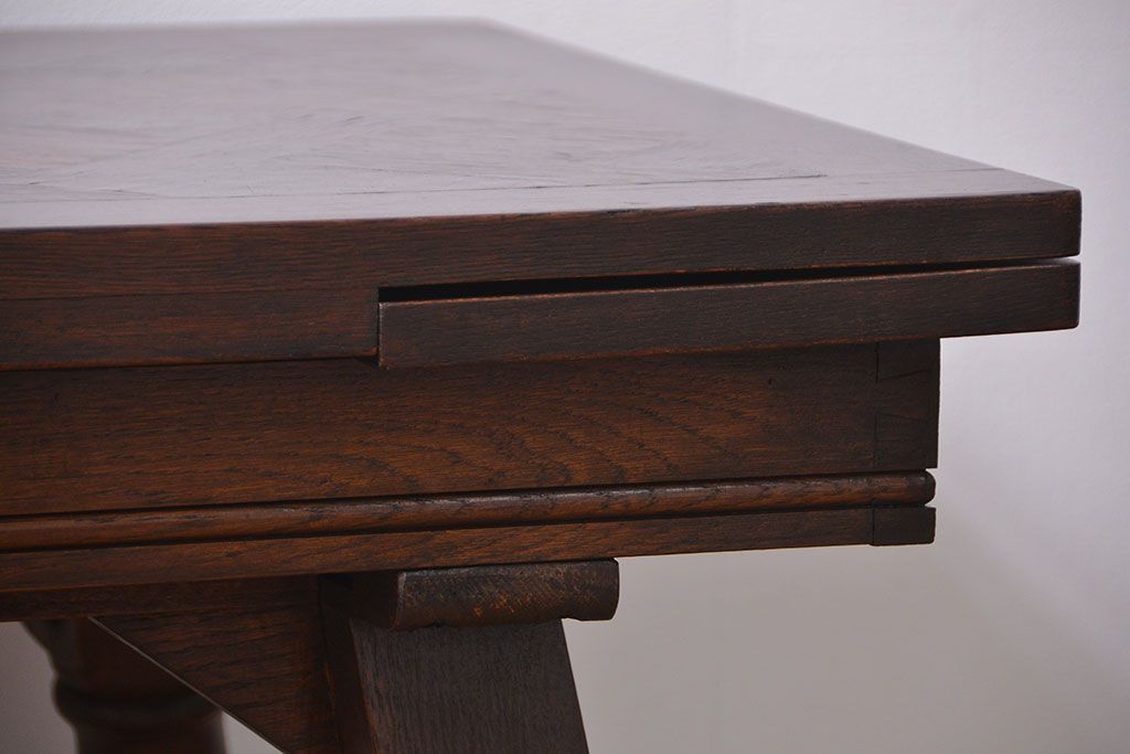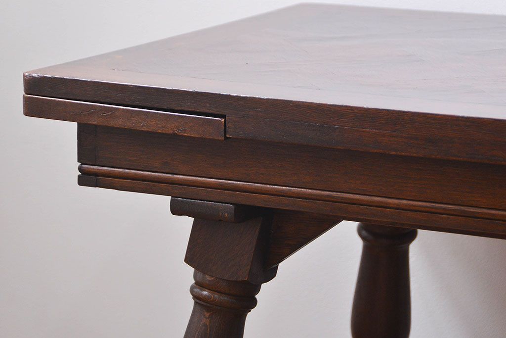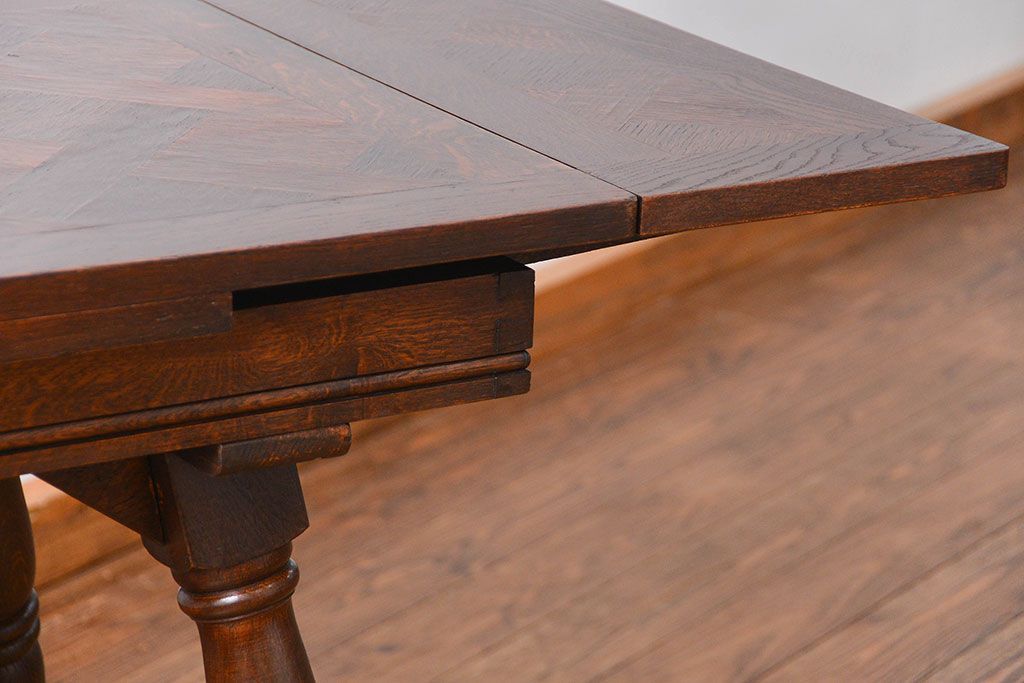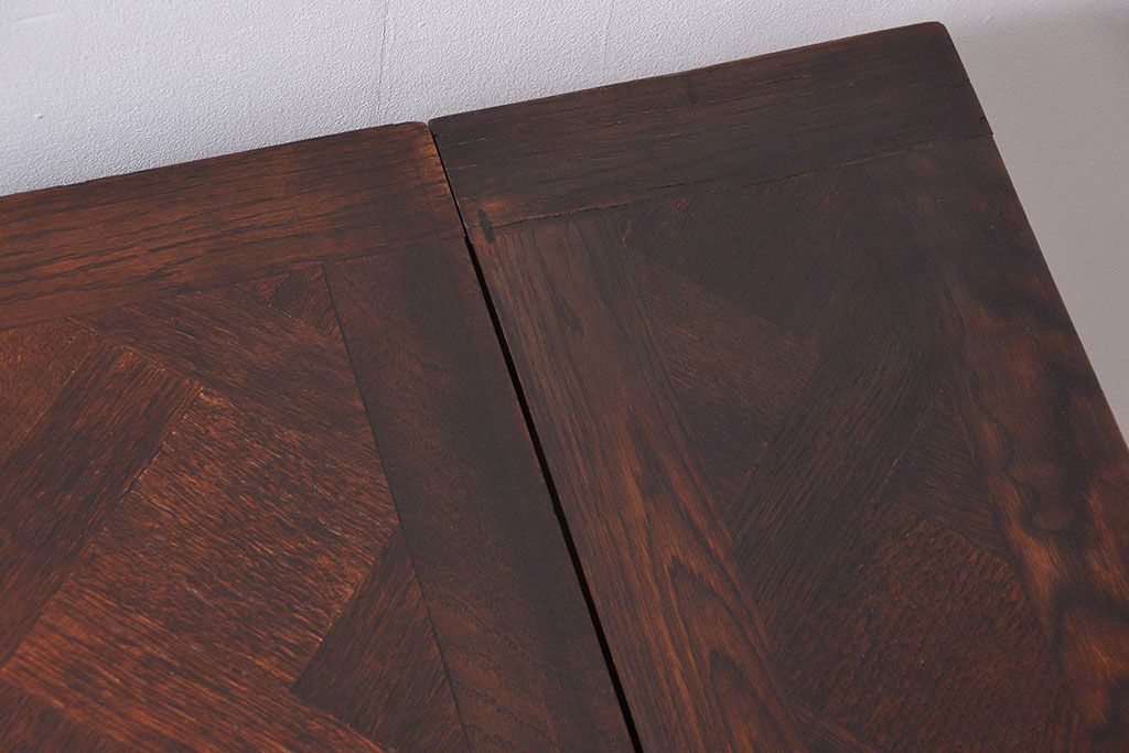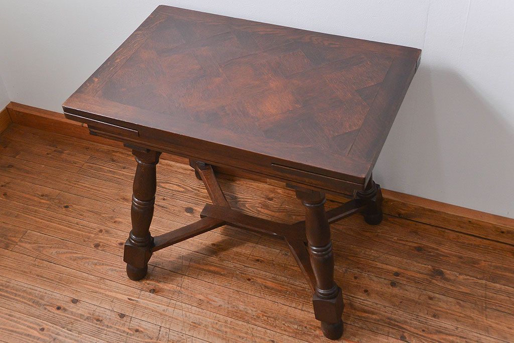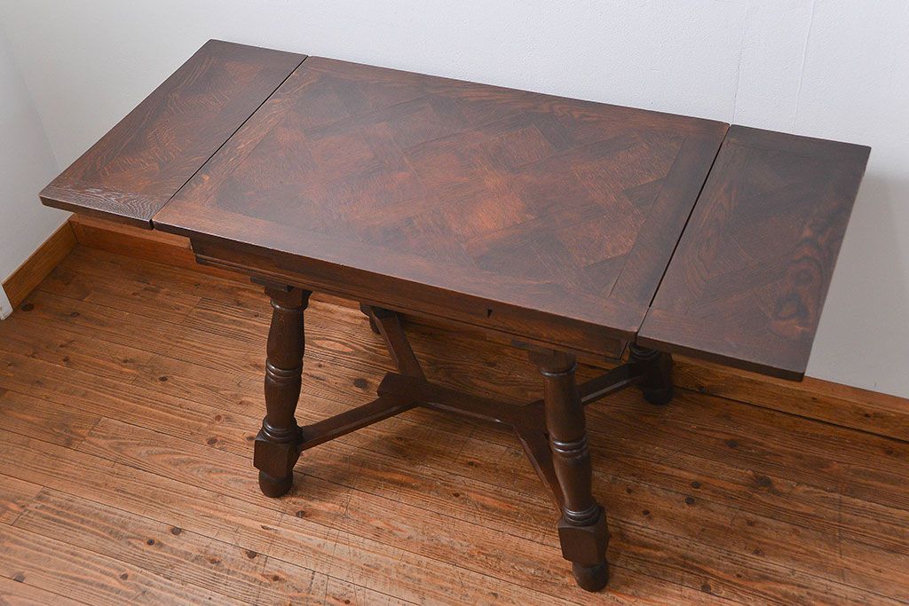 アンティーク家具 フランスアンティーク 寄木細工天板!ドローリーフテーブル(エクステンションテーブル)