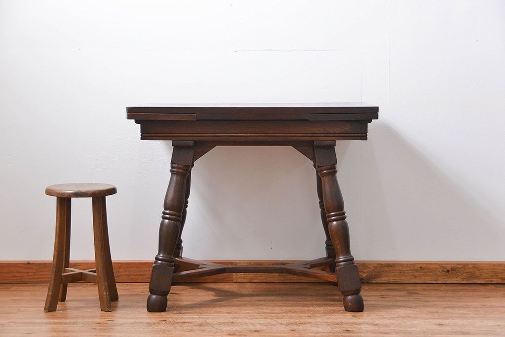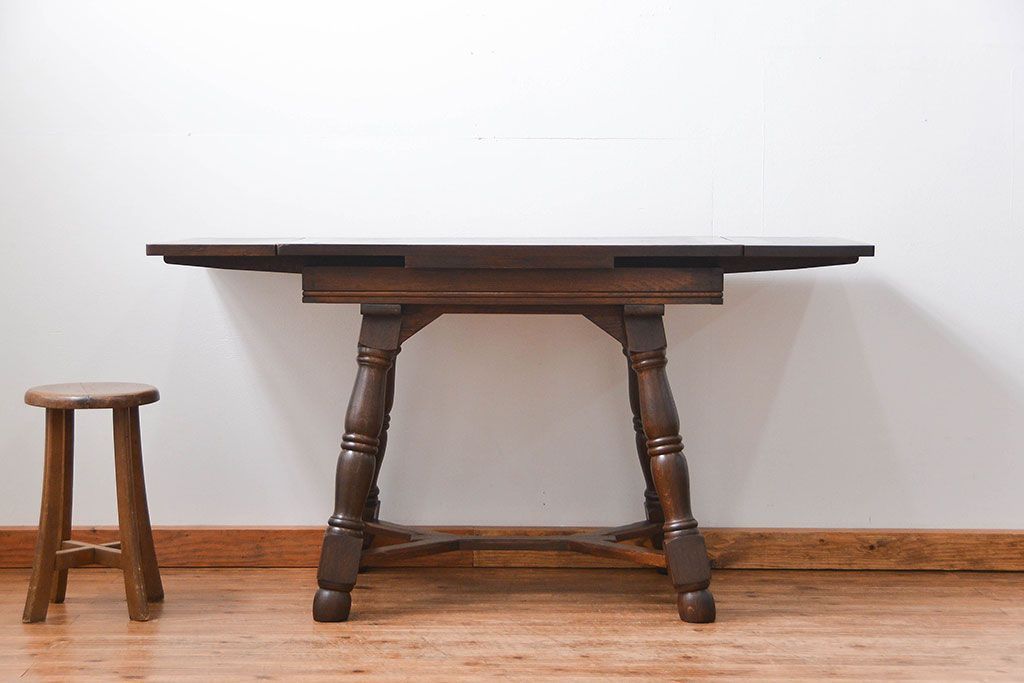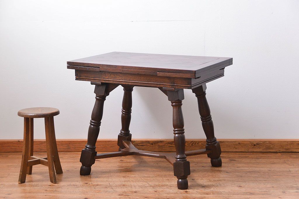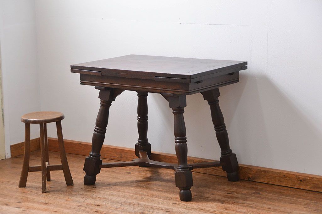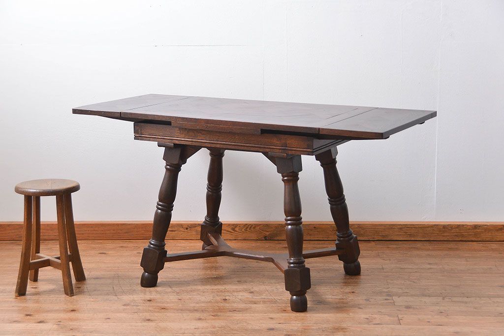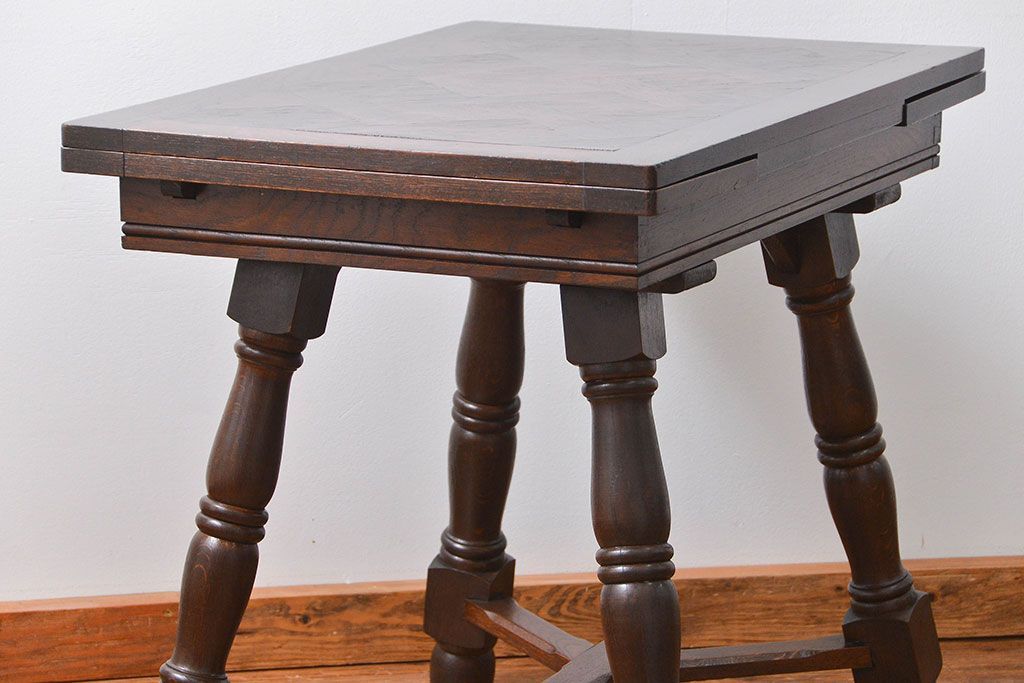 アンティーク家具 フランスアンティーク 寄木細工天板!ドローリーフテーブル(エクステンションテーブル)