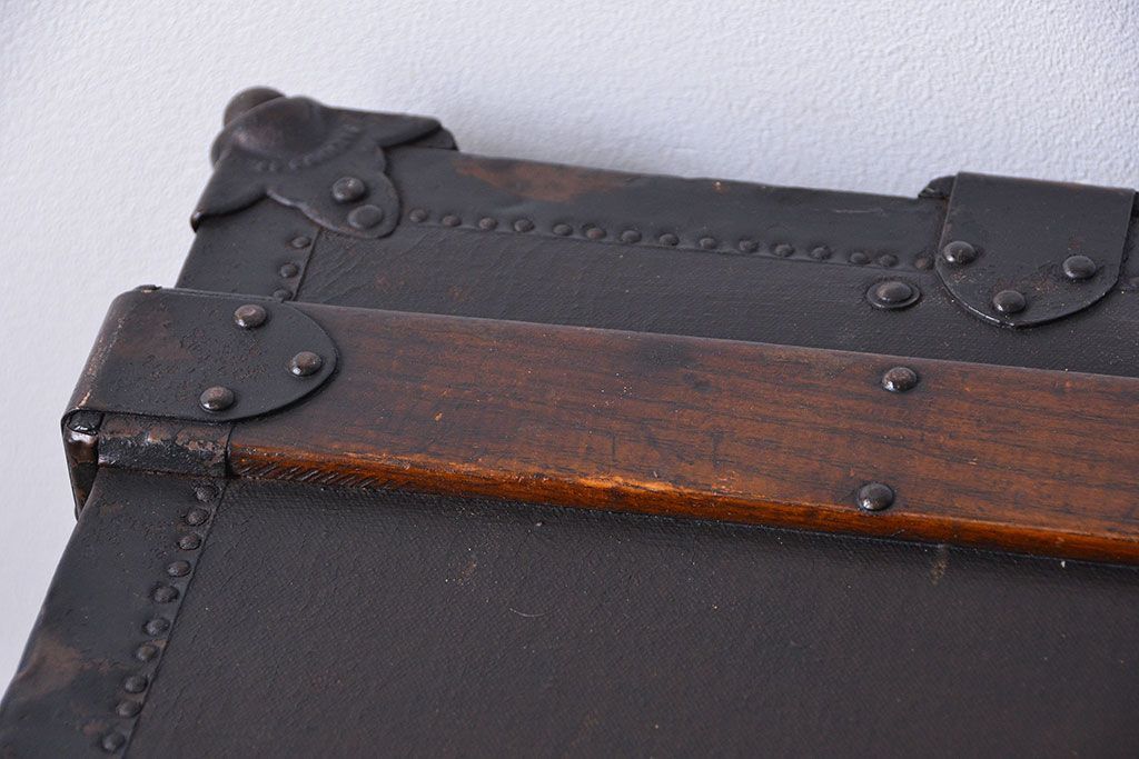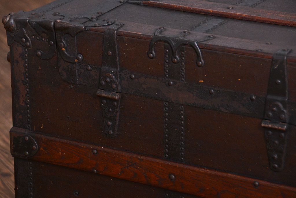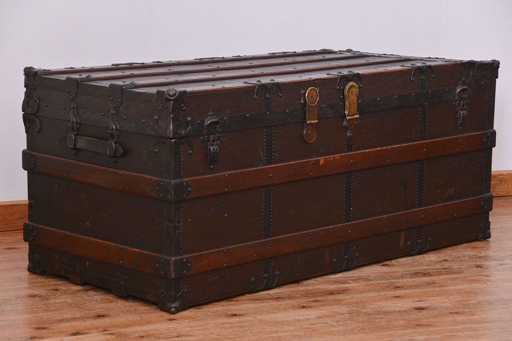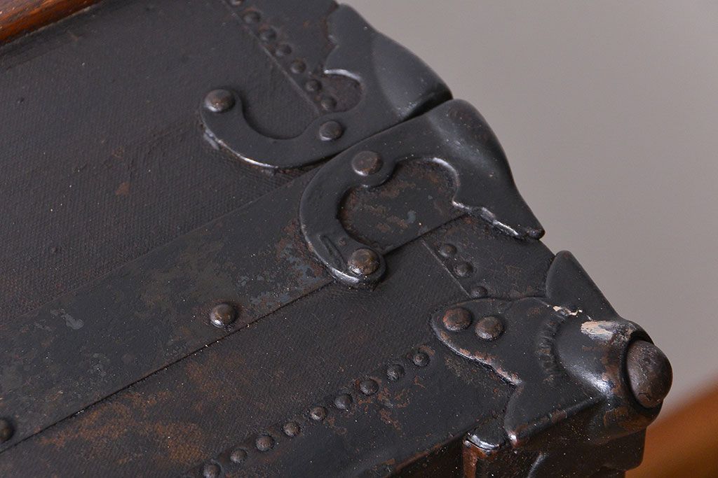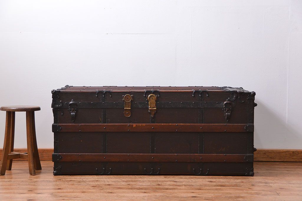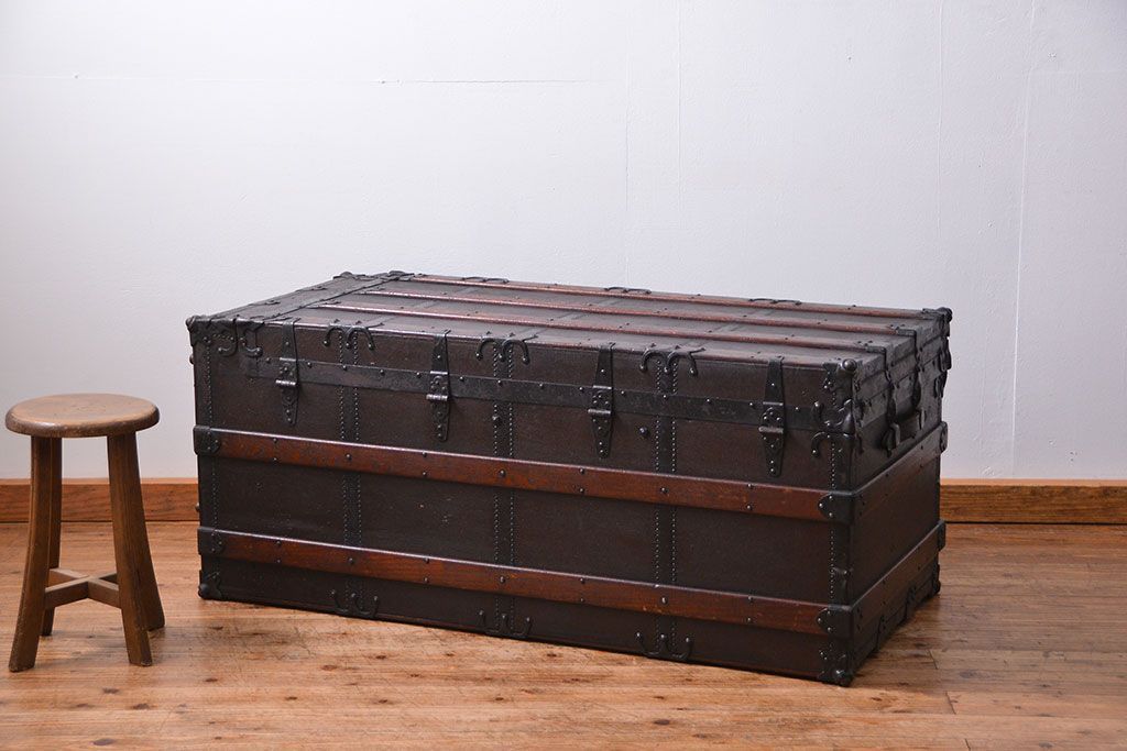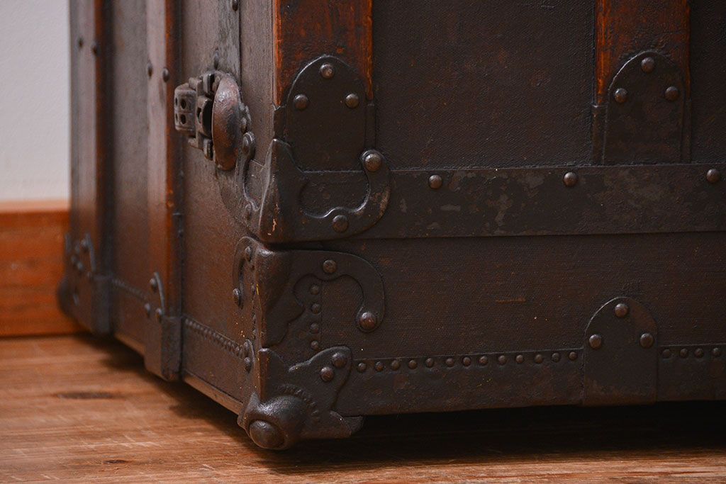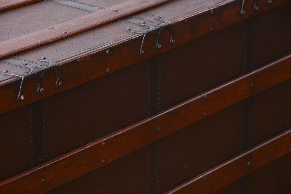ラフジュ工房> 小物収納・トランク > アンティーク雑貨 イギリスンティーク 豪華な厚手の金具に覆われた船のトランク(テーブル)