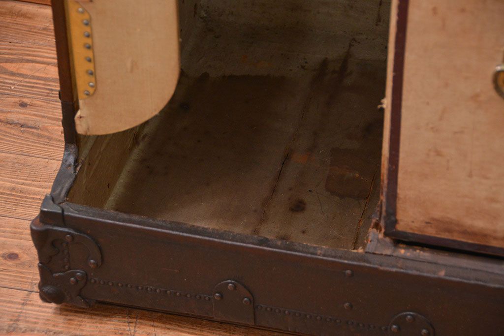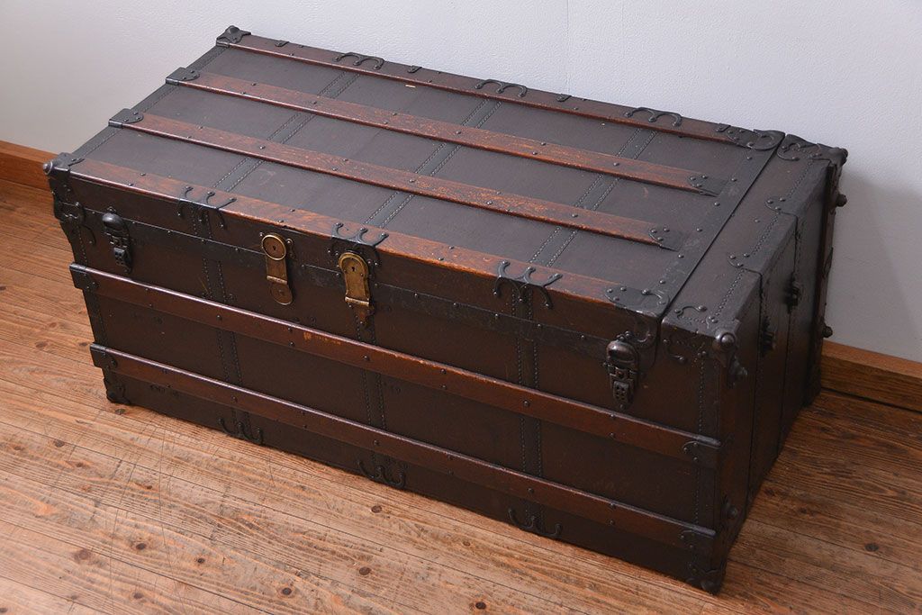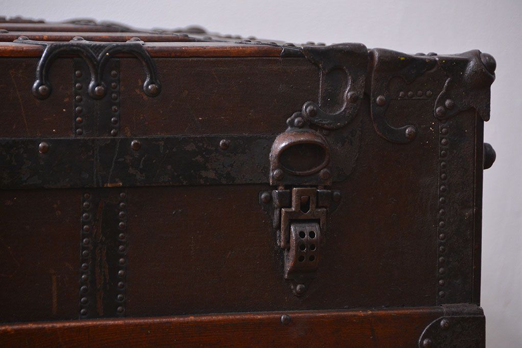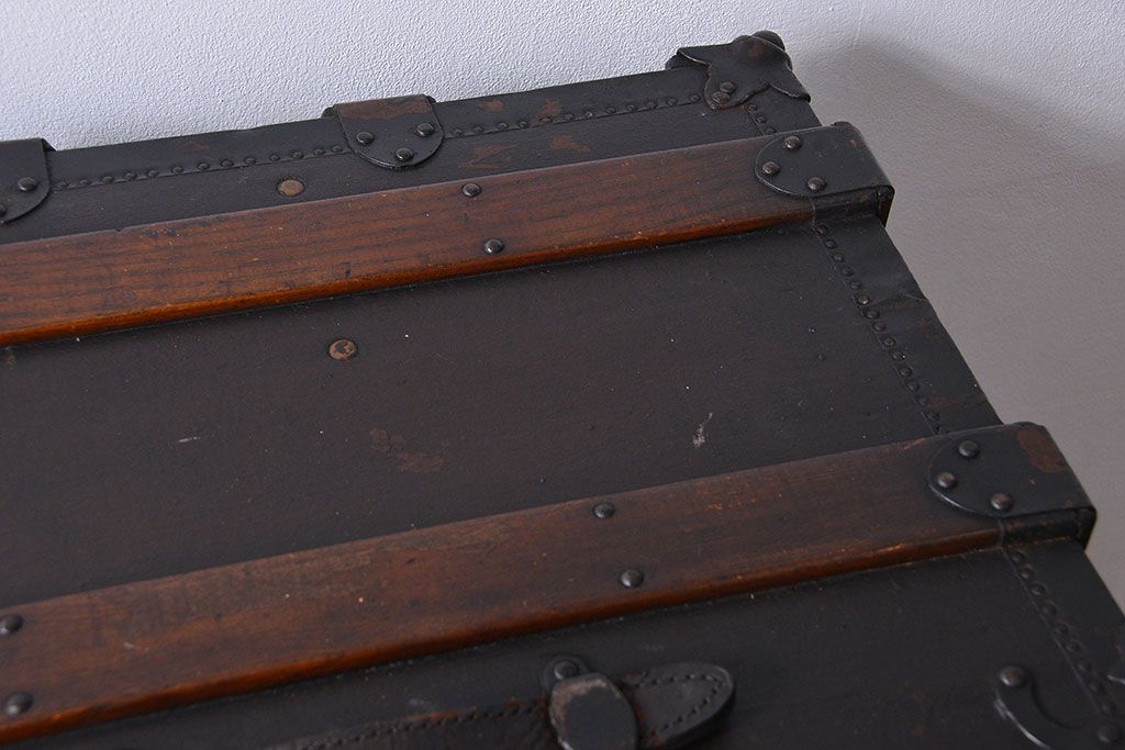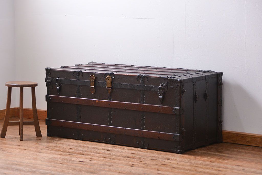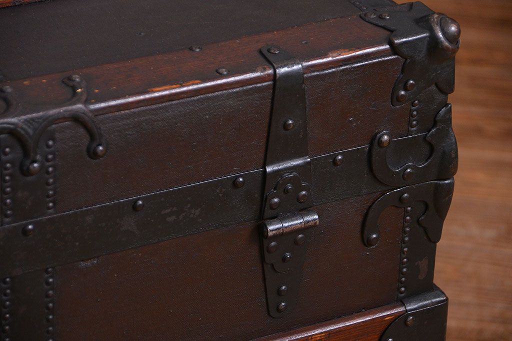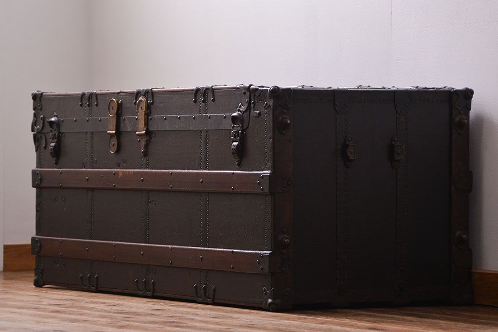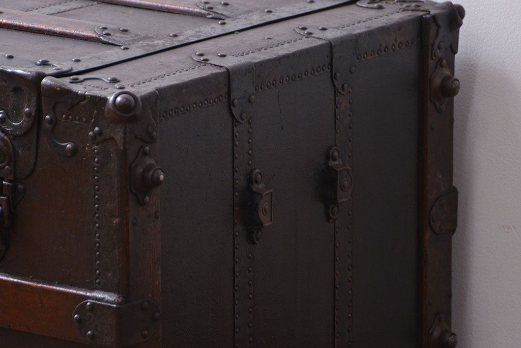 ラフジュ工房> 小物収納・トランク > アンティーク雑貨 イギリスンティーク 豪華な厚手の金具に覆われた船のトランク(テーブル)
