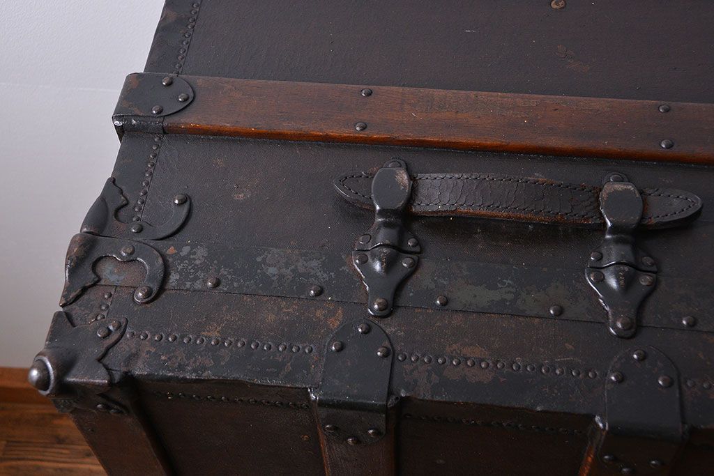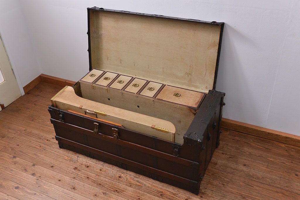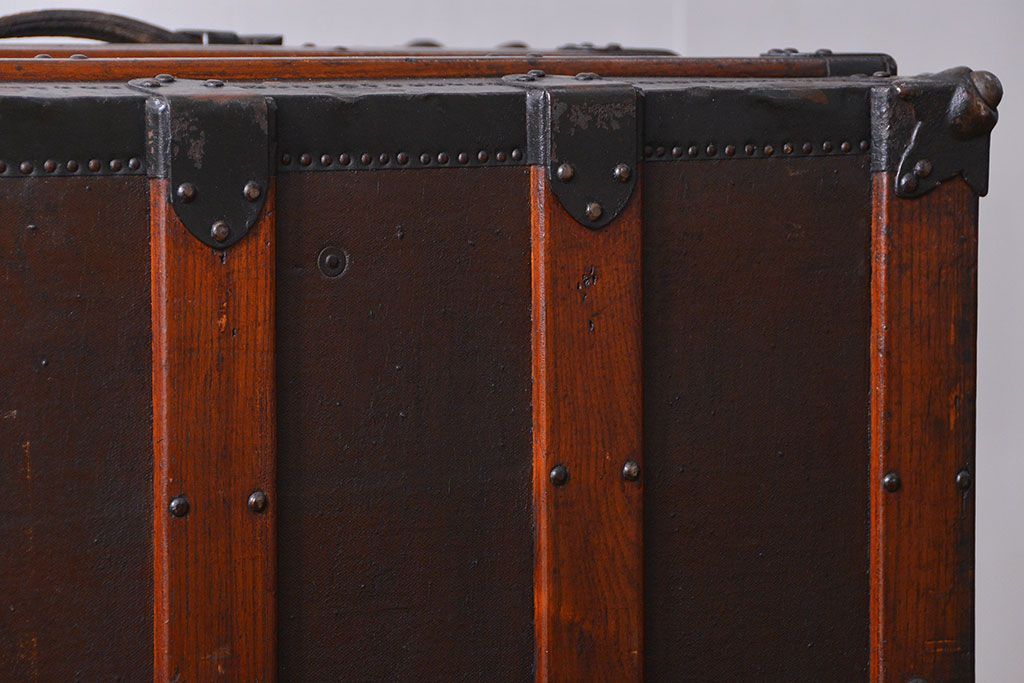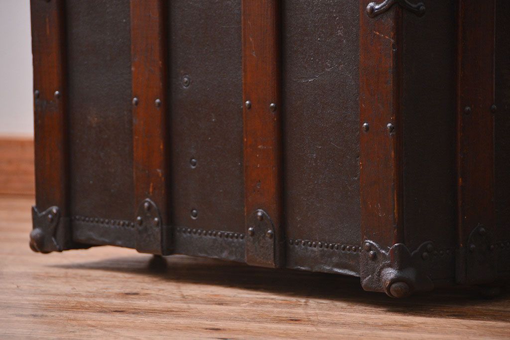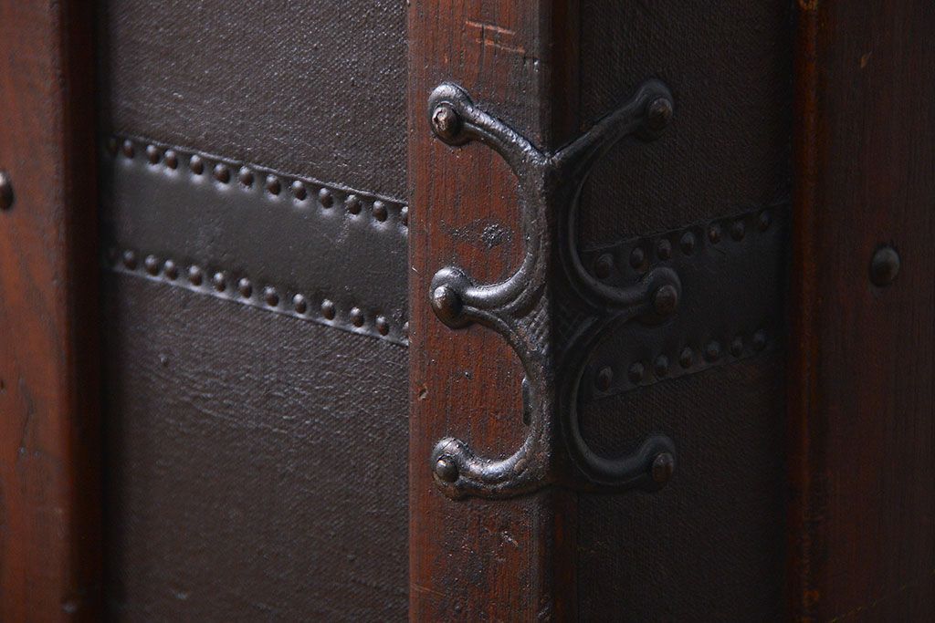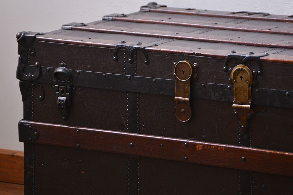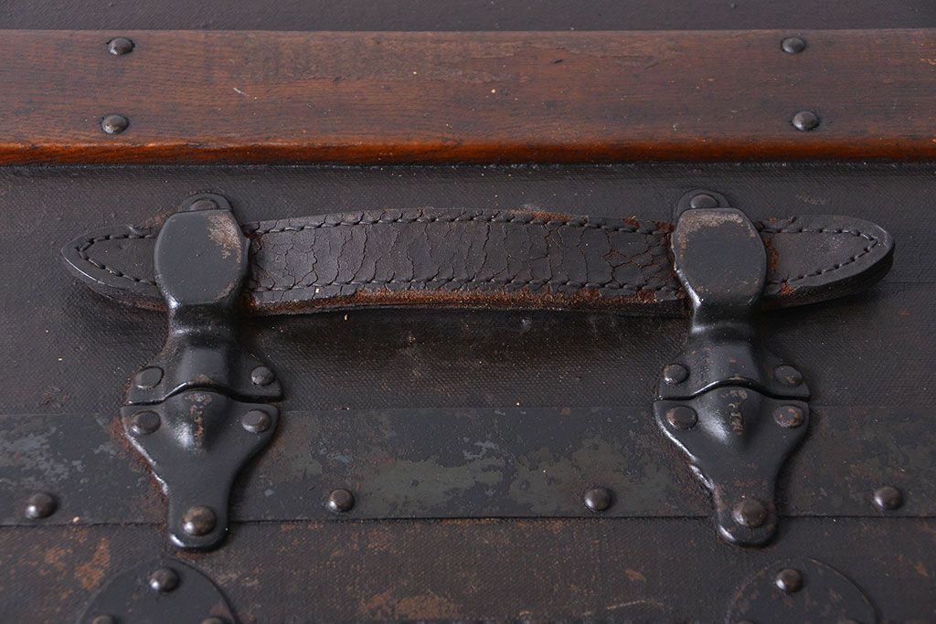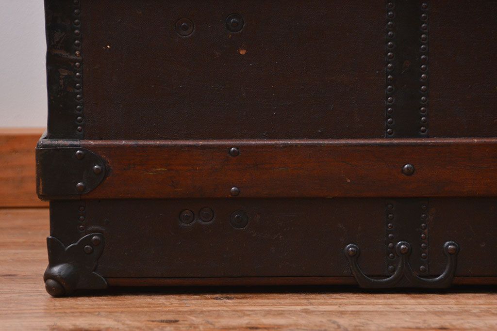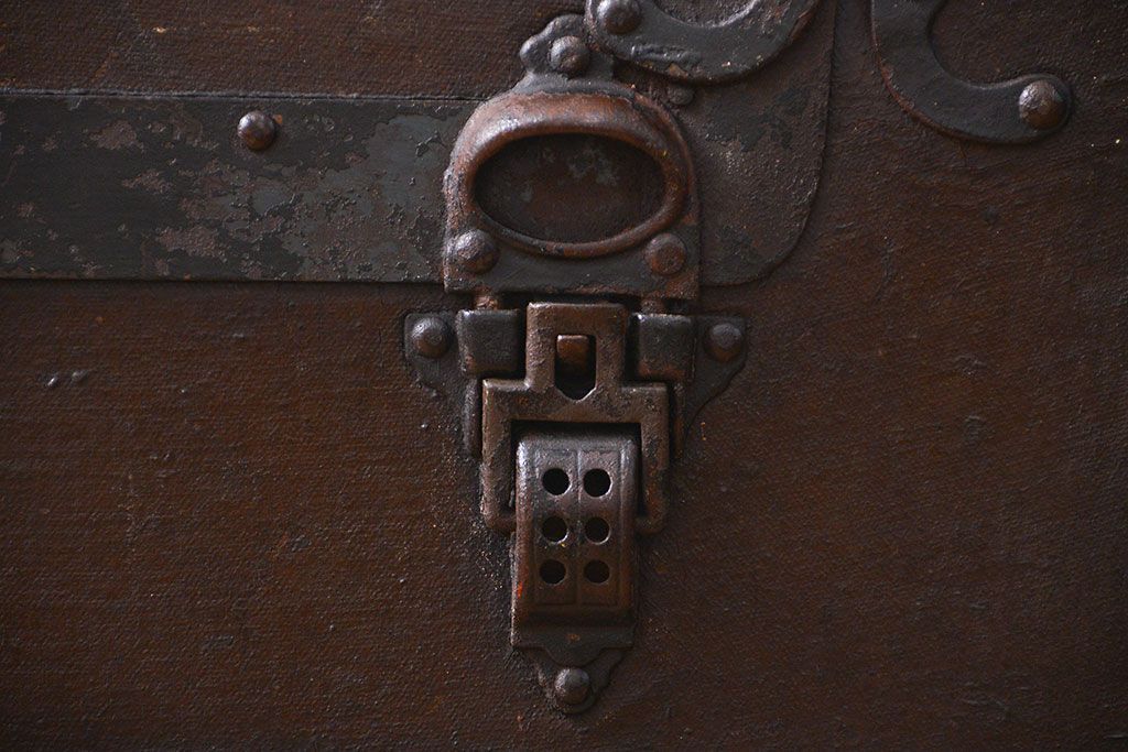 ラフジュ工房> 小物収納・トランク > アンティーク雑貨 イギリスンティーク 豪華な厚手の金具に覆われた船のトランク(テーブル)