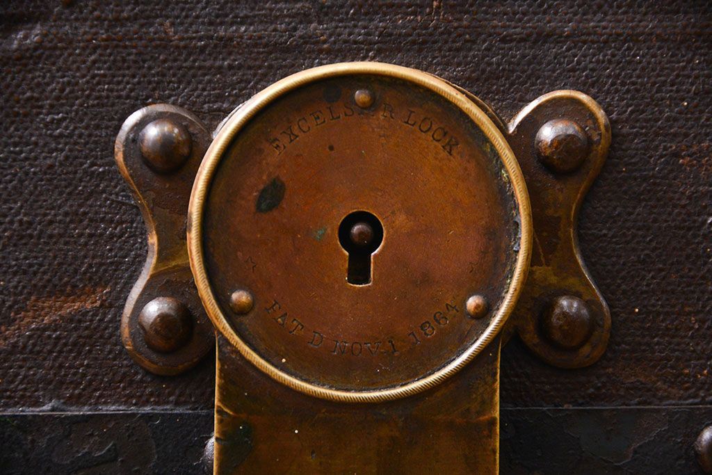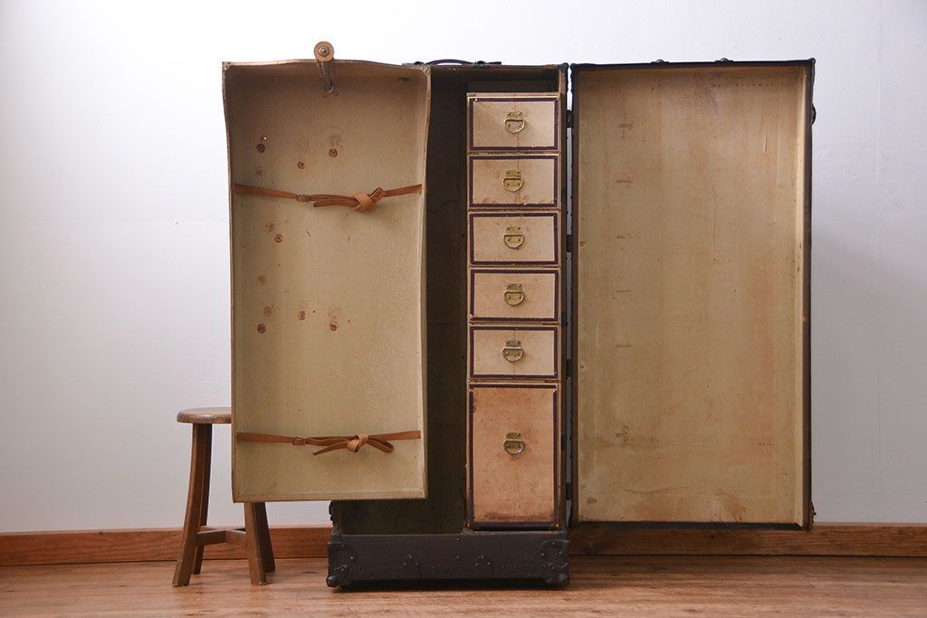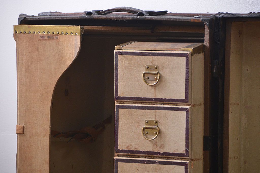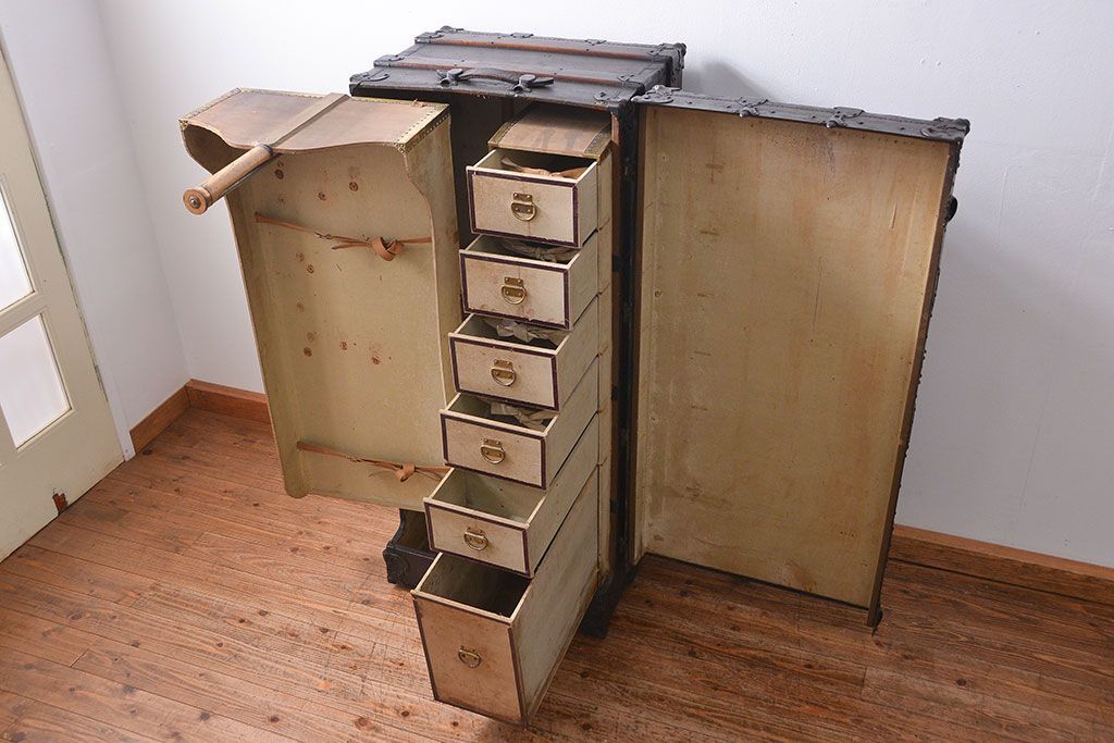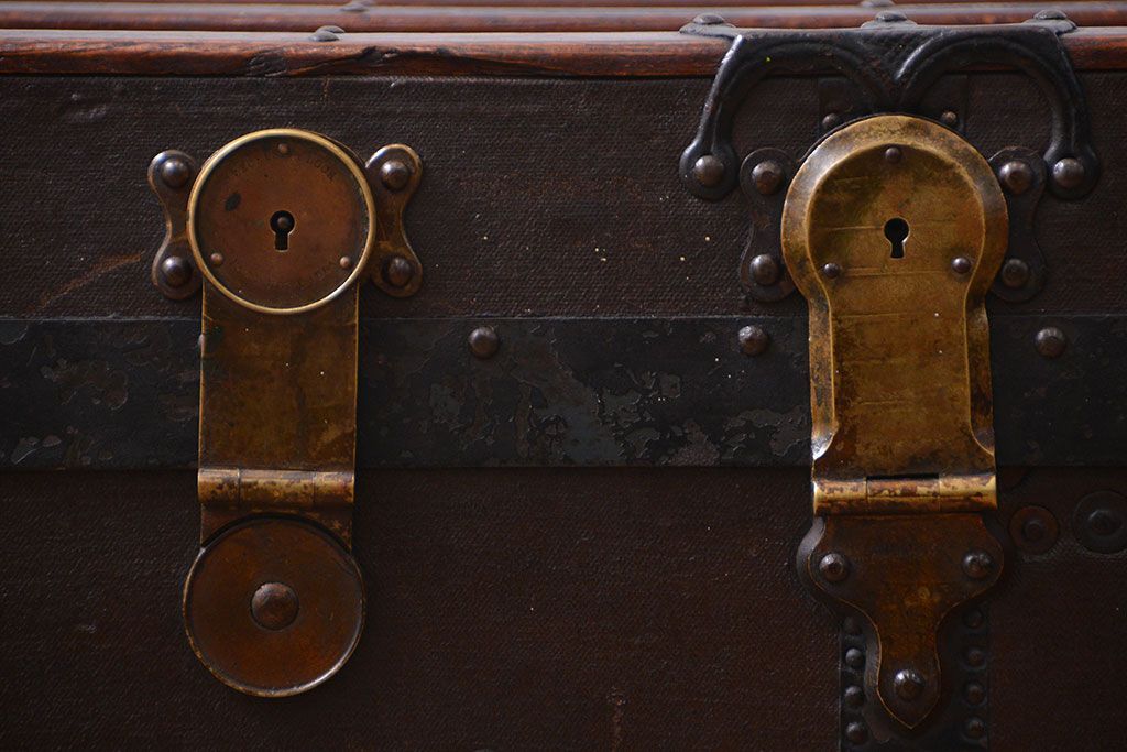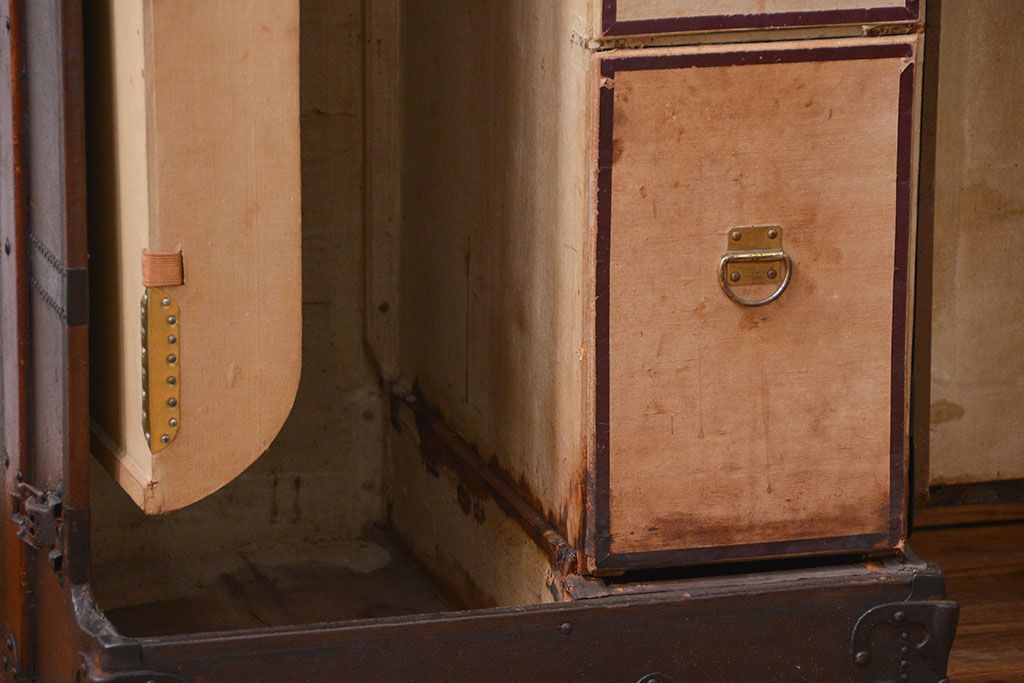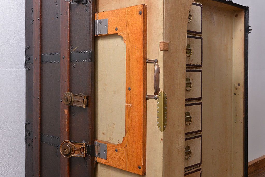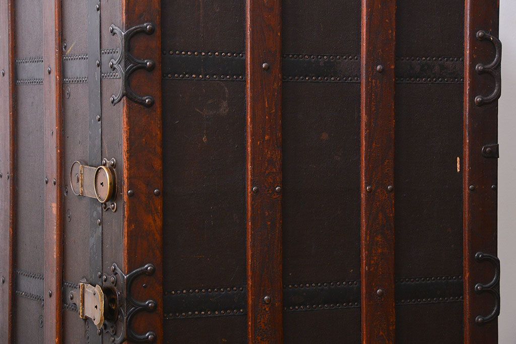 ラフジュ工房> 小物収納・トランク > アンティーク雑貨 イギリスンティーク 豪華な厚手の金具に覆われた船のトランク(テーブル)