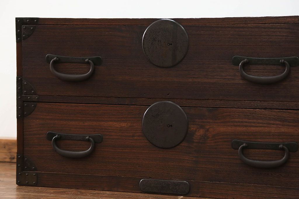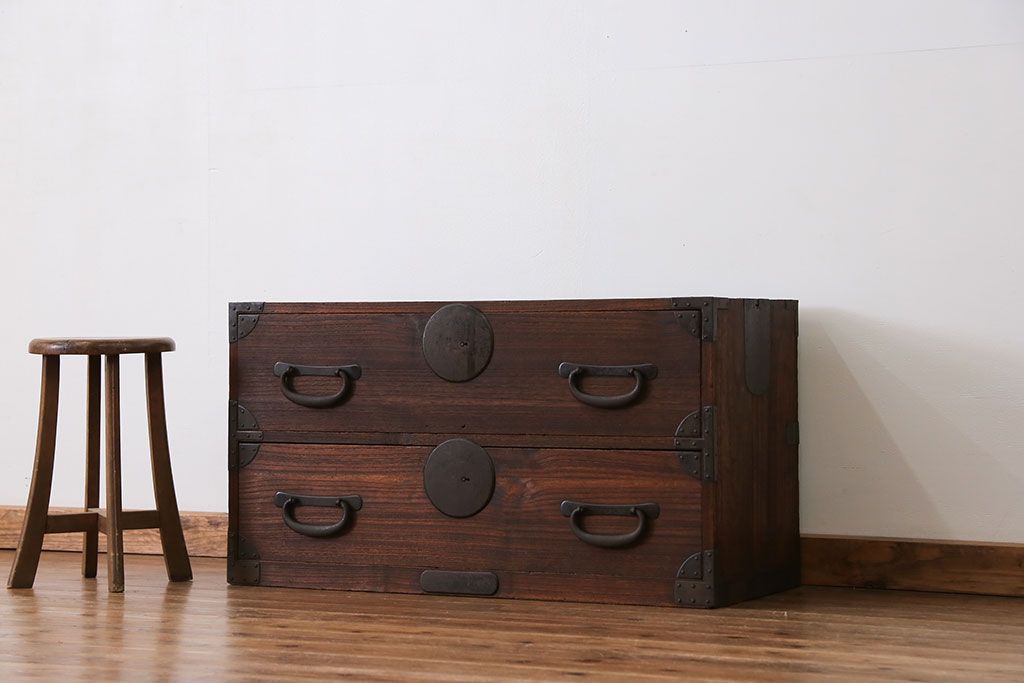 アンティーク家具 古民具・骨董 大きな丸金具の時代箪笥ローボード (ローチェスト)