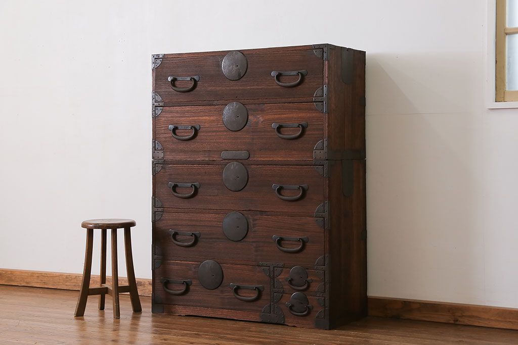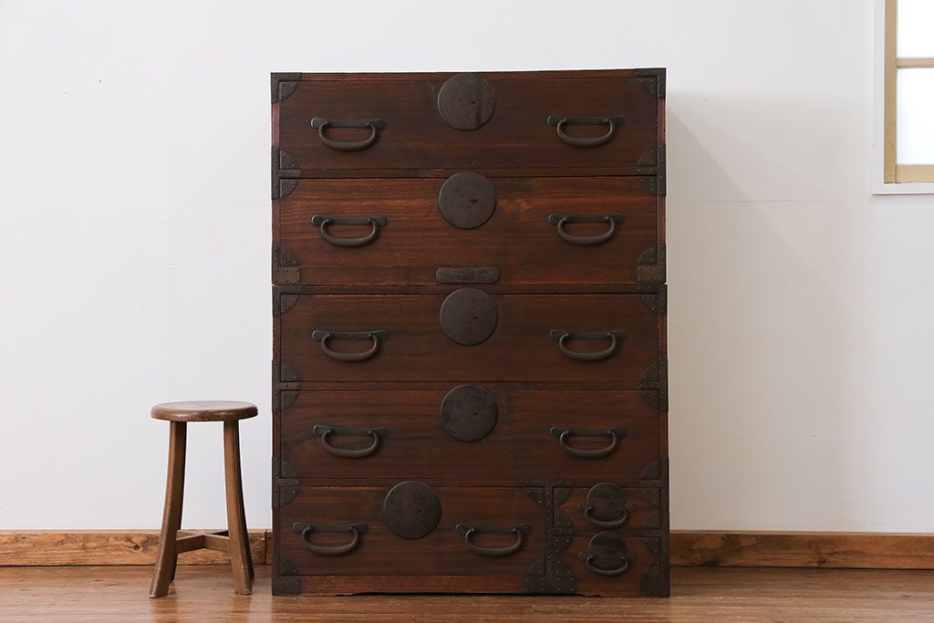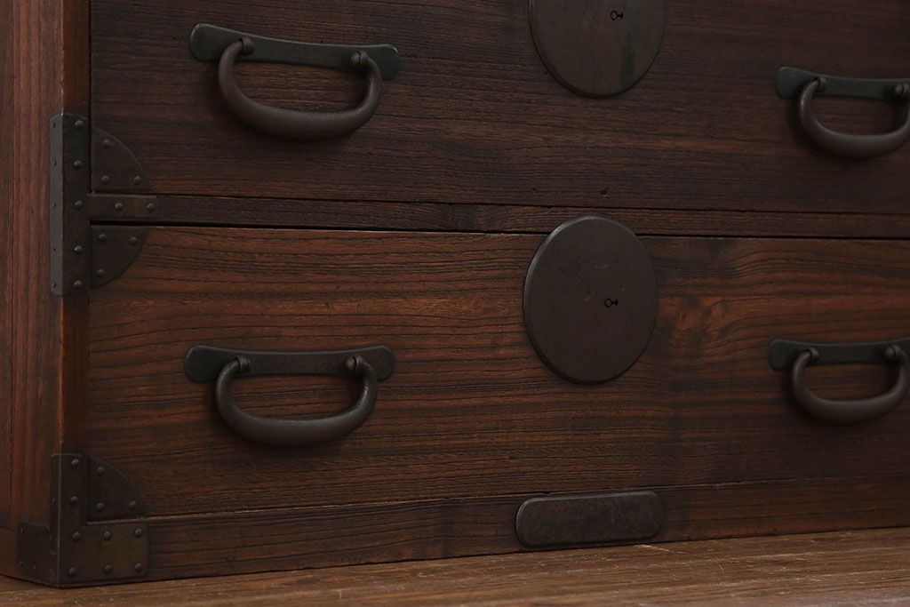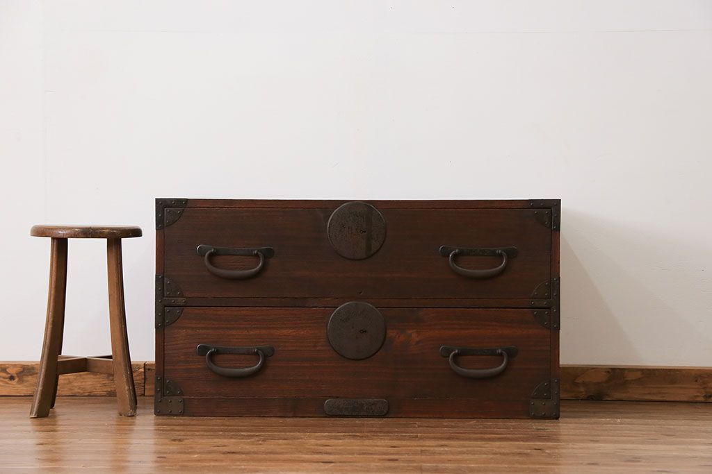 ラフジュ工房> 和箪笥> 衣装箪笥 > アンティーク家具 古民具・骨董 大きな丸金具の時代箪笥ローボード (ローチェスト)
