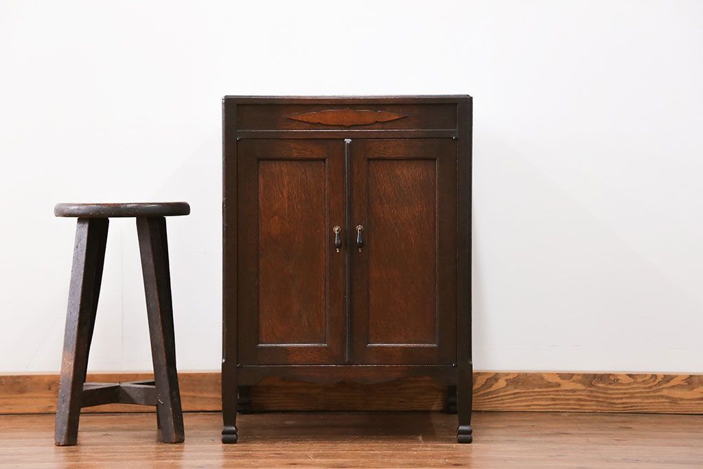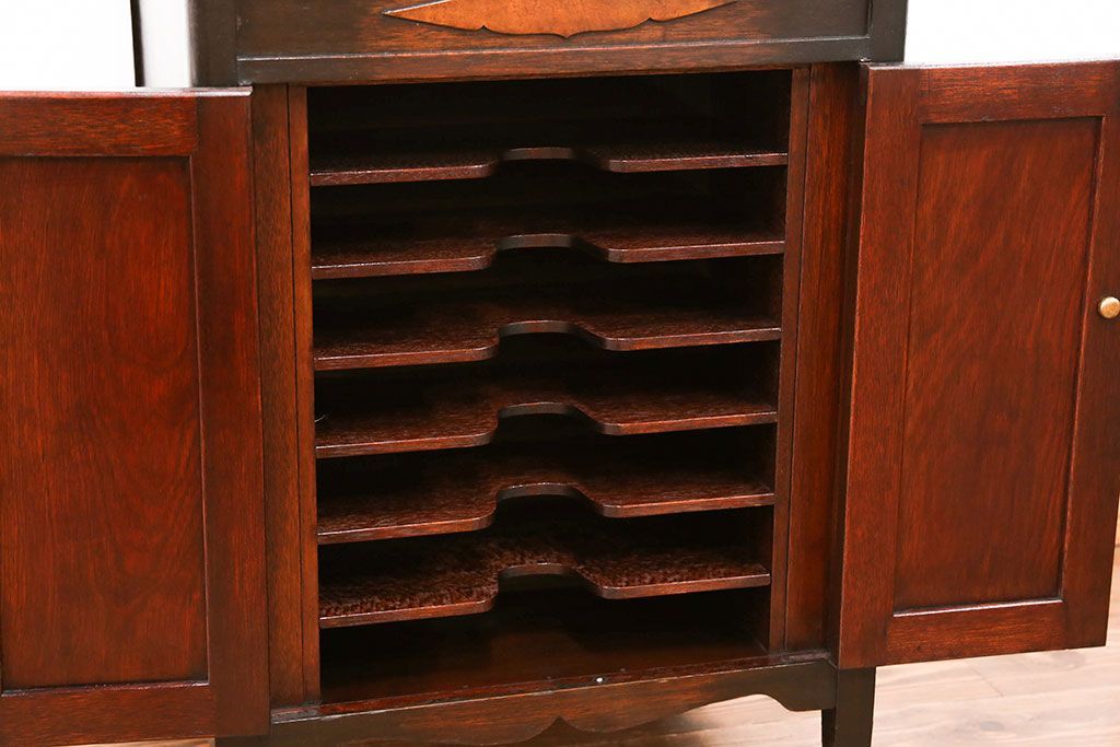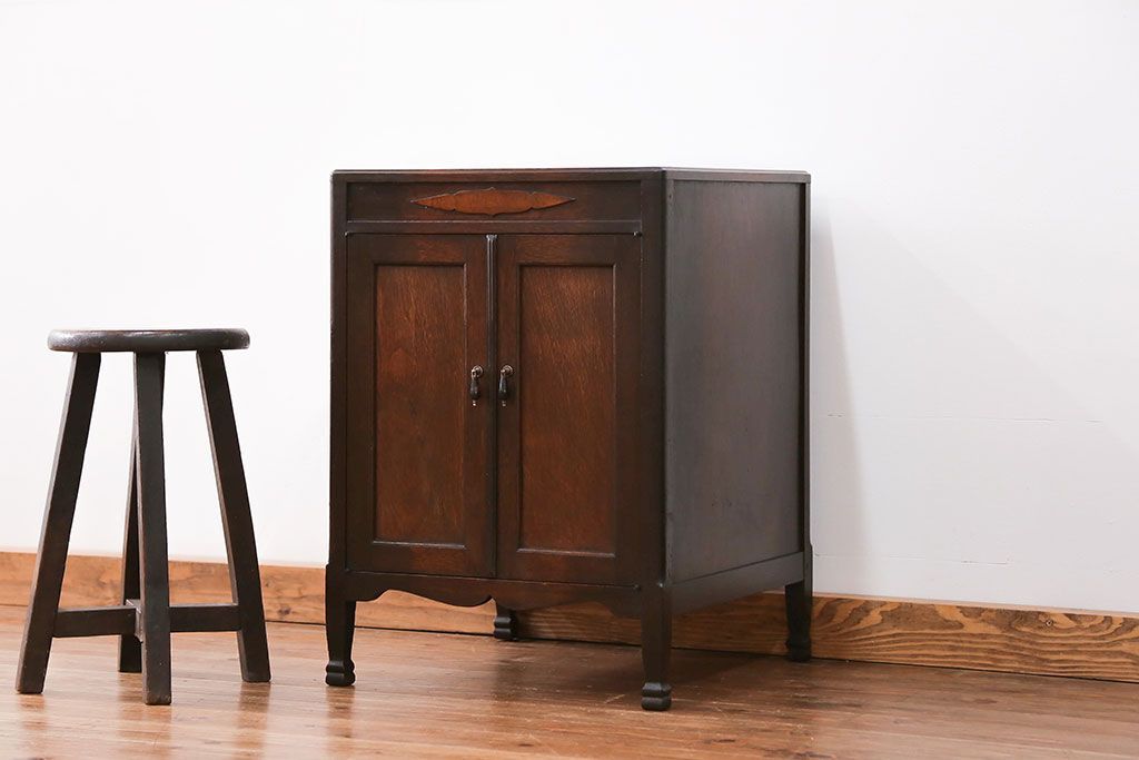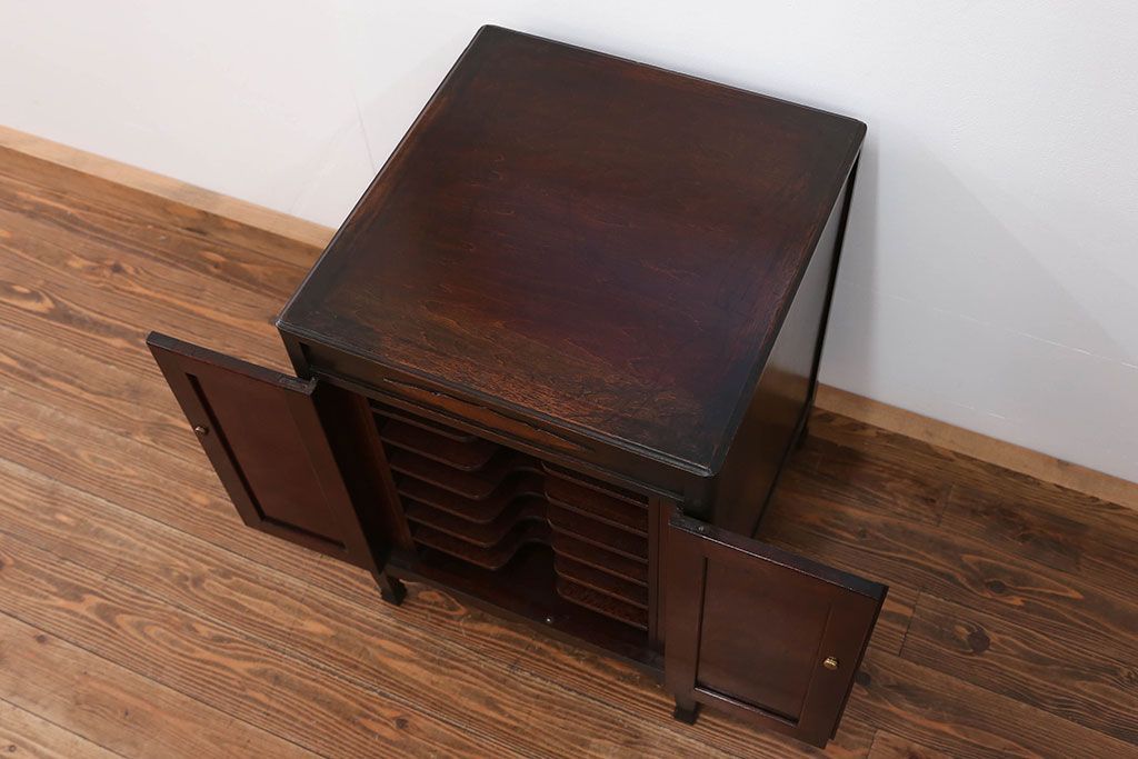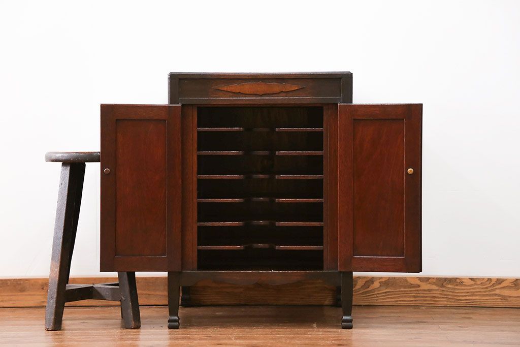 アンティーク家具 大正ロマン 古い木の上品なレコードケース (サイドキャビネット)