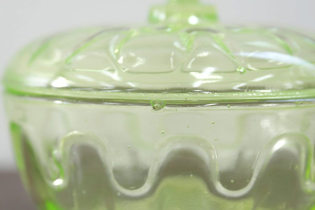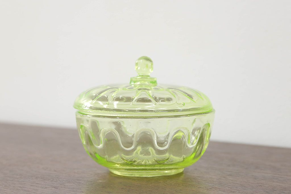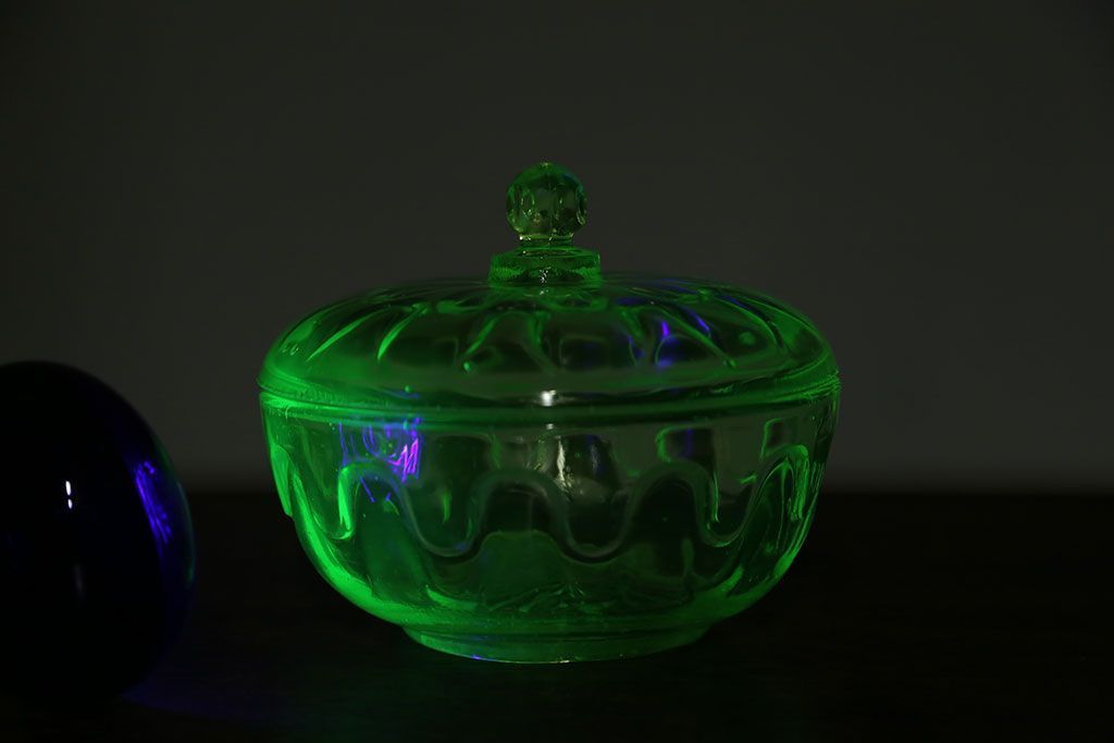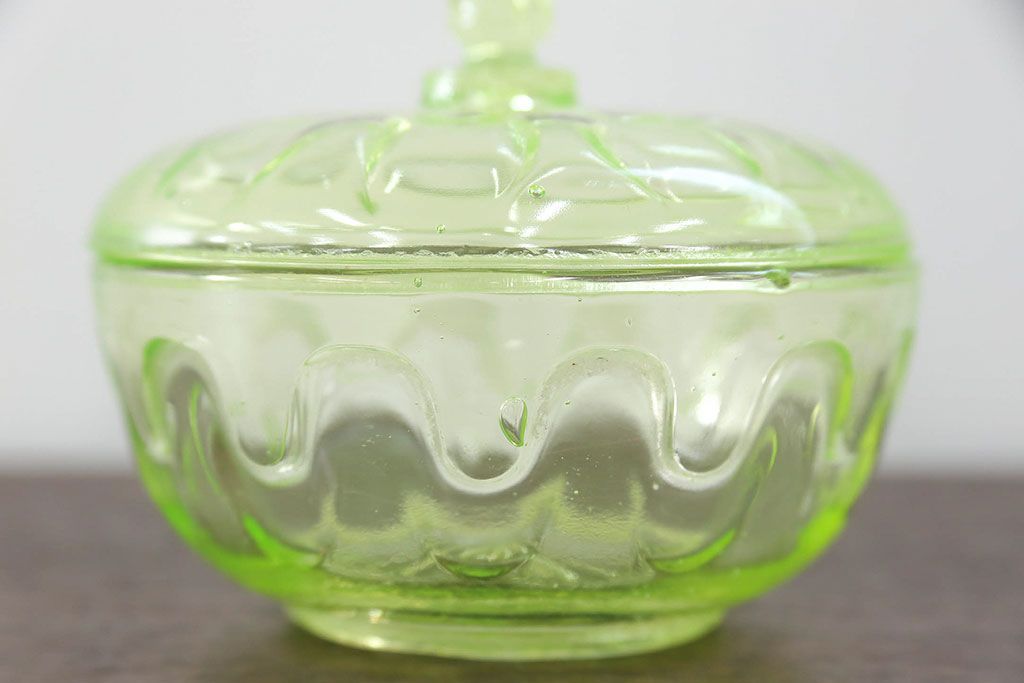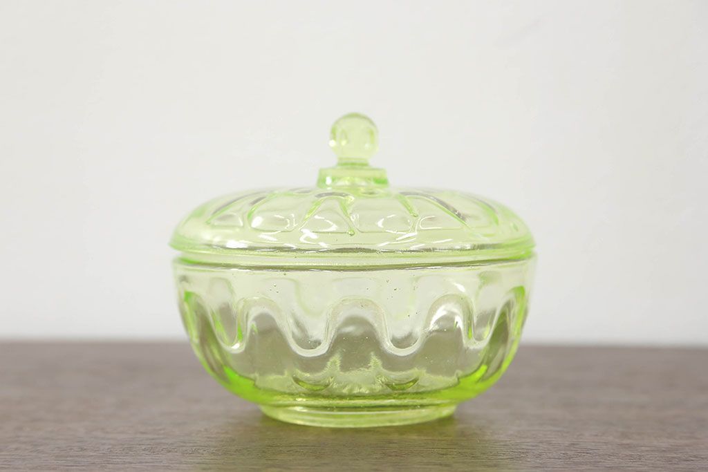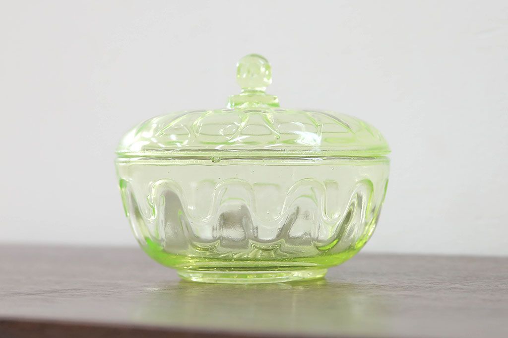 ラフジュ工房> 骨董・美術品> 骨董-ガラス食器 > アンティーク雑貨 大正〜昭和初期! ウランガラスキャンディーポット
