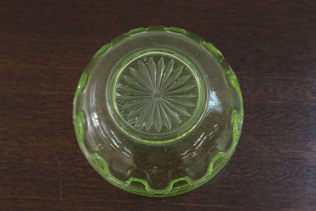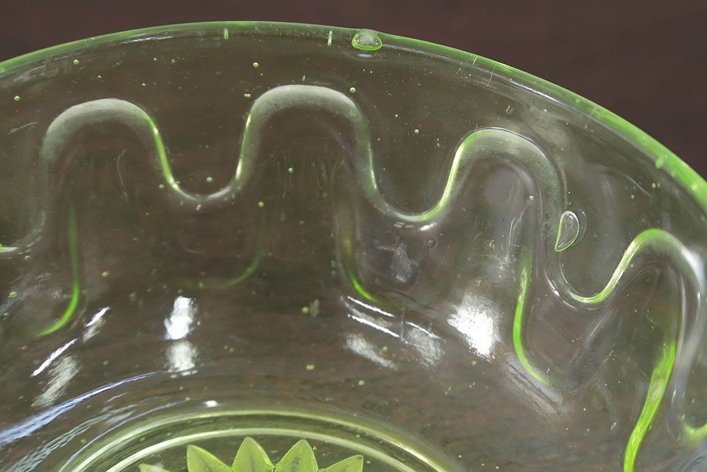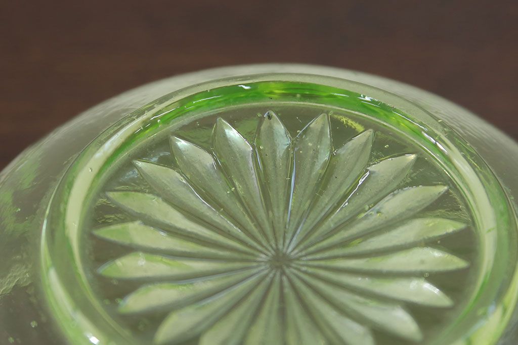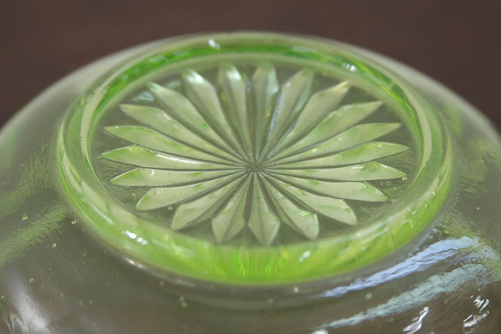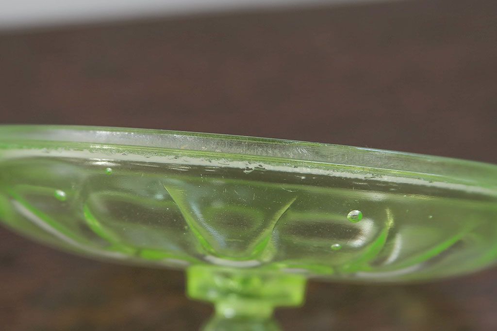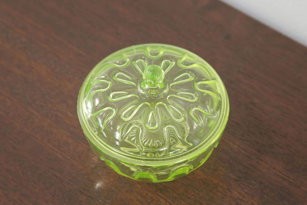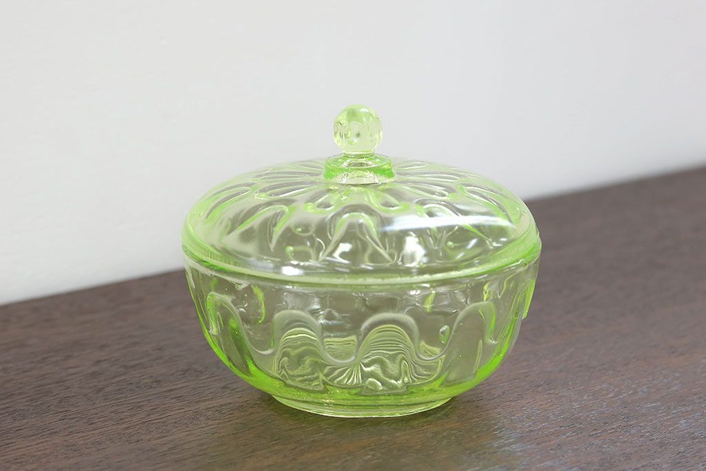 ラフジュ工房> 骨董・美術品> 骨董-ガラス食器 > アンティーク雑貨 大正〜昭和初期! ウランガラスキャンディーポット