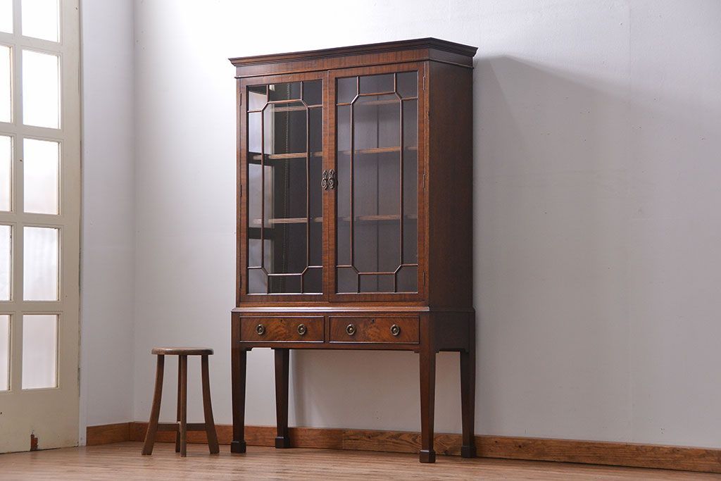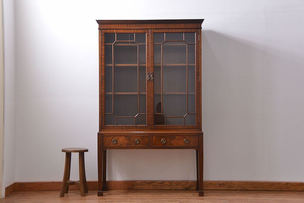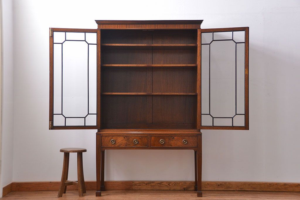 アンティーク家具 イギリスアンティーク ウォールナット材の上質で美しいキャビネット(ブックケース)