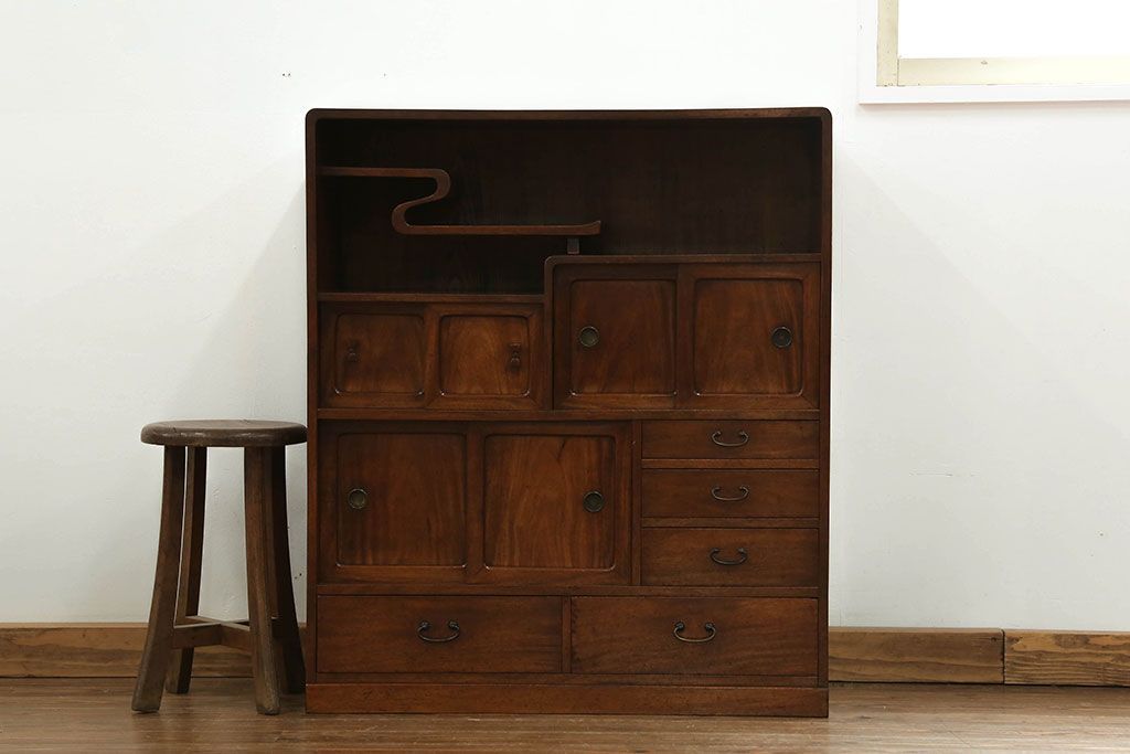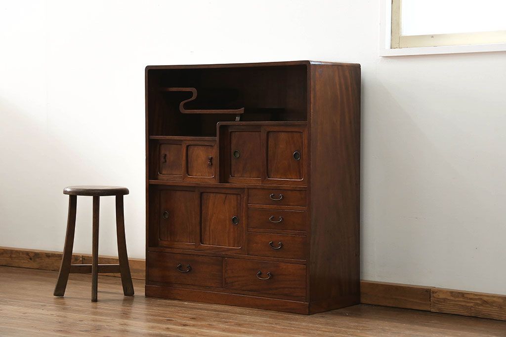 アンティーク家具 アンティーク 総クスノキ(楠)の重厚な高級茶箪笥