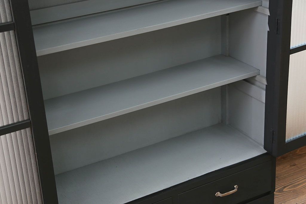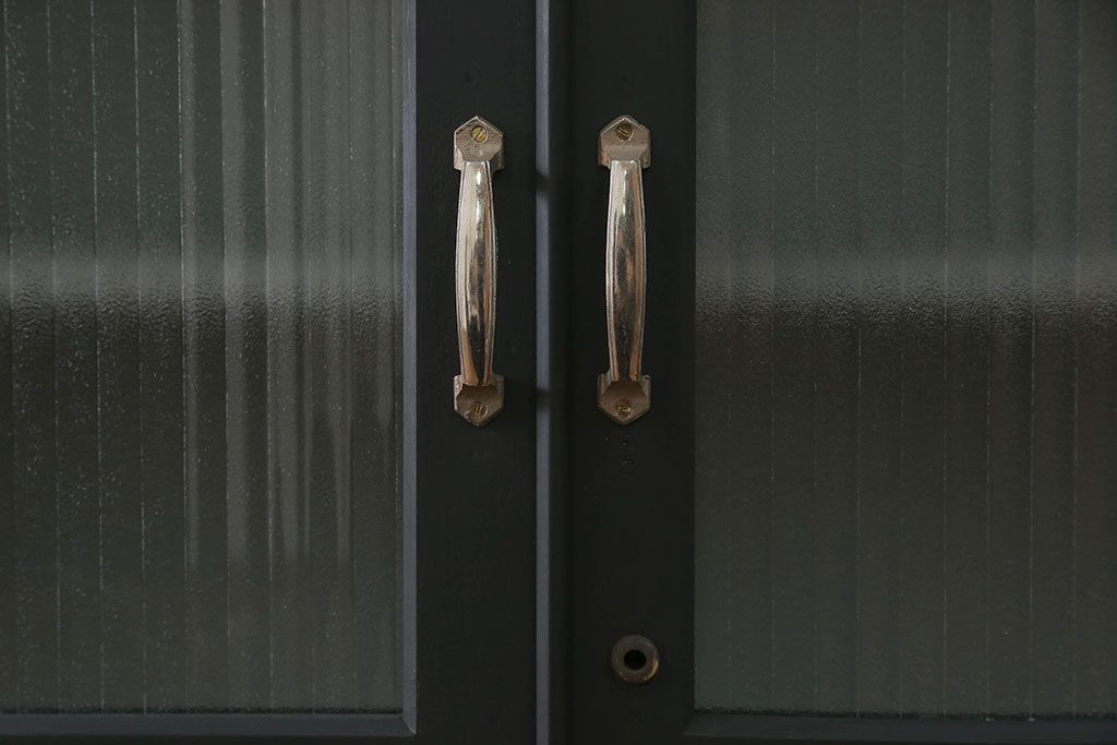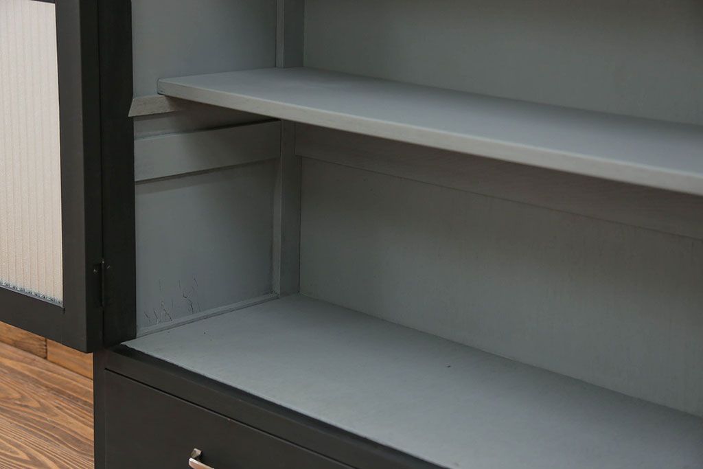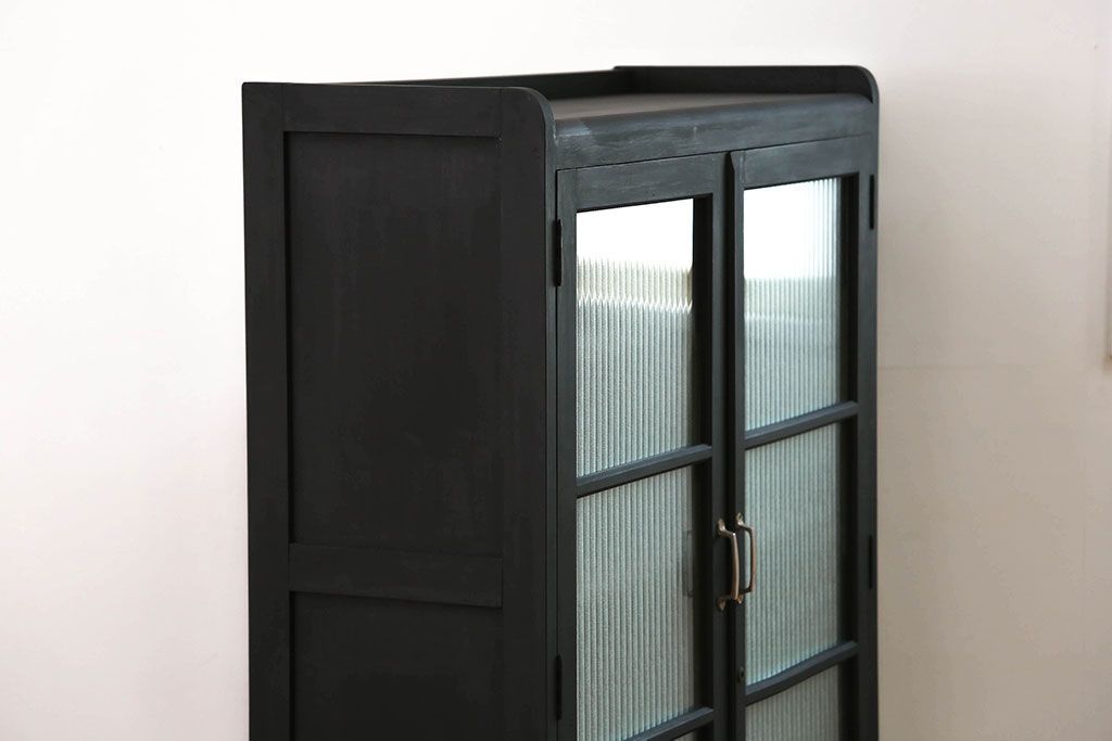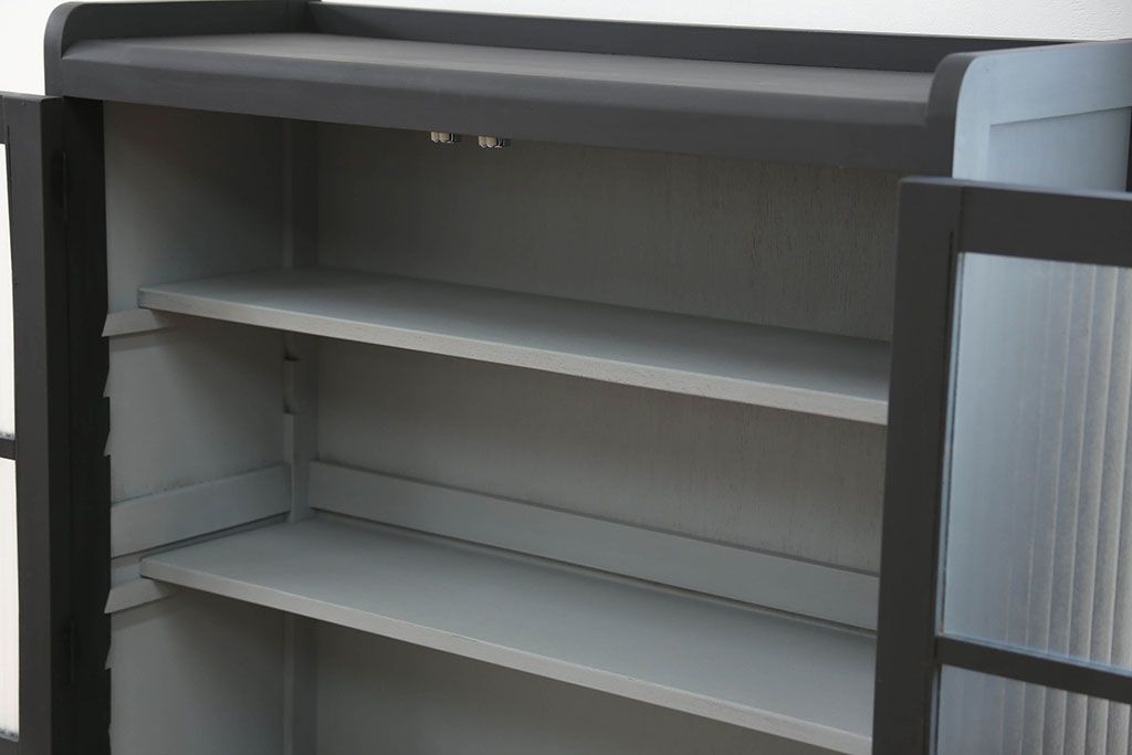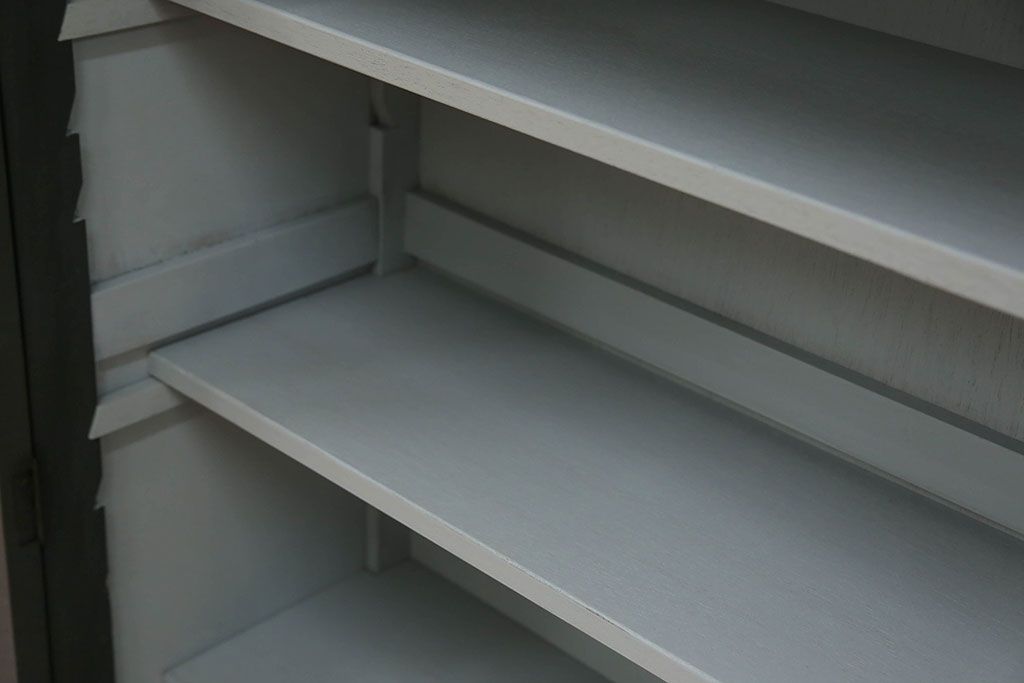 アンティーク シックなペイントの銀モールガラス本箱(ブックケース、収納棚)です。