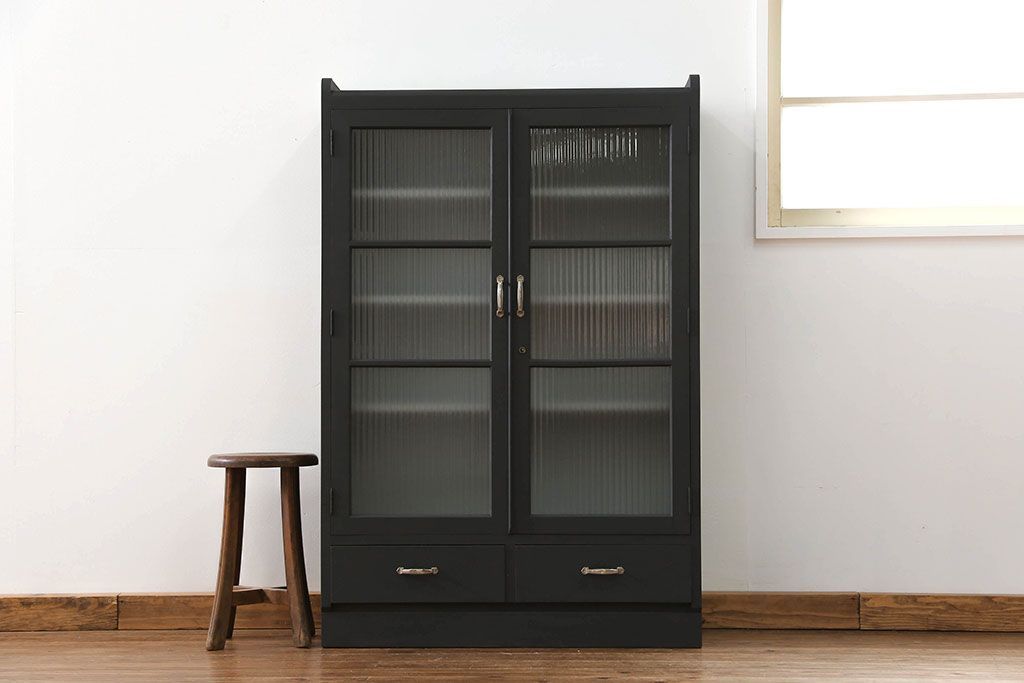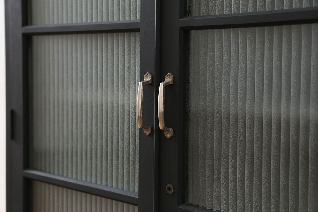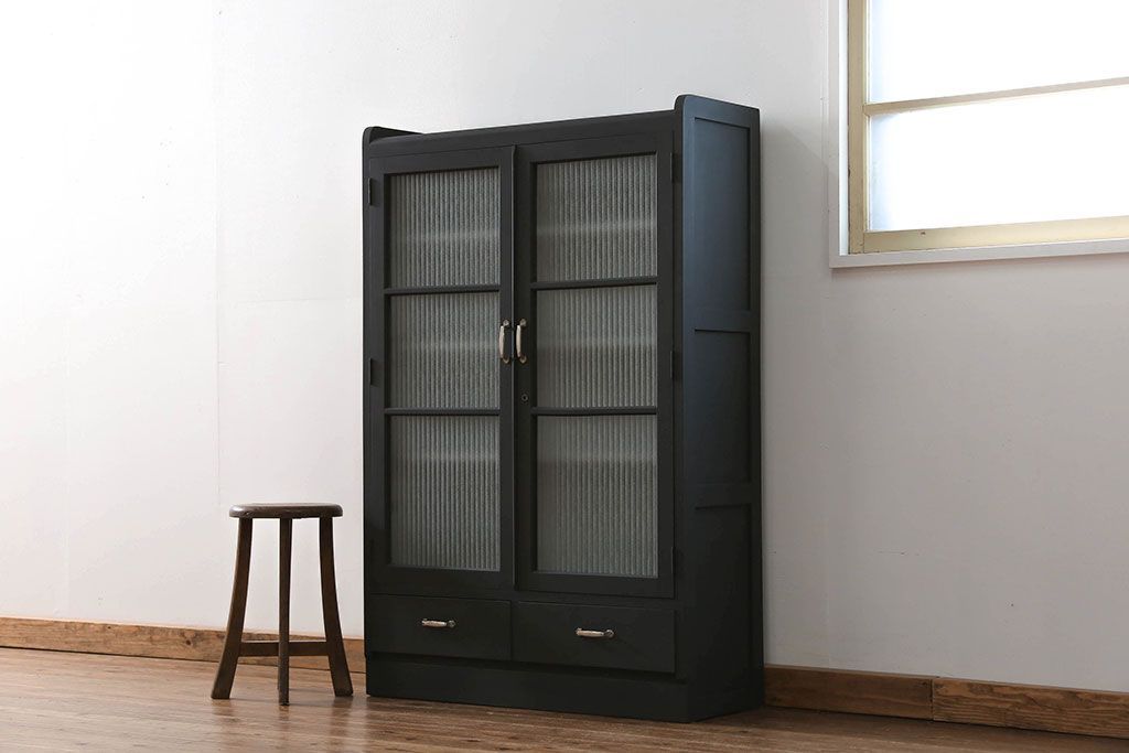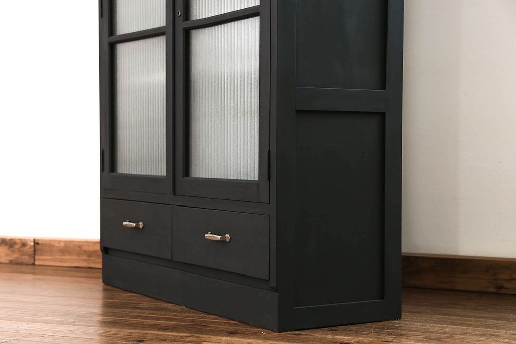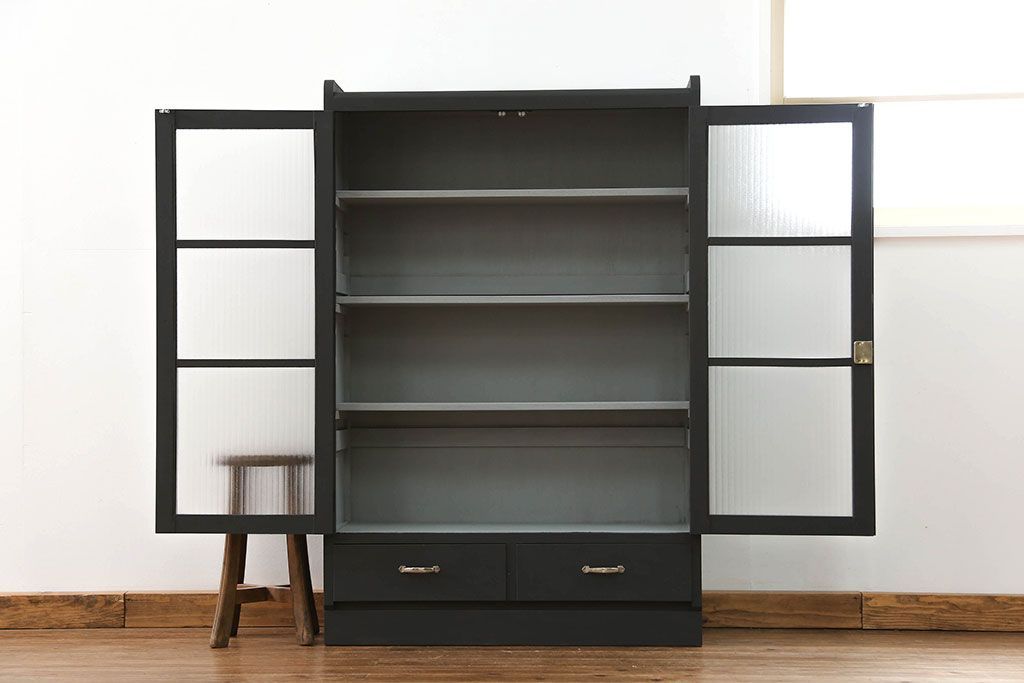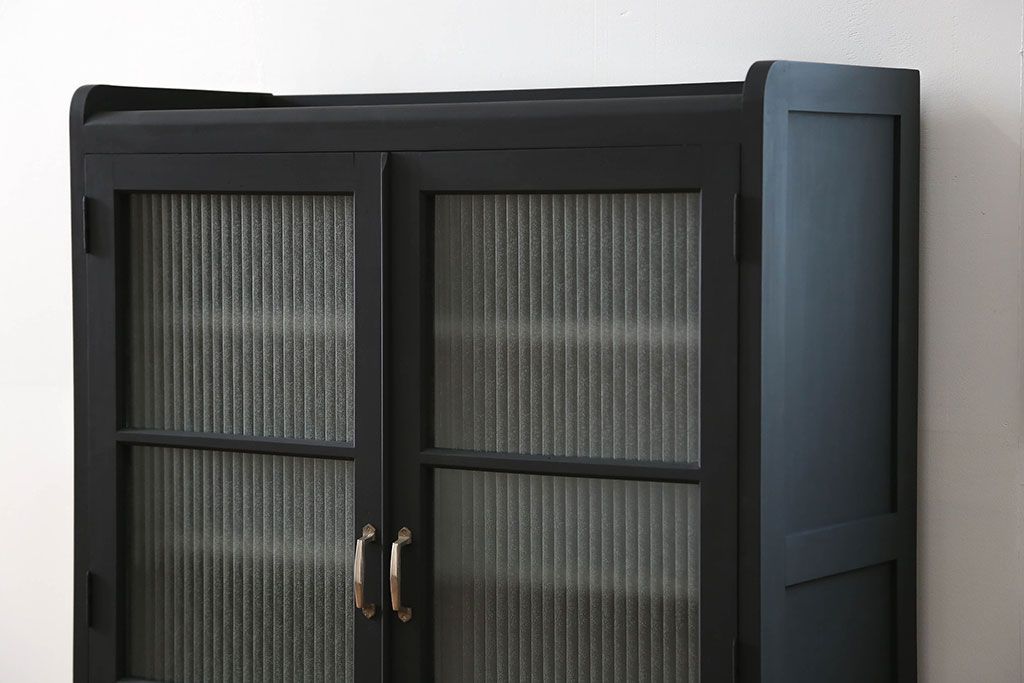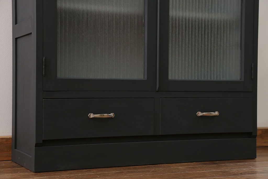 アンティーク シックなペイントの銀モールガラス本箱(ブックケース、収納棚)です。
