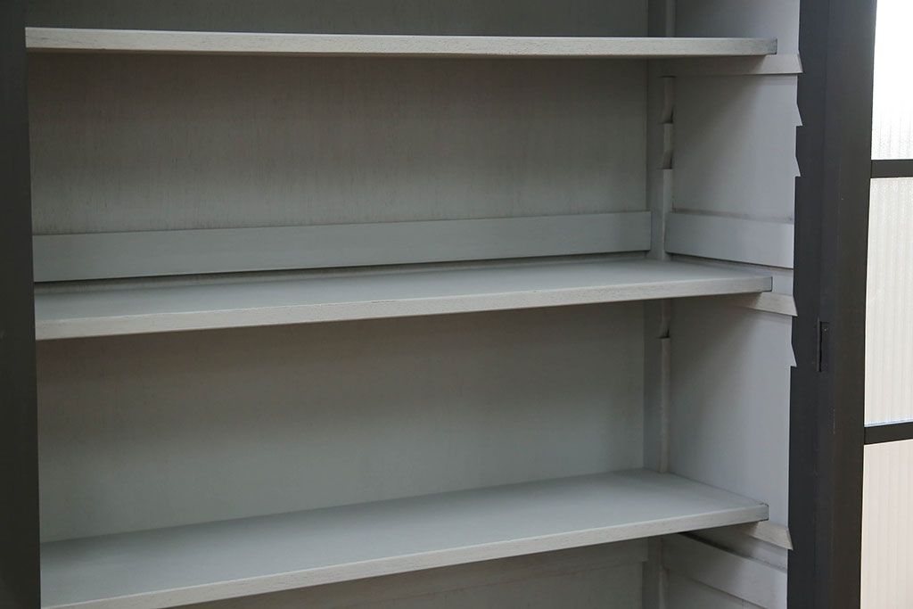 アンティーク家具 アンティーク シックなペイントの銀モールガラス本箱(ブックケース、収納棚)