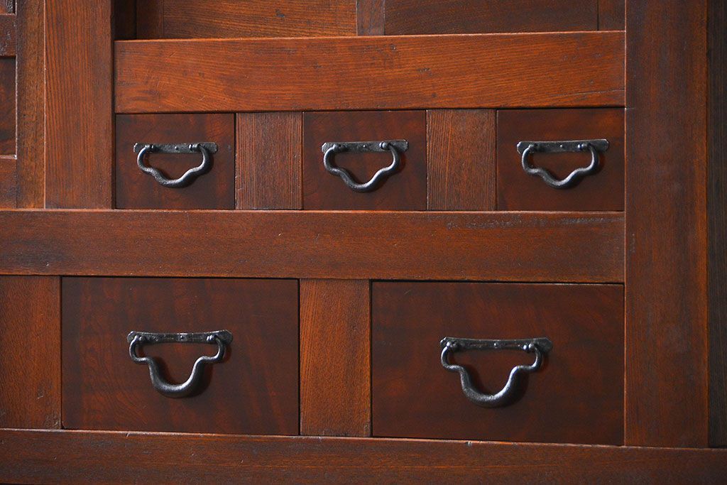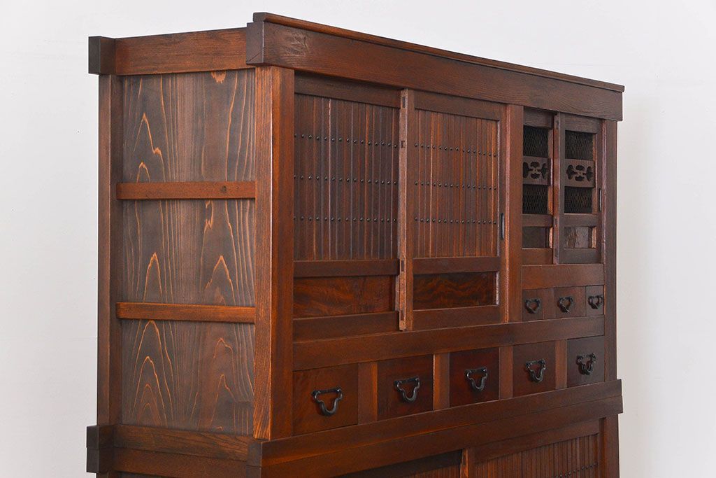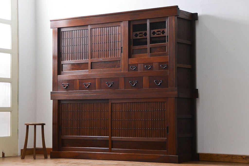 アンティーク家具 アンティーク 前面欅材!重厚な六尺水屋箪笥(食器棚、収納棚)