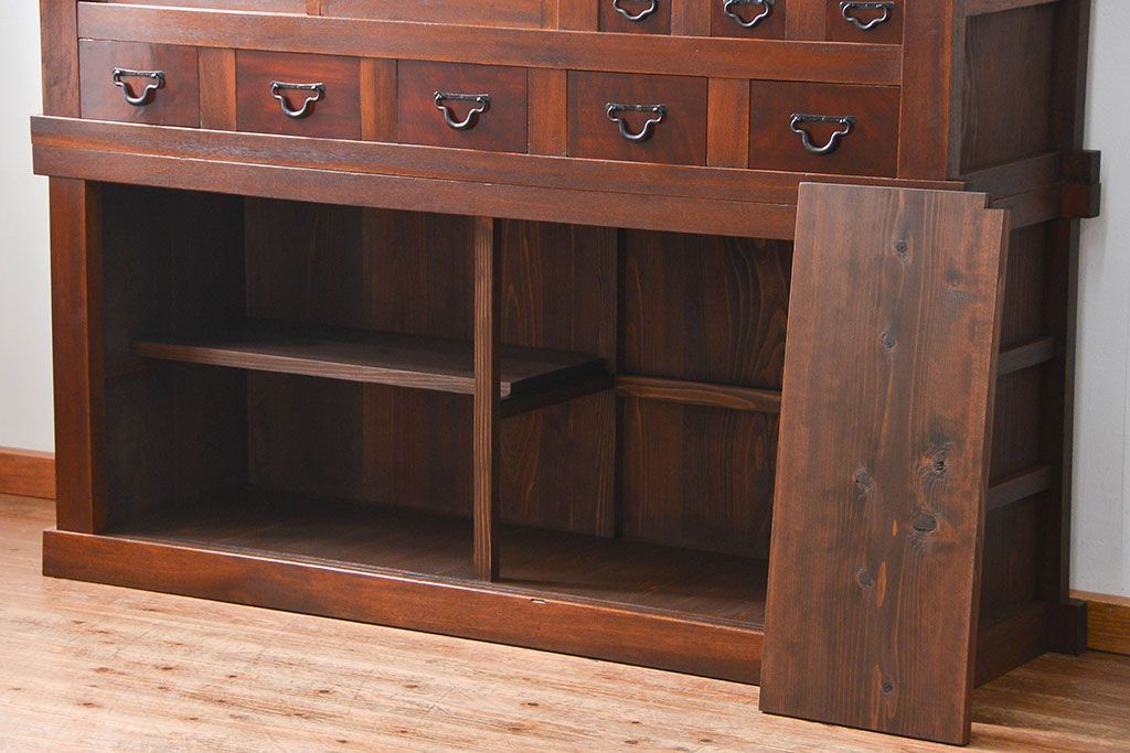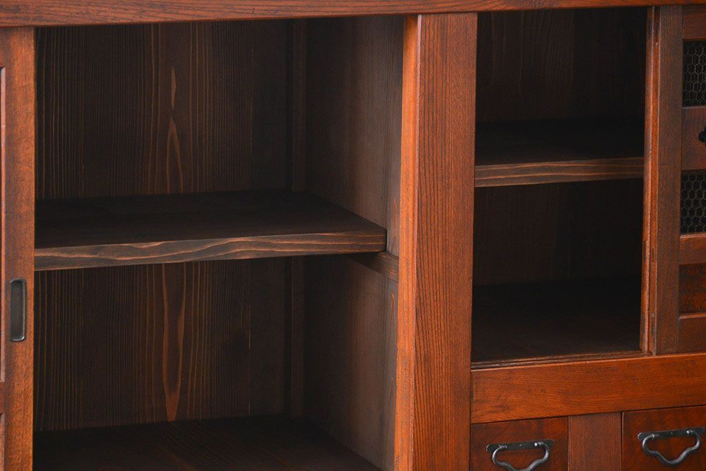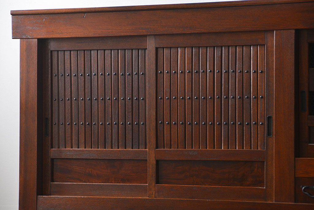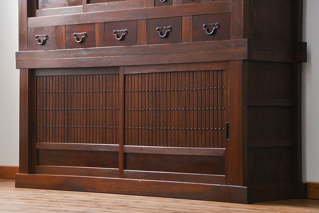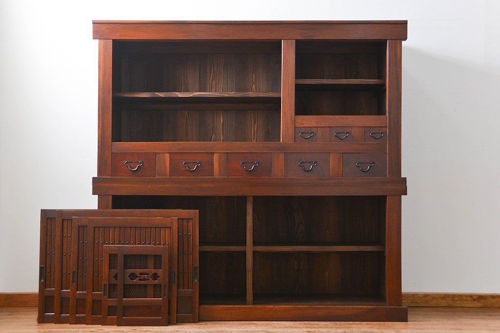 ラフジュ工房> キャビネット・戸棚> 食器棚・カップボード > アンティーク家具 アンティーク 前面欅材!重厚な六尺水屋箪笥(食器棚、収納棚)