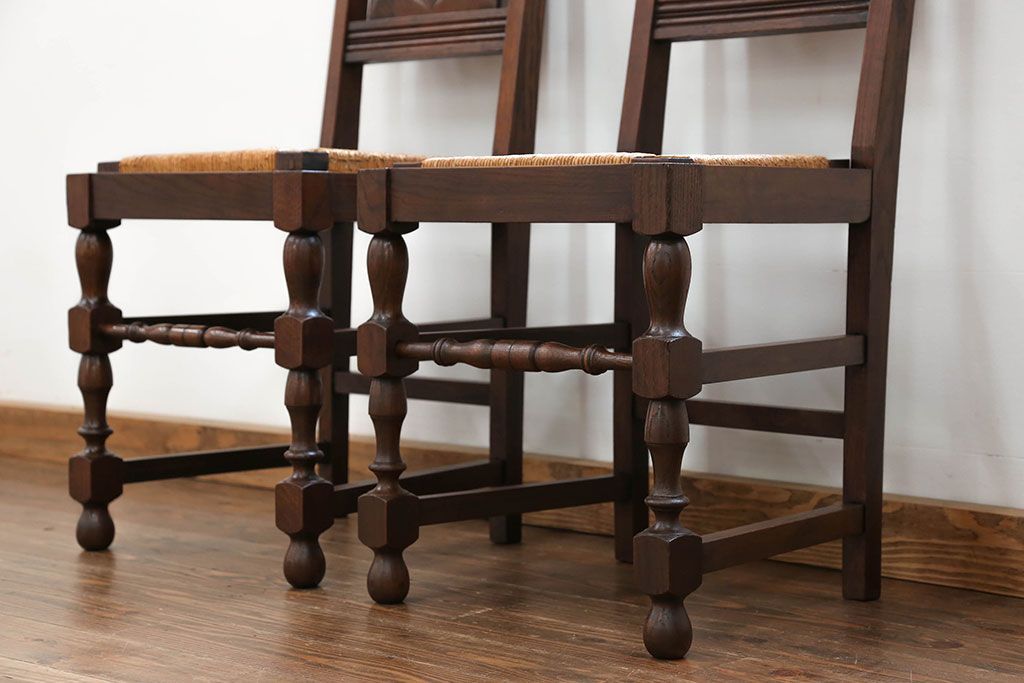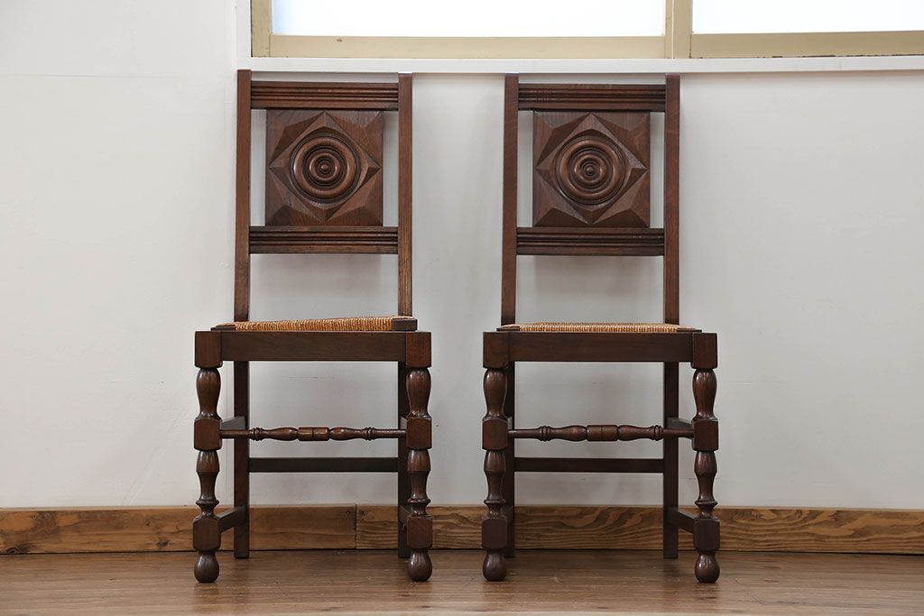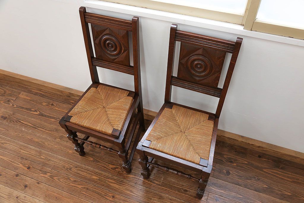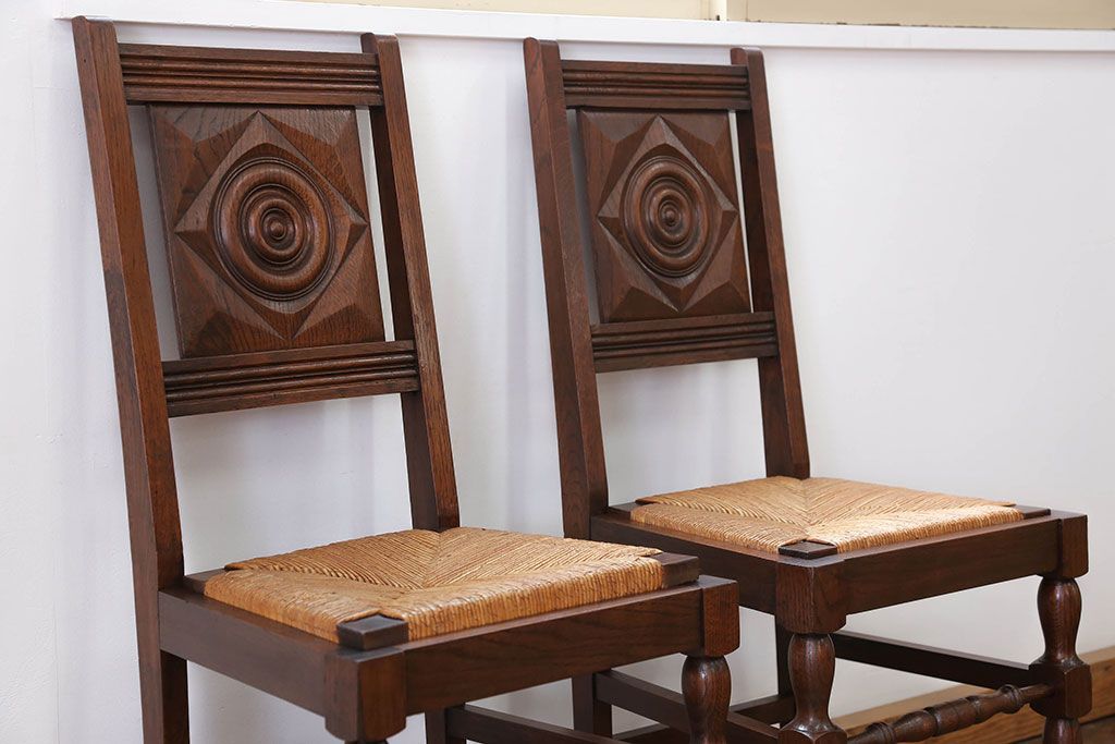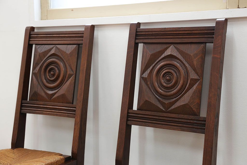 アンティーク家具 フランスアンティーク オーク材 上質なアールデコ ラッシチェア2脚セット(2)(椅子、イス)