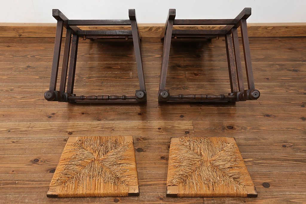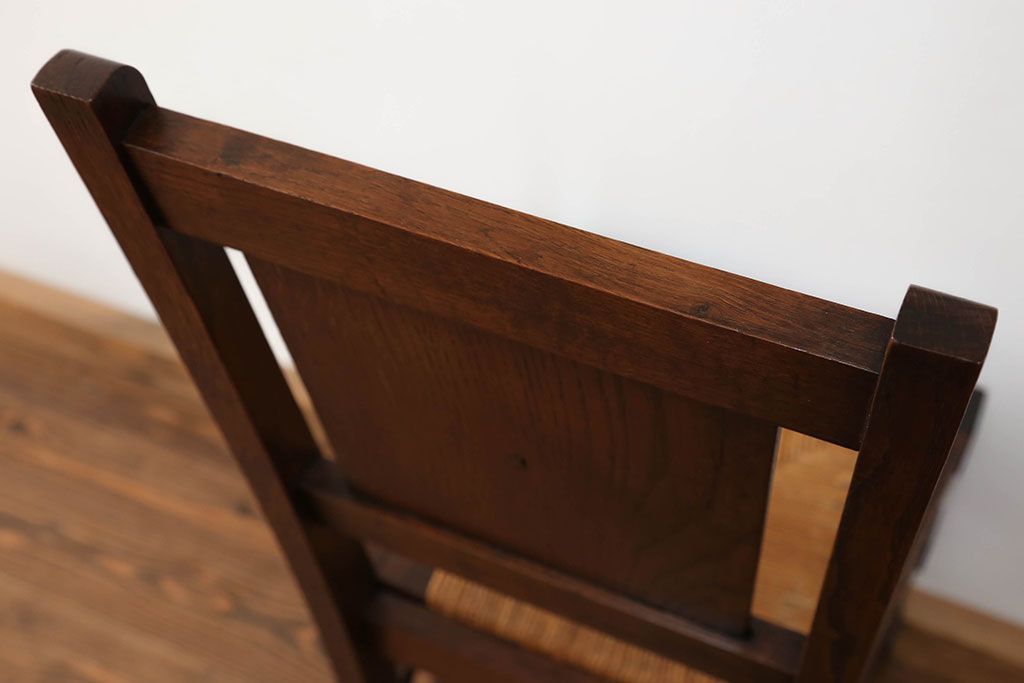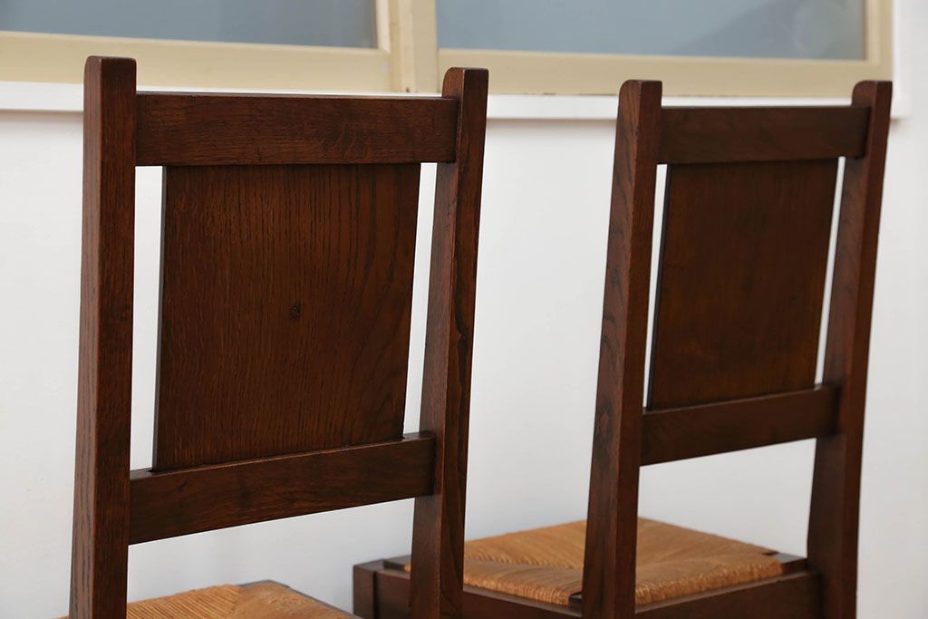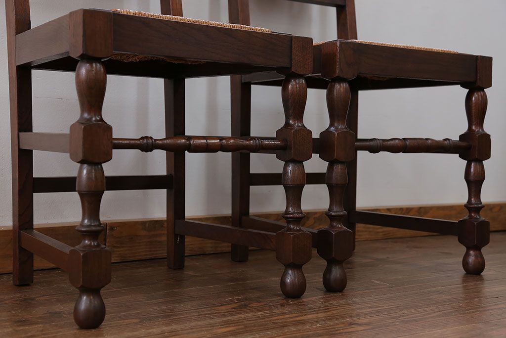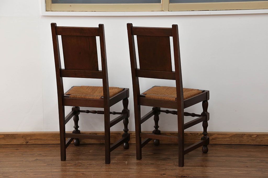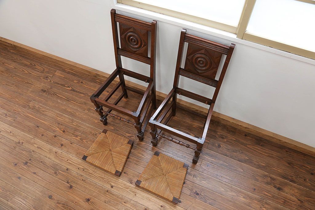 アンティーク家具 フランスアンティーク オーク材 上質なアールデコ ラッシチェア2脚セット(2)(椅子、イス)