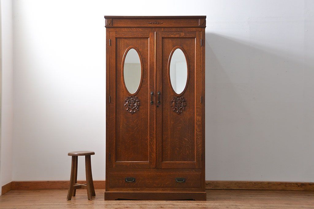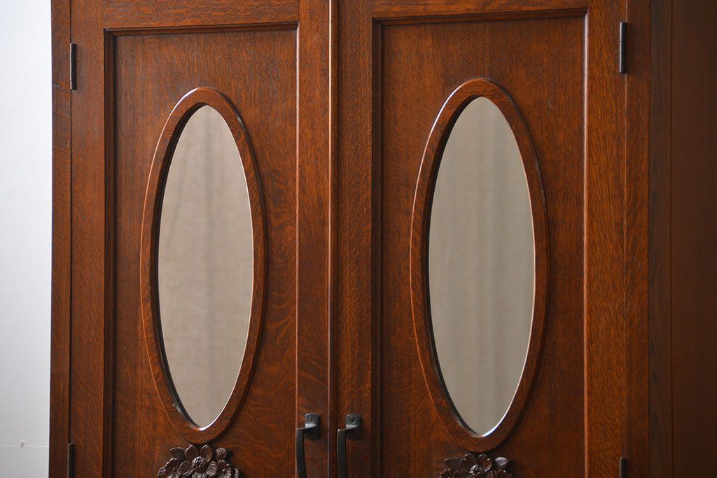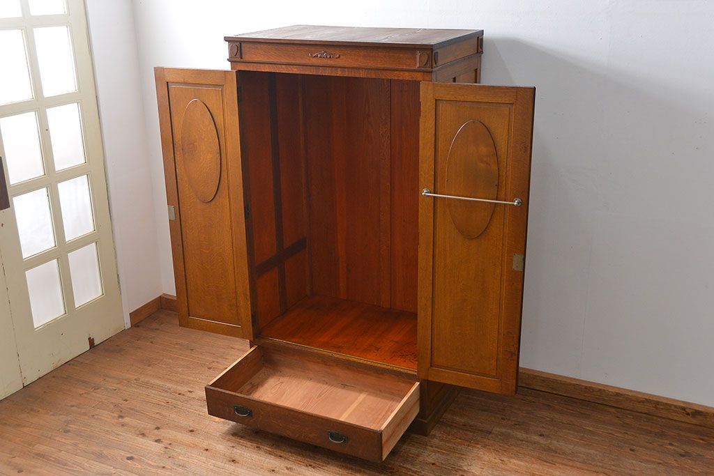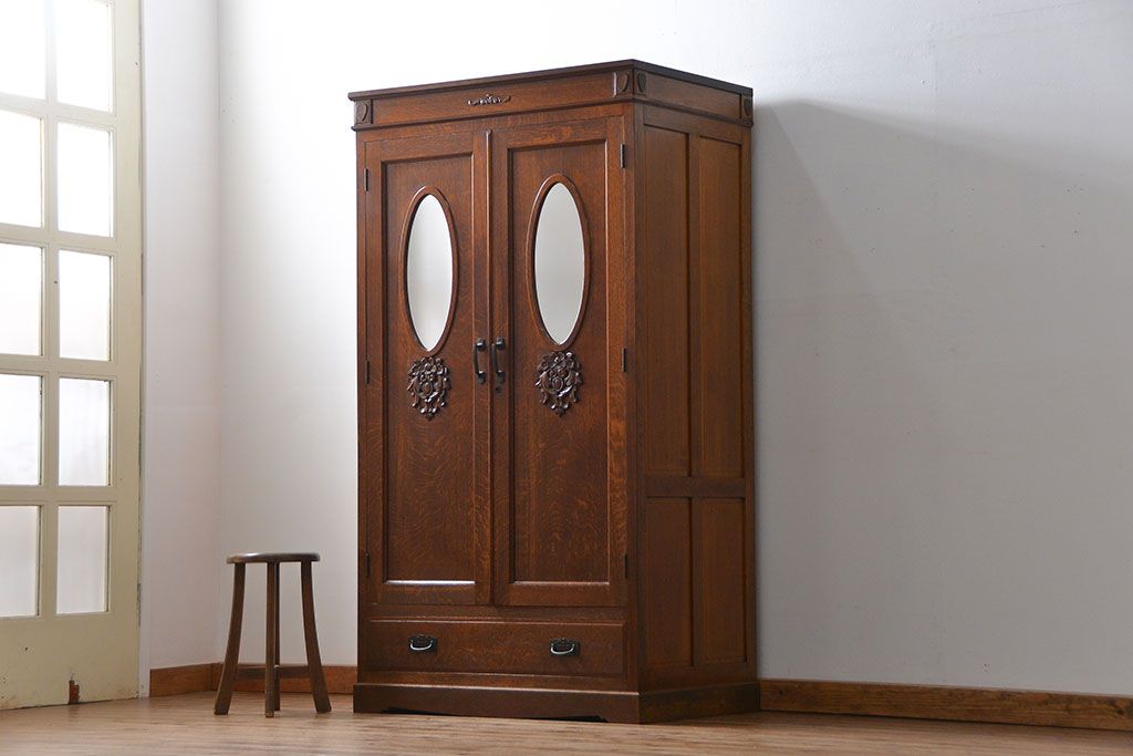 アンティーク 古いナラ材の上質なワードローブ(洋服タンス、洋服箪笥)です。