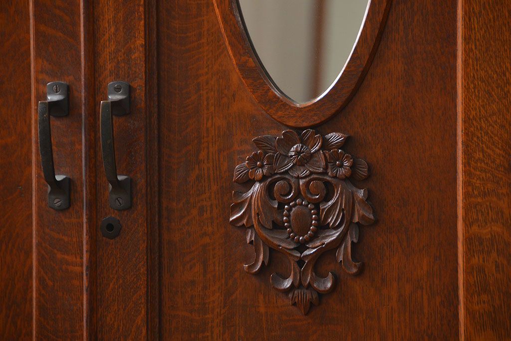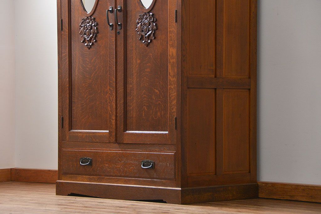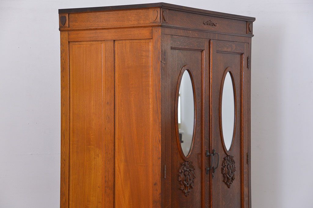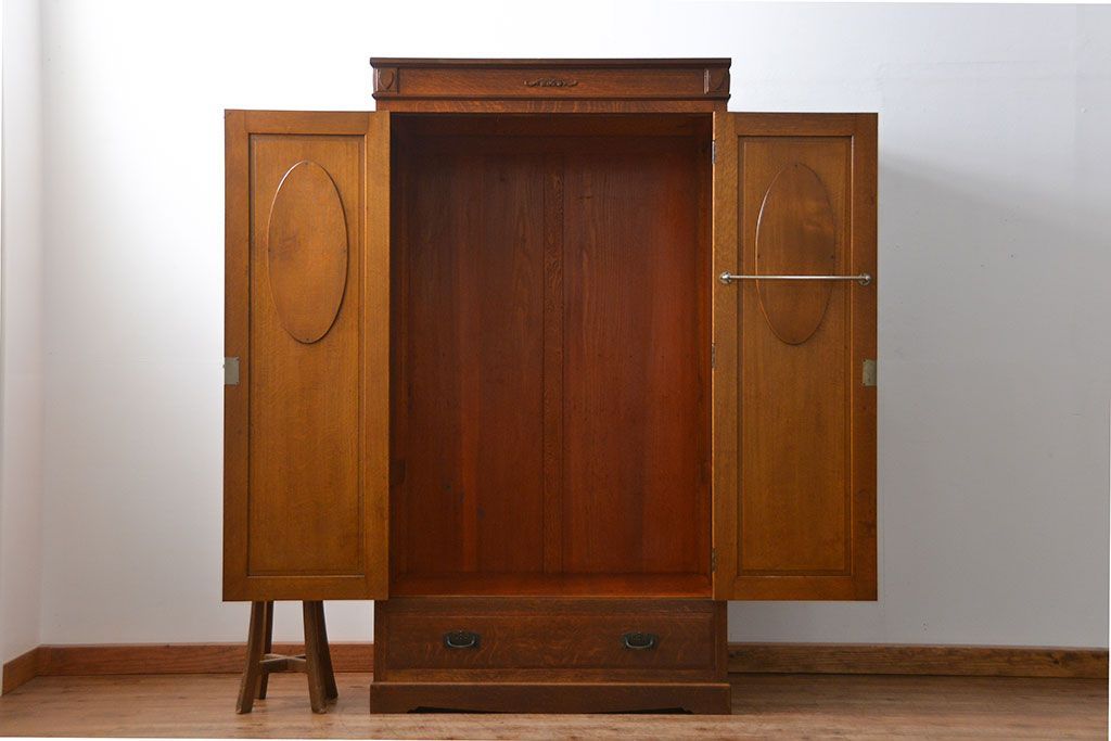 アンティーク家具 アンティーク 古いナラ材の上質なワードローブ(洋服タンス、洋服箪笥)