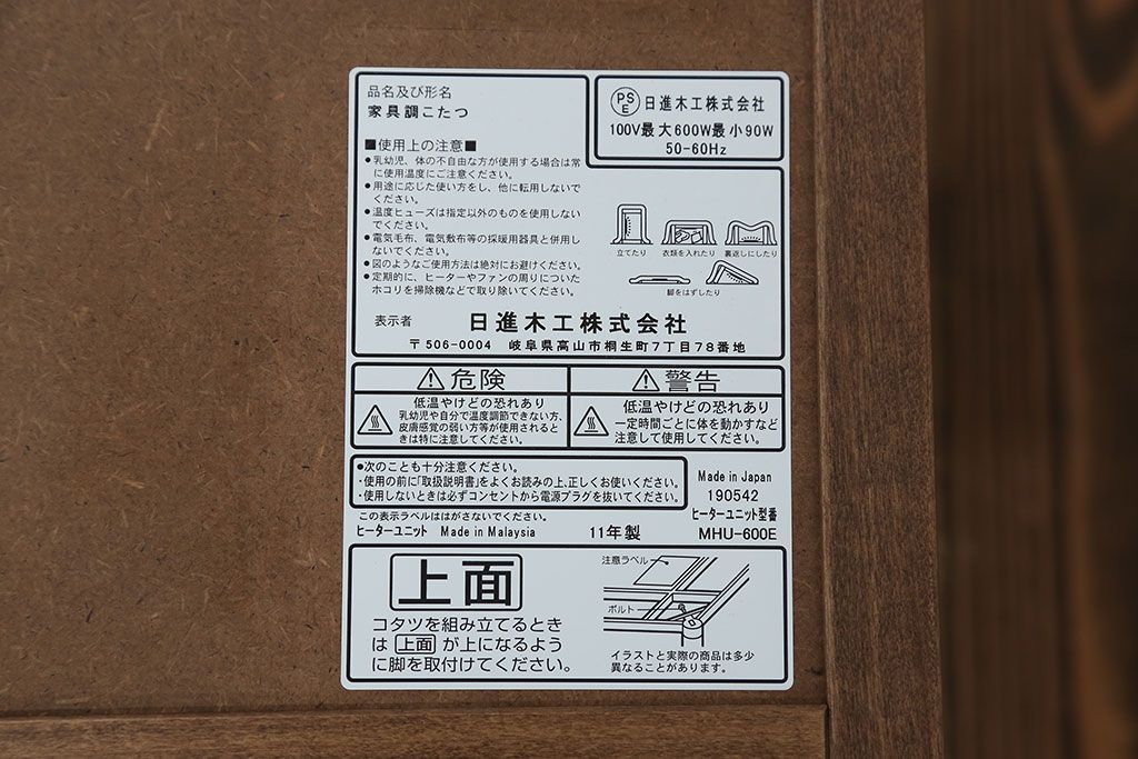 中古 アクタス取扱い 日進木工FK1 リビングテーブル 定価144900円 (炬燵、コタツ)