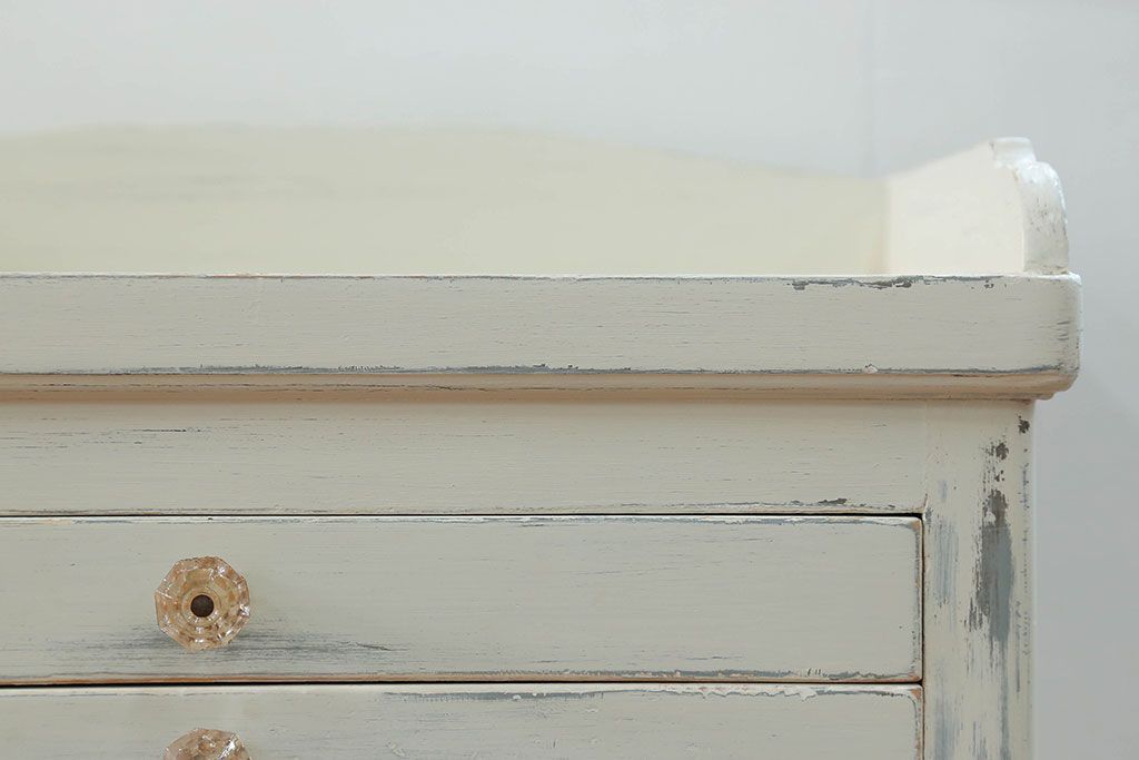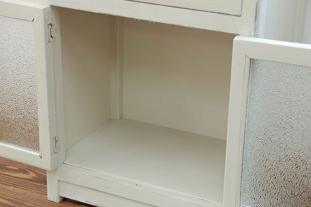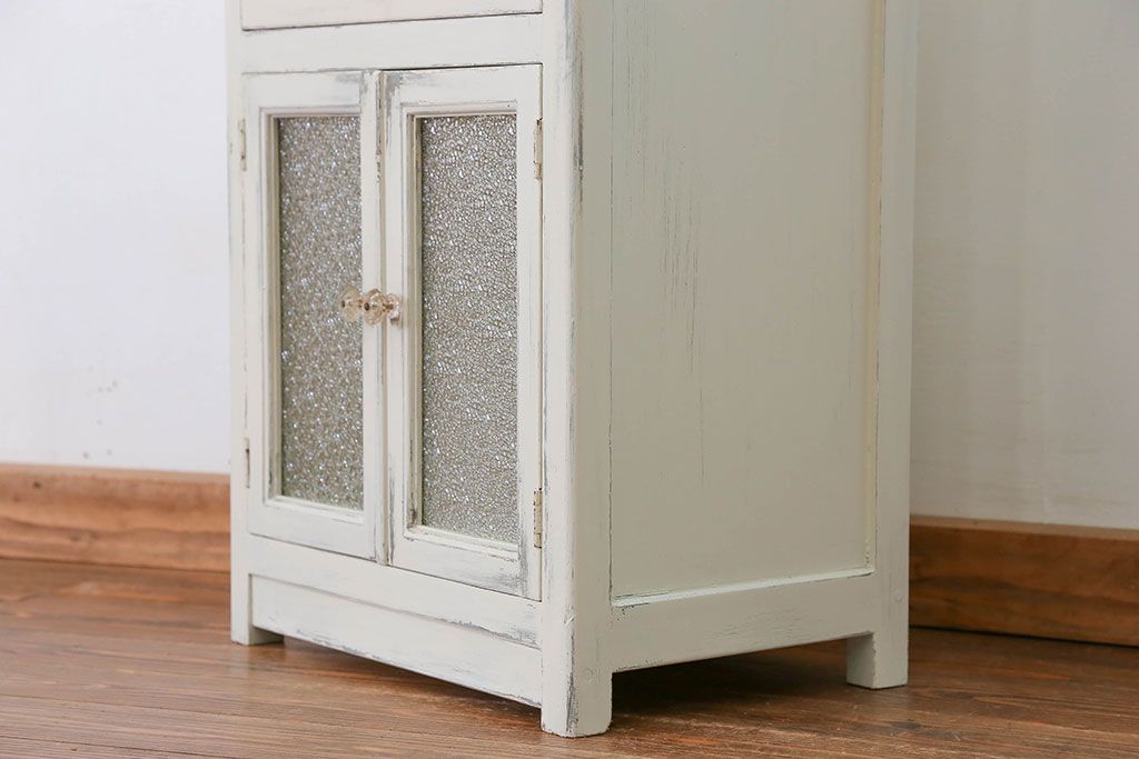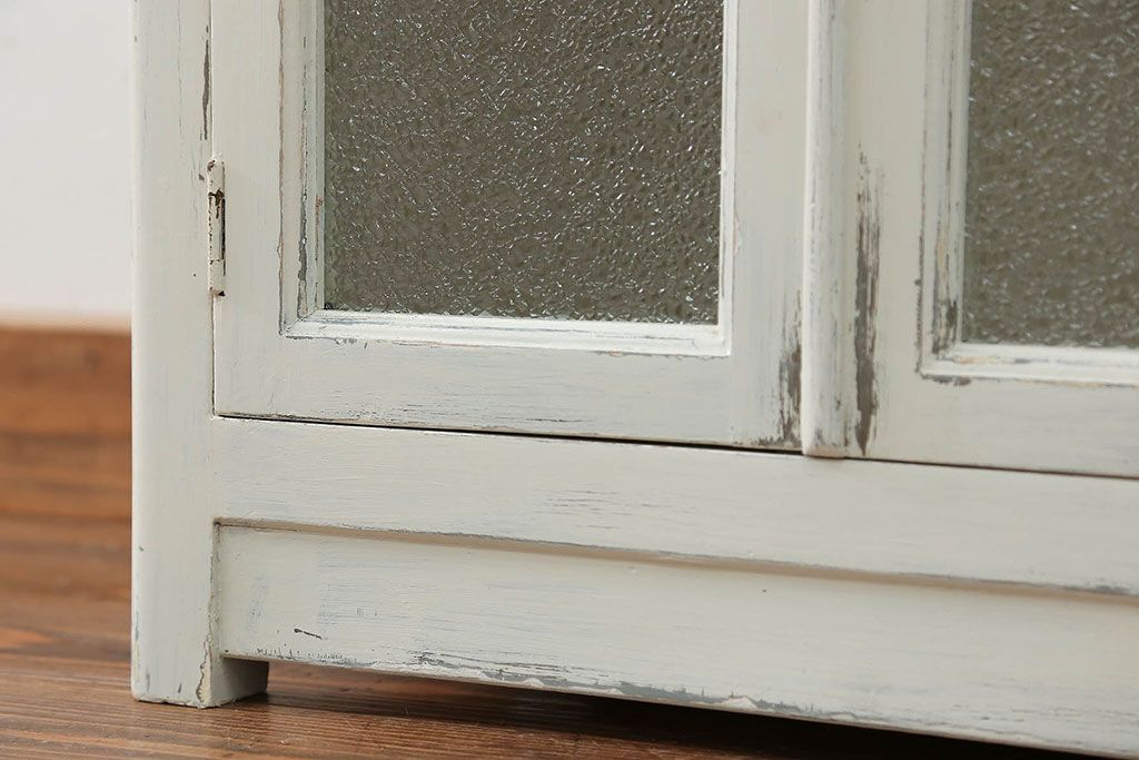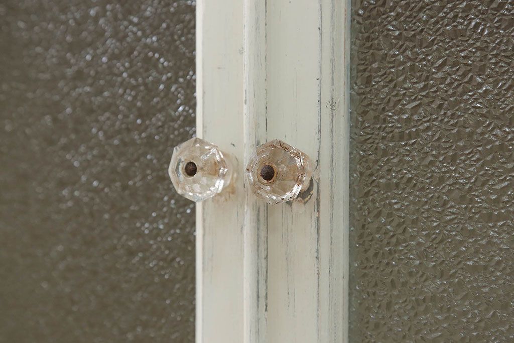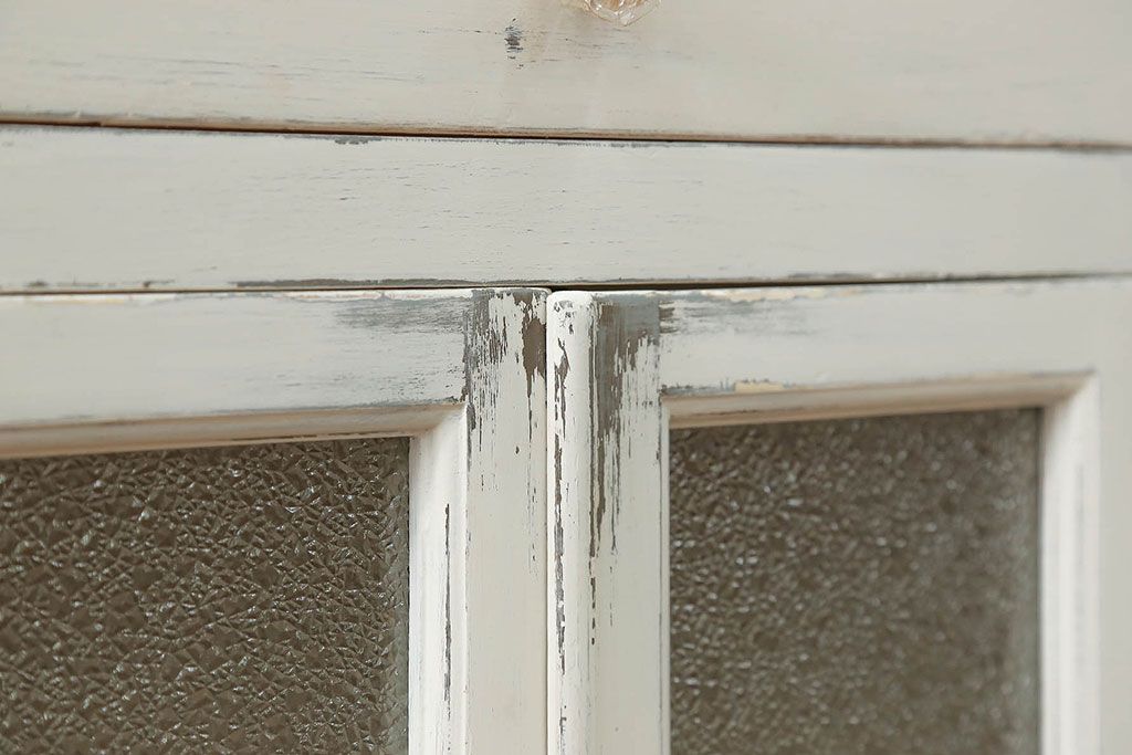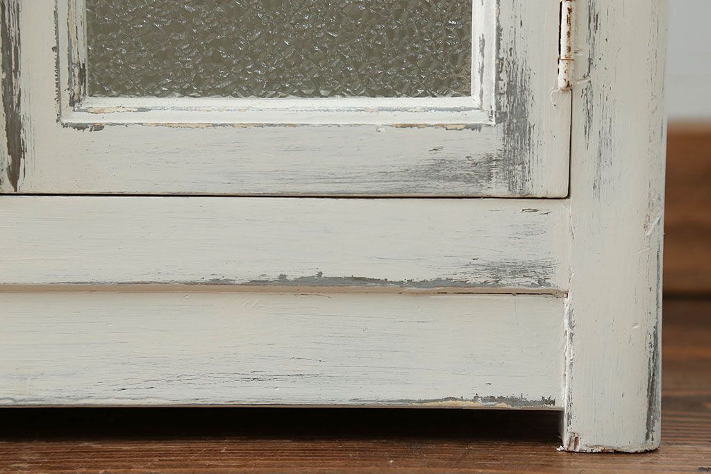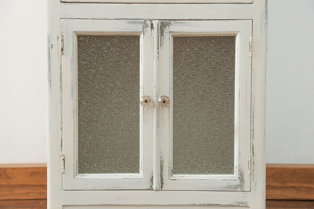 アンティーク家具 アンティークペイント ガラスの取っ手付き ダイヤガラスデンタルキャビネット(1)(収納棚、ケビント)