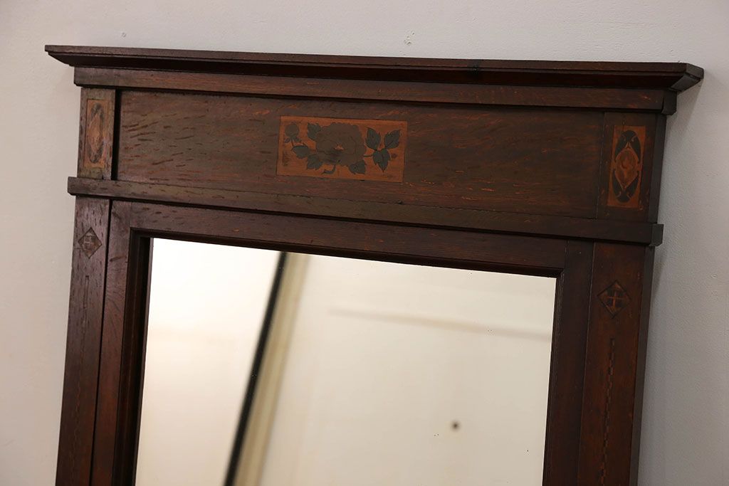 ラフジュ工房> 鏡 > アンティーク雑貨 大正ロマン 象嵌入り!大きなアンティークミラー(ウォールミラー、壁掛け鏡)