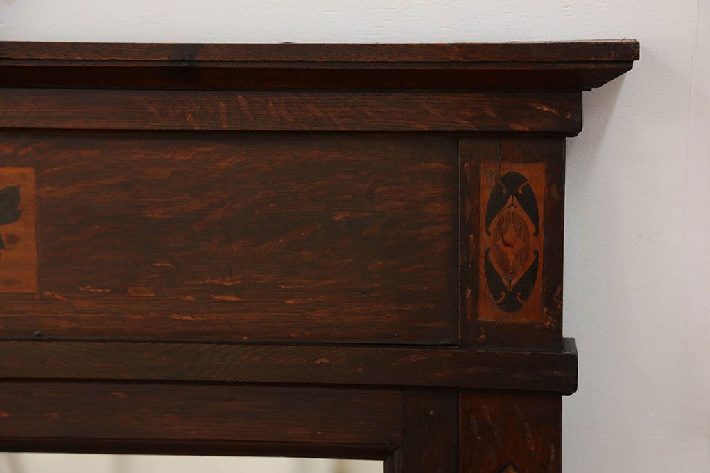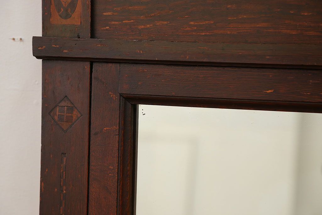 アンティーク雑貨 大正ロマン 象嵌入り!大きなアンティークミラー(ウォールミラー、壁掛け鏡)