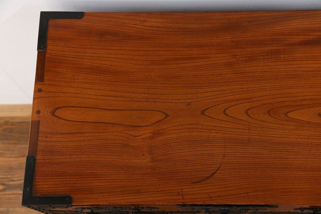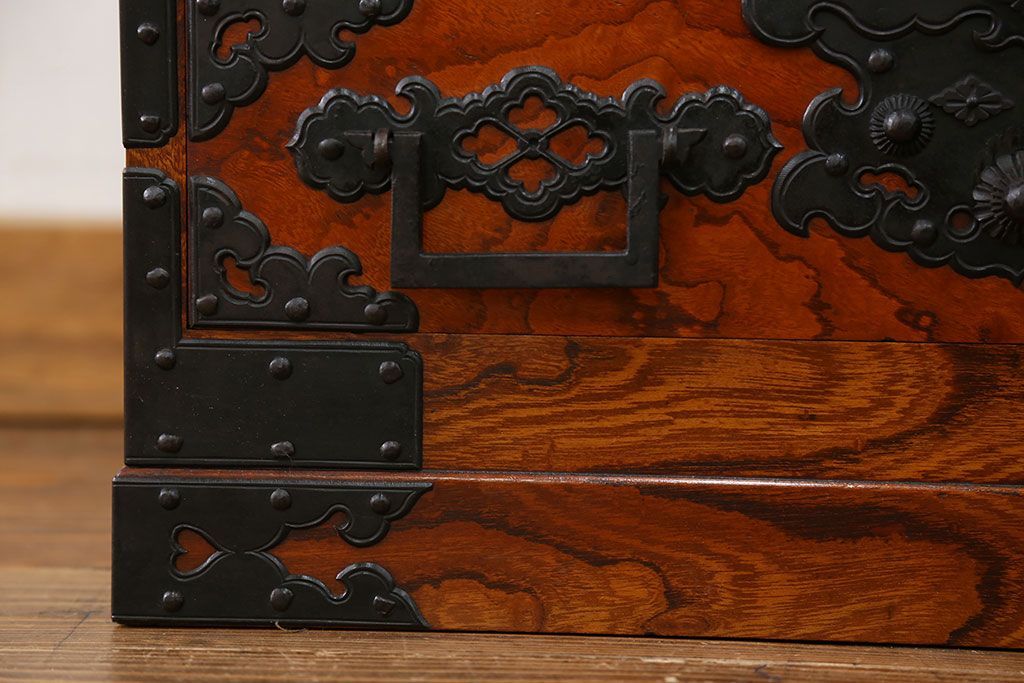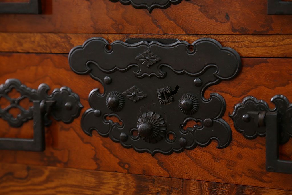 アンティーク家具 三方欅 木工作家 手打ち金具 佐渡帳場箪笥(船箪笥)