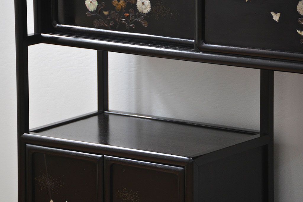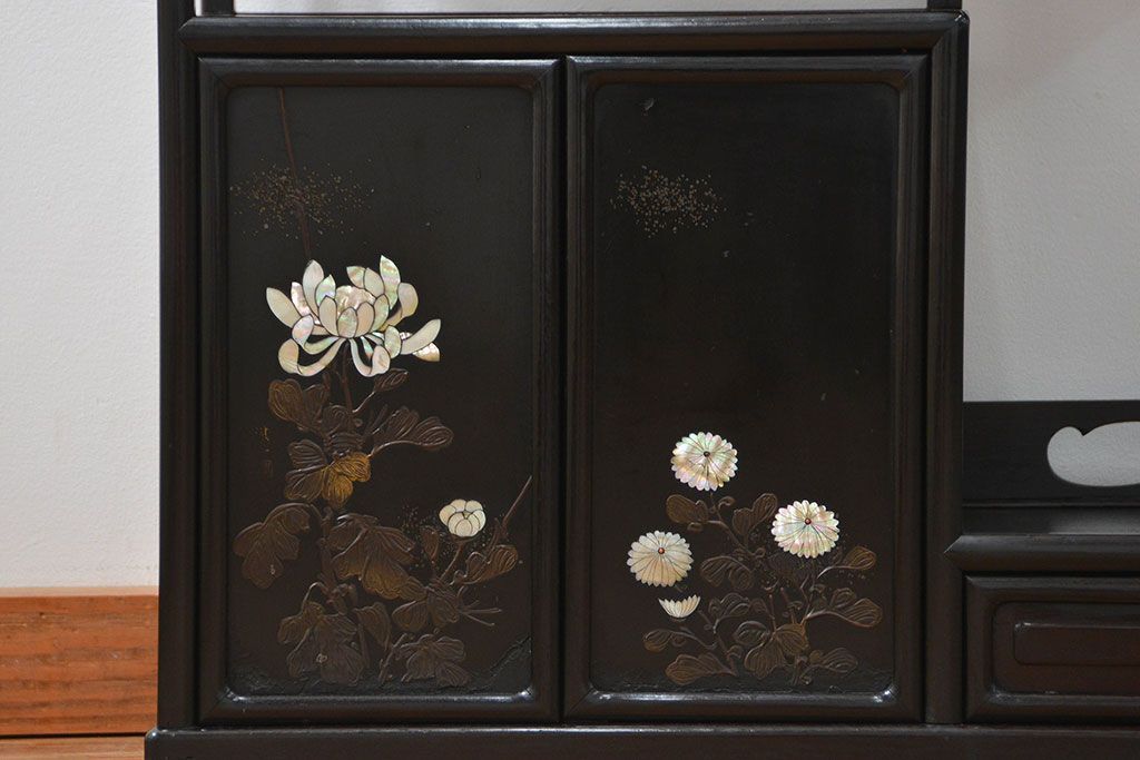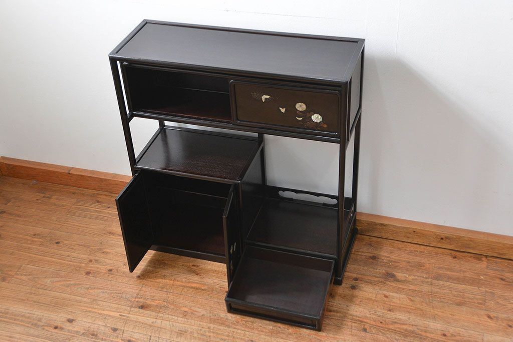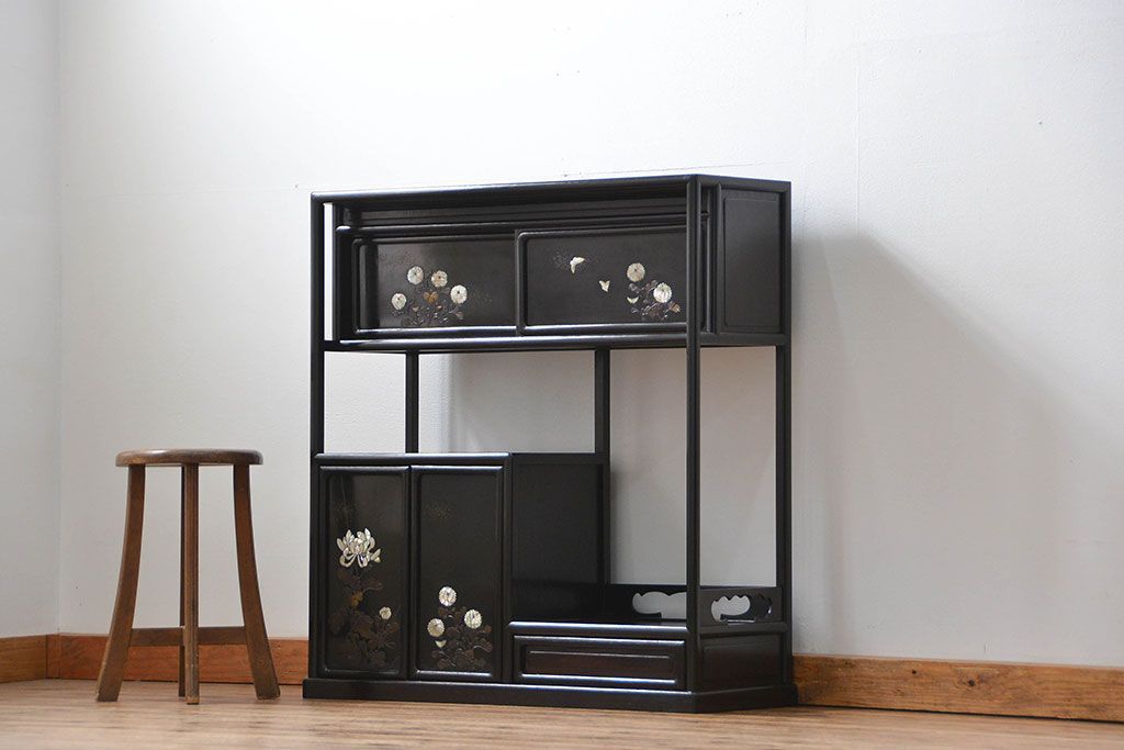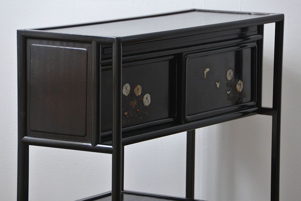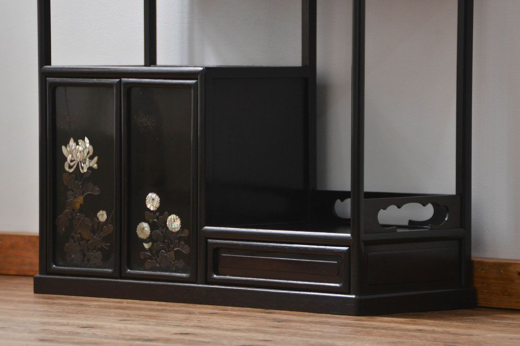 アンティーク家具 古民具・骨董 唐木製の蒔絵と螺鈿細工の飾り棚(茶棚)