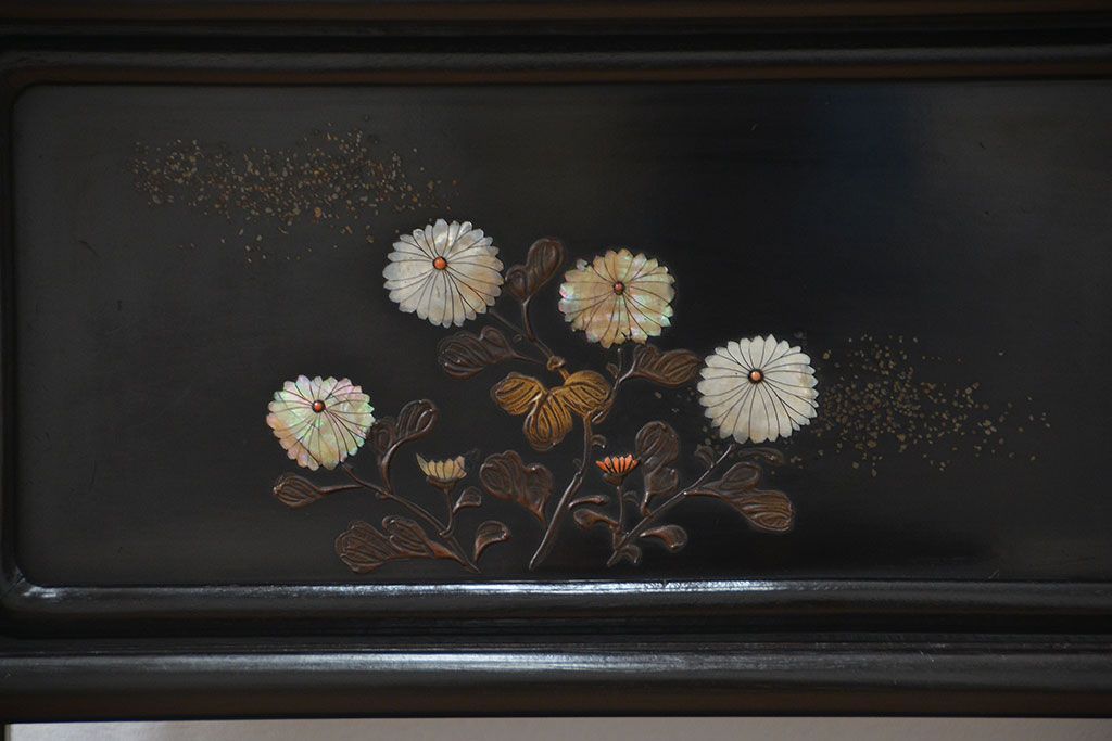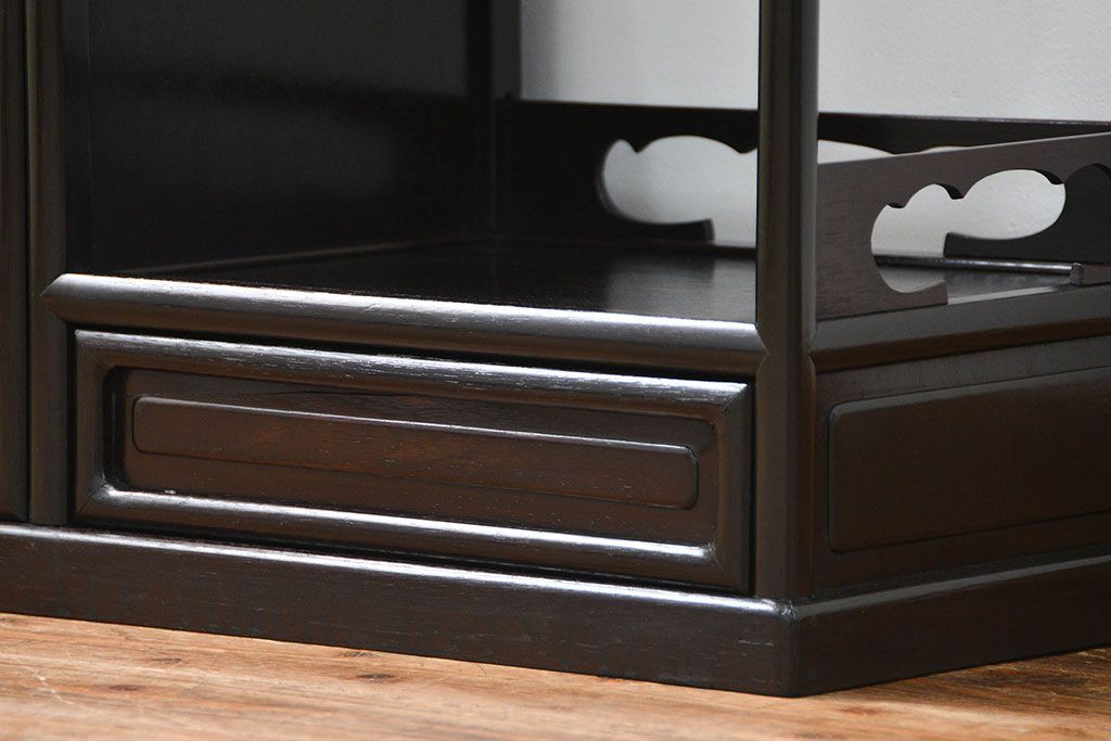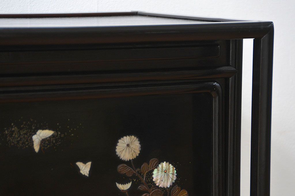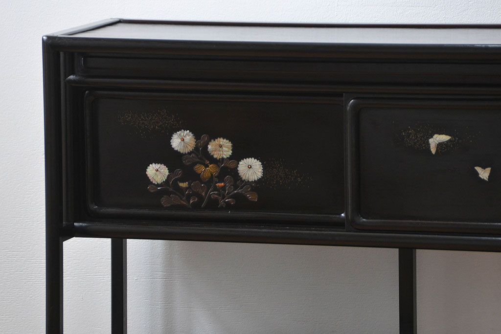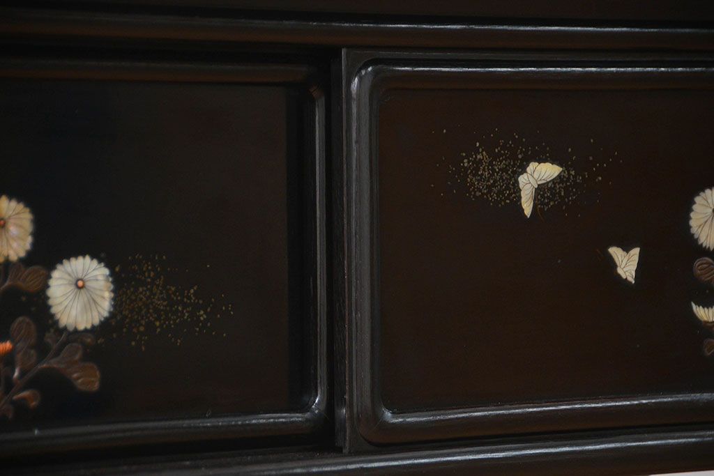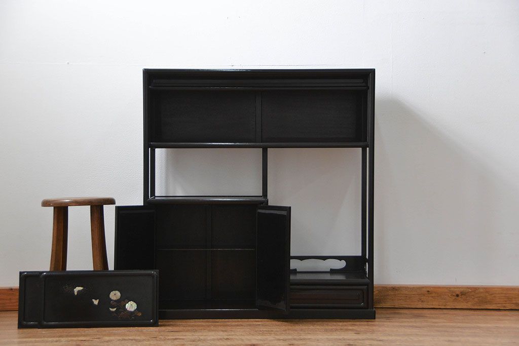 アンティーク家具 古民具・骨董 唐木製の蒔絵と螺鈿細工の飾り棚(茶棚)
