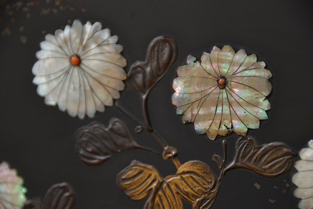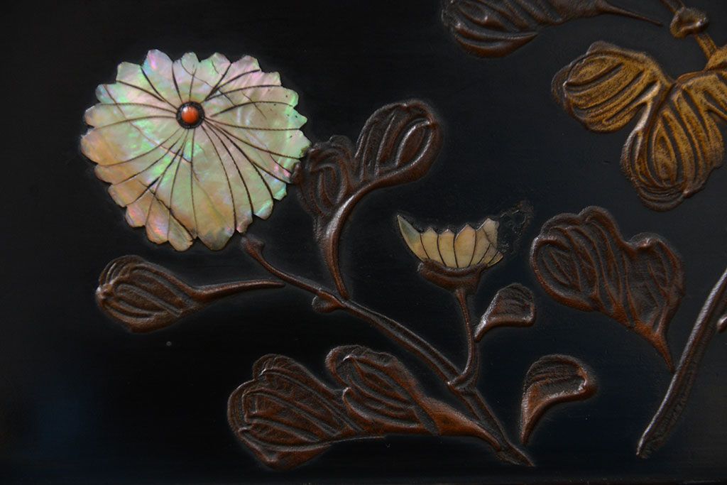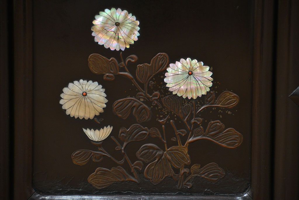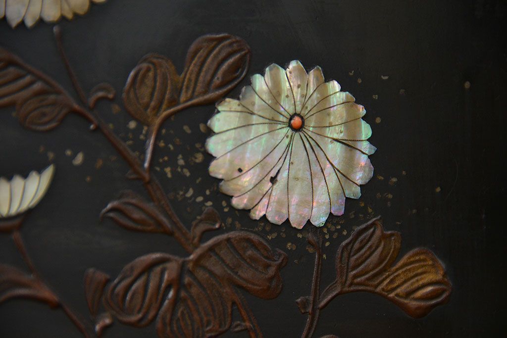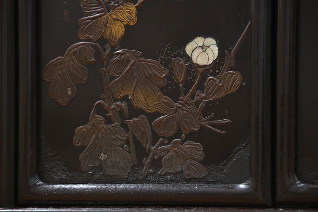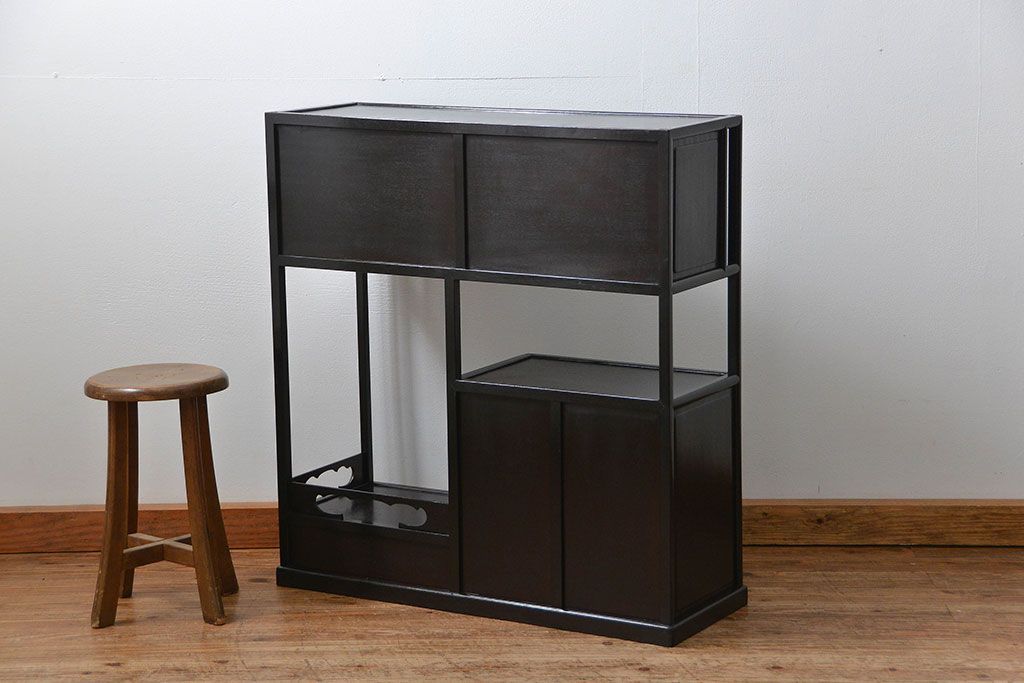 アンティーク家具 古民具・骨董 唐木製の蒔絵と螺鈿細工の飾り棚(茶棚)