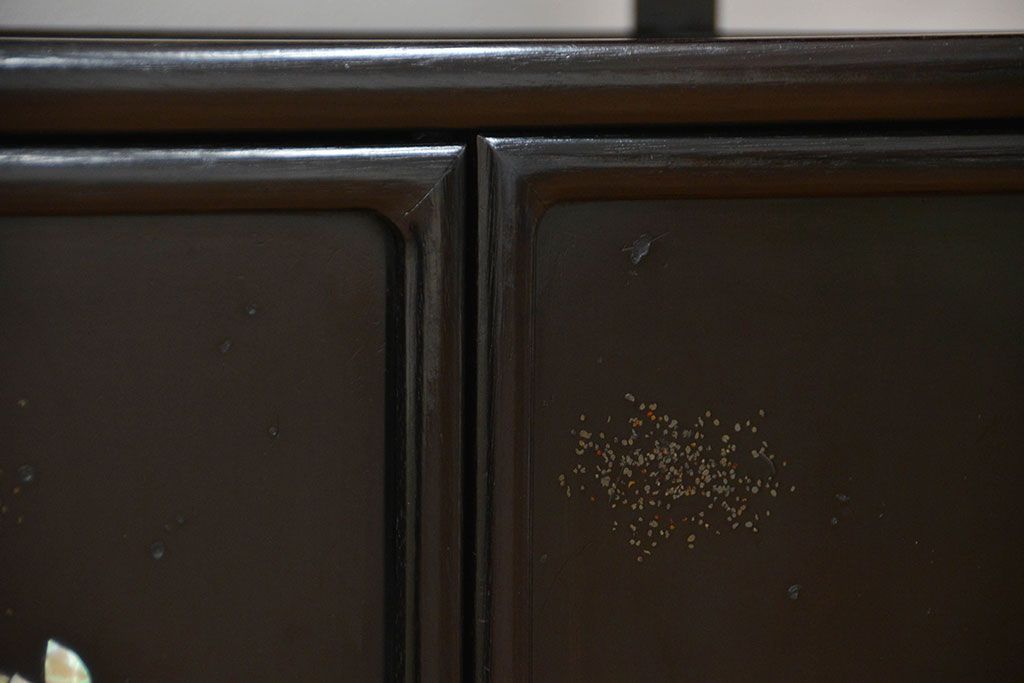 画像にありますように下部扉の鏡板の塗りに多少のイタミがありますので、ご理解の上お願いします。