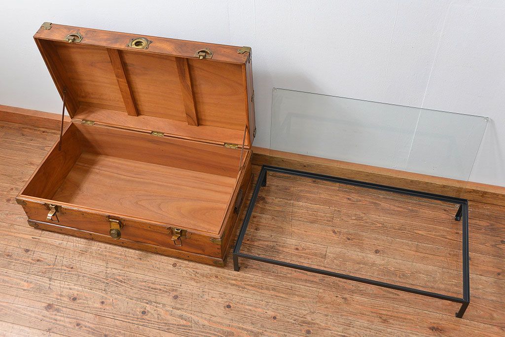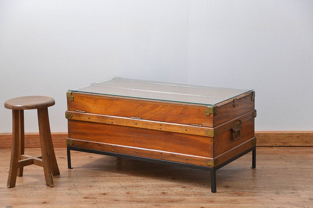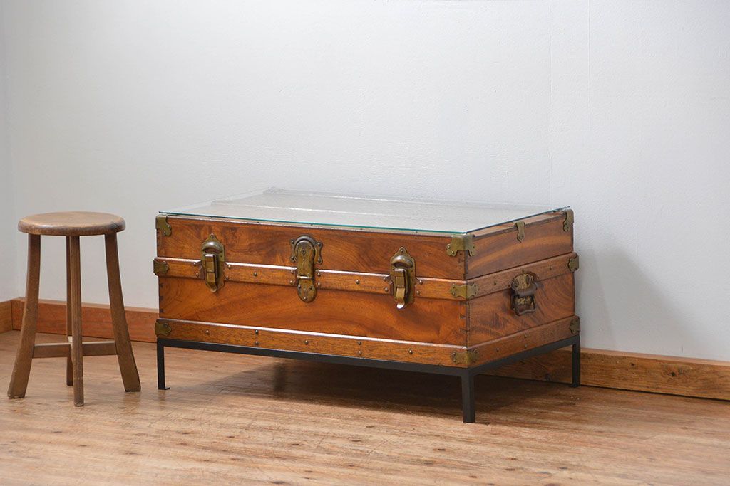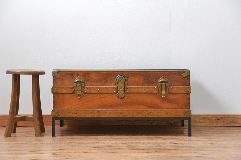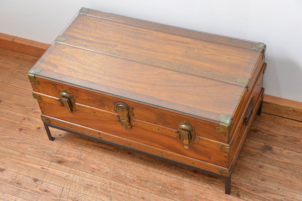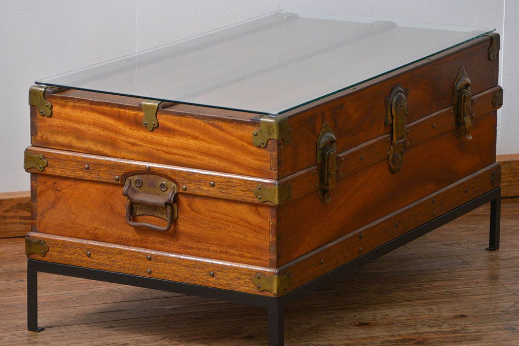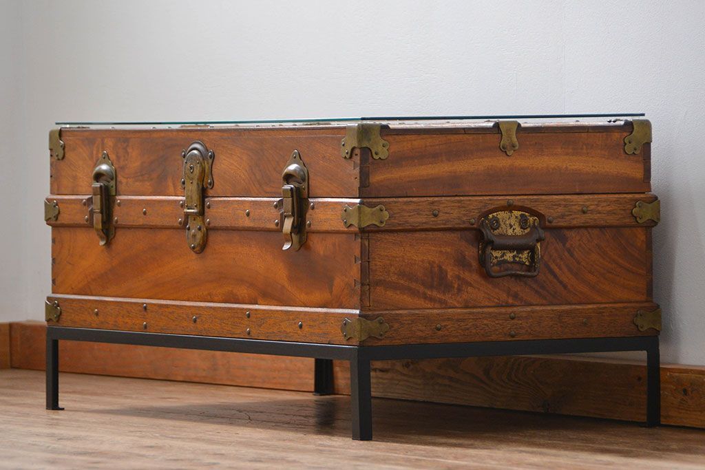 アンティーク家具 ドイツアンティーク 鉄脚付き 船トランクセンターテーブル