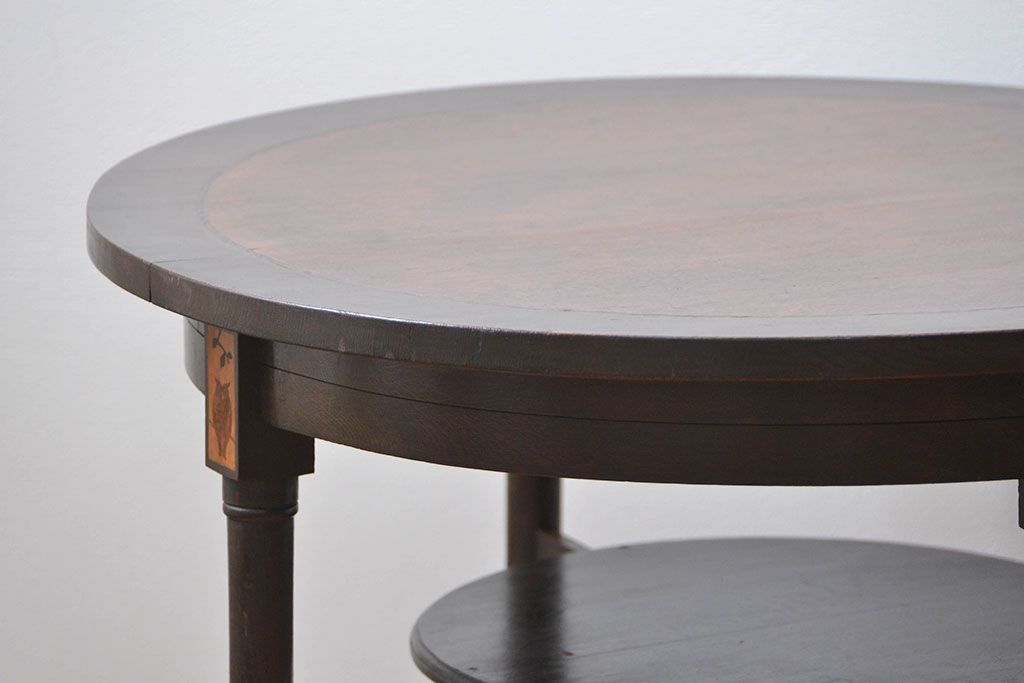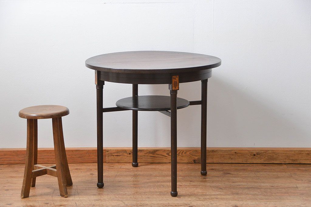 アンティーク家具 大正ロマン 象嵌入りのアンティークラウンドテーブル (コーヒーテーブル)