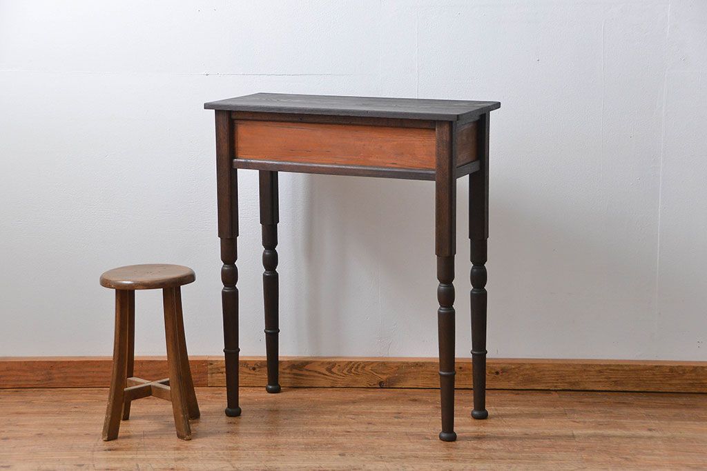 アンティーク家具 大正ロマン 古い栗材の高脚サイドテーブル (コンソールテーブル)