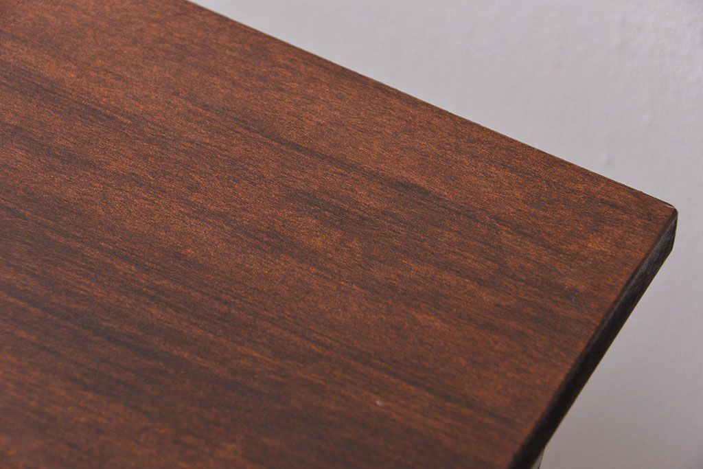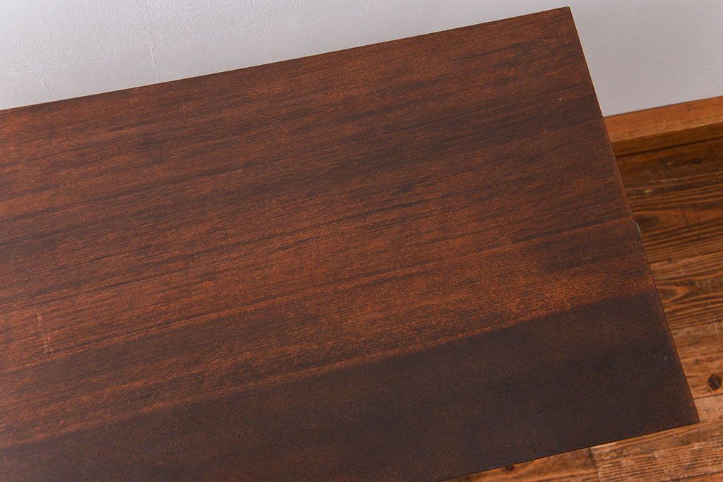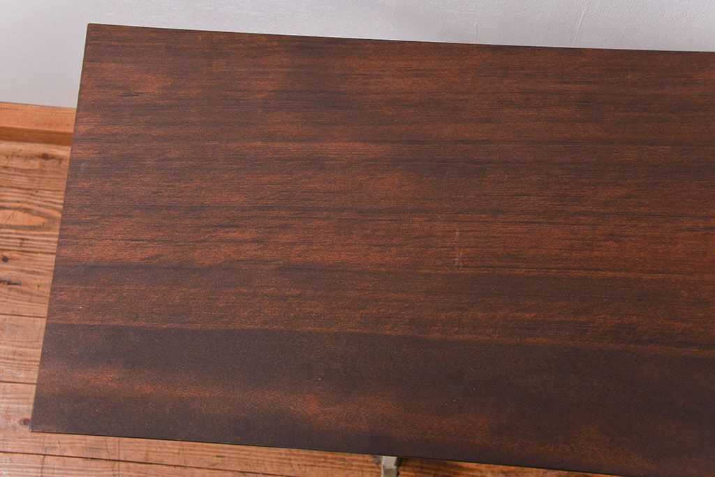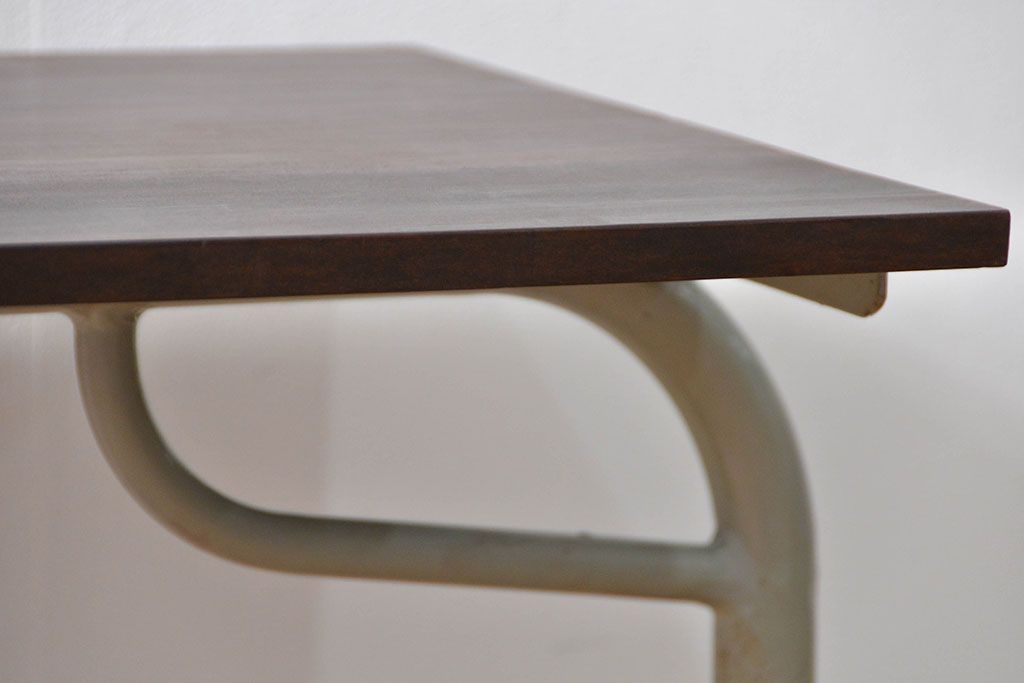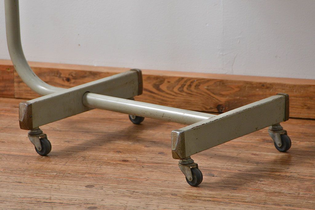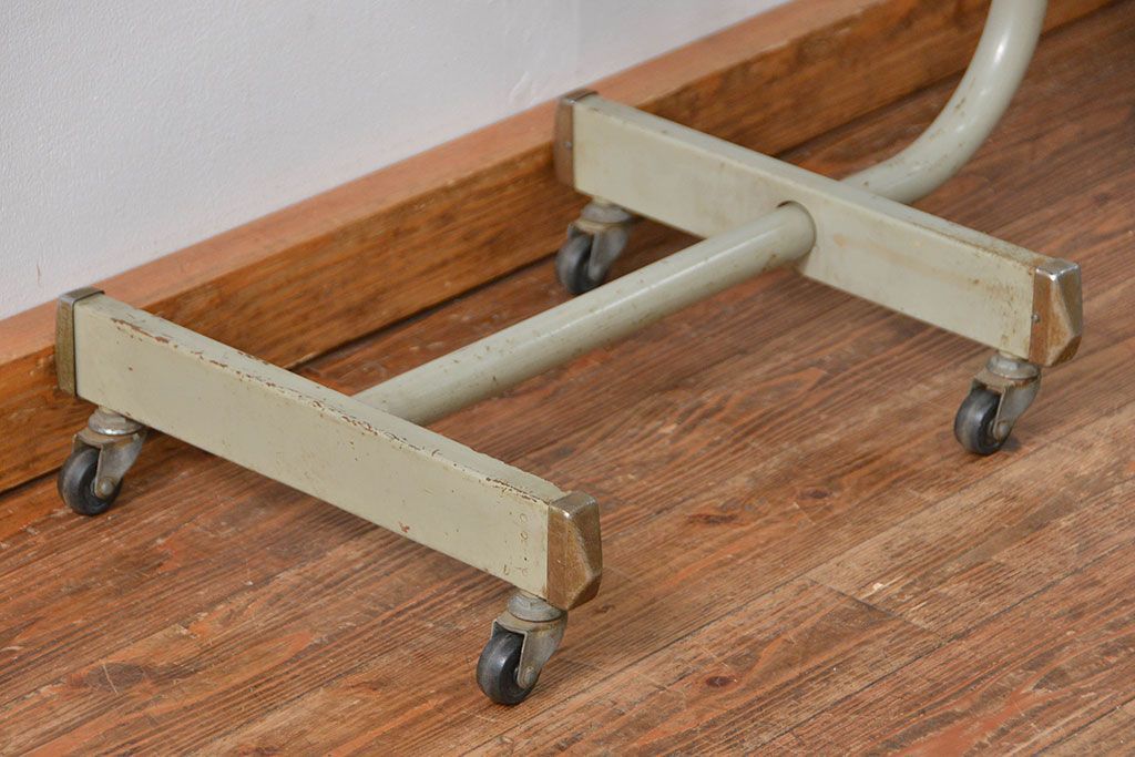 アンティーク家具 古い病院の天板無垢材の伸縮鉄脚テーブル2(作業台/キャスター付き)(サイドテーブル)