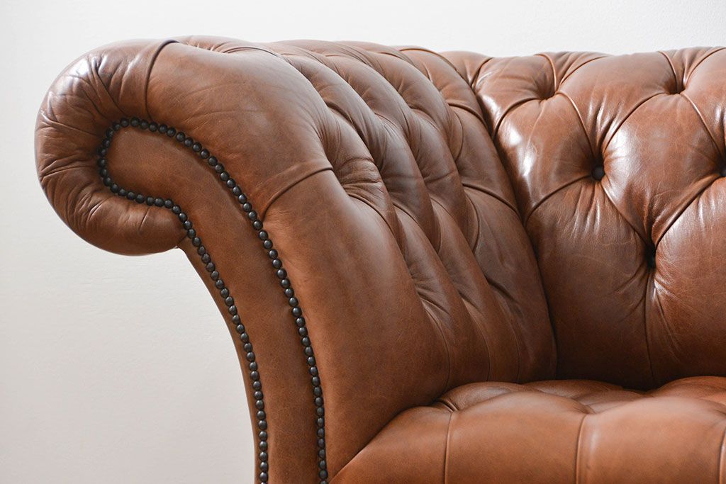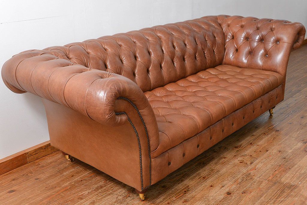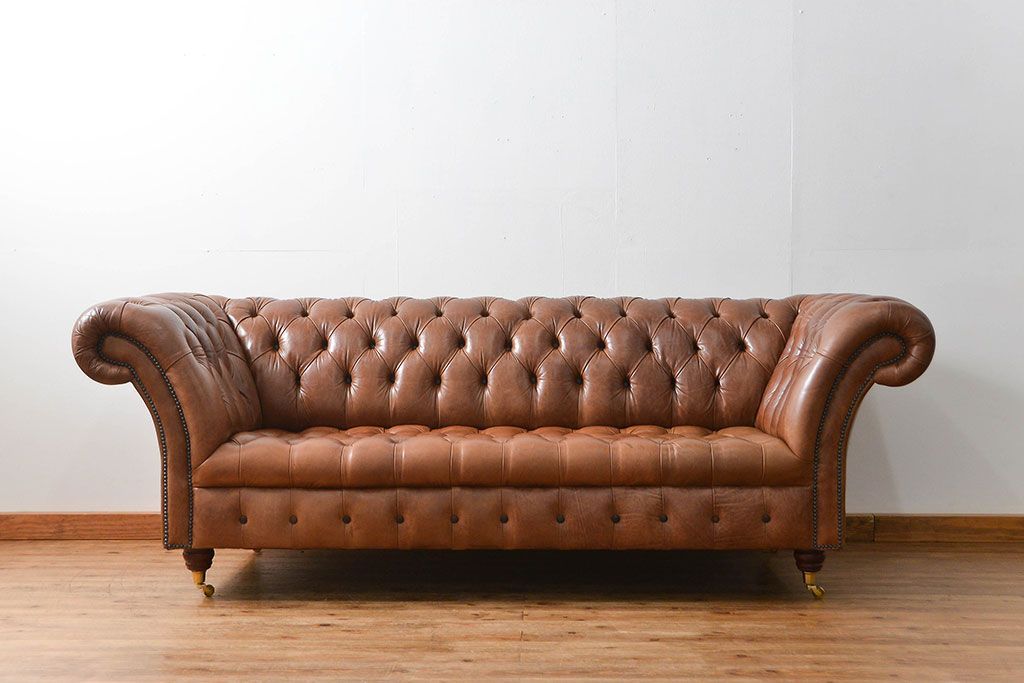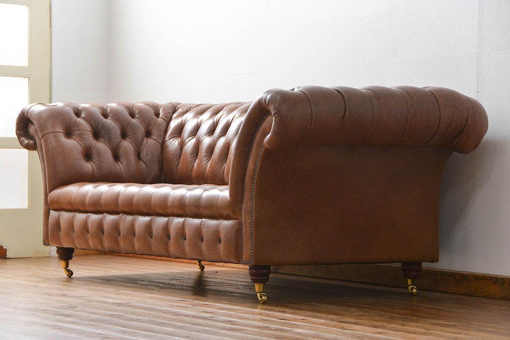 ラフジュ工房> ソファ > ヴィンテージ家具 イギリスビンテージ オーダーメイド品 本革ハイグレード チェスターフィールド ソファ