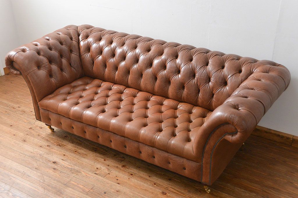 ラフジュ工房> ソファ> チェスターフィールド > ヴィンテージ家具 イギリスビンテージ オーダーメイド品 本革ハイグレード チェスターフィールド ソファ