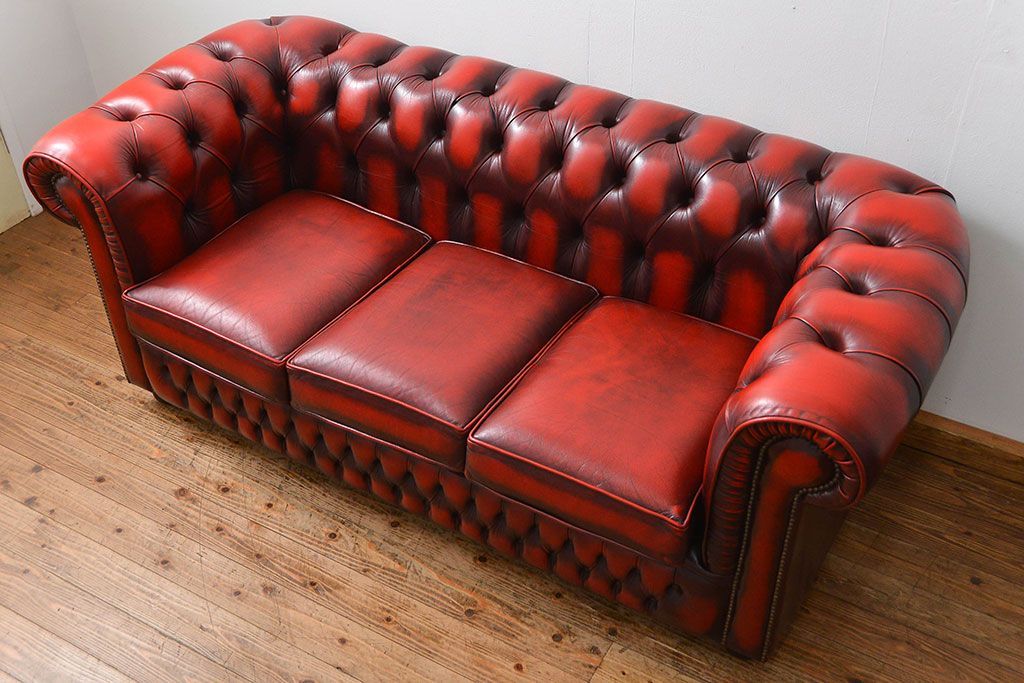 中古 イギリス直輸入 本革 チェスターフィールド ソファ