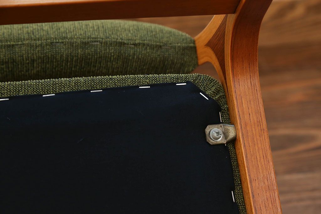 座面カバーとクッション(座面内スポンジ)は当店にて張り替えておりますので、しっかりとしております。