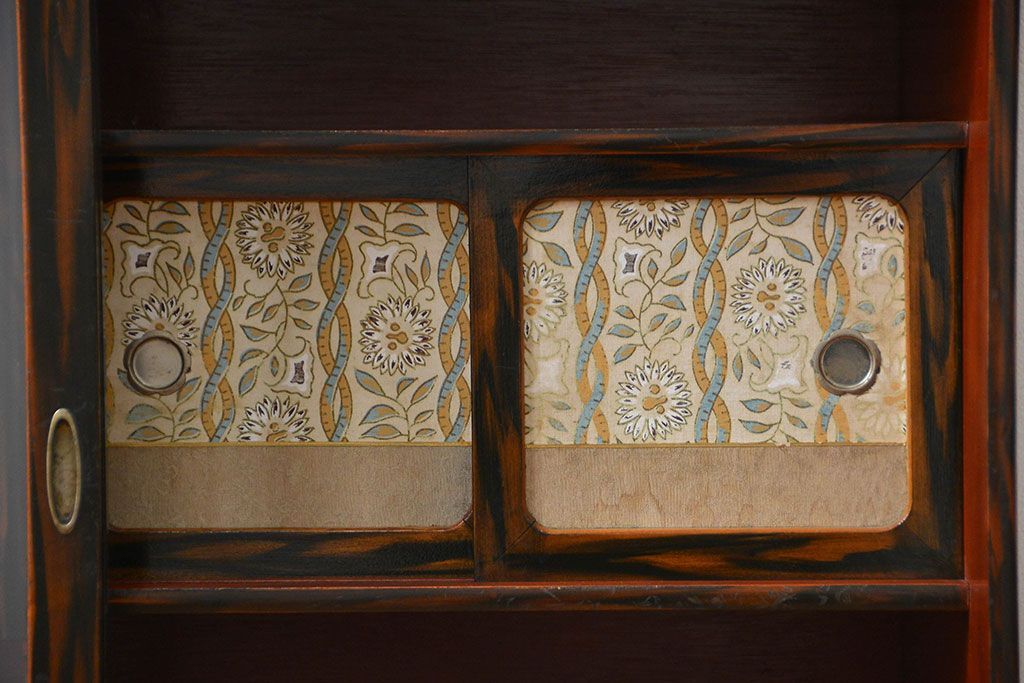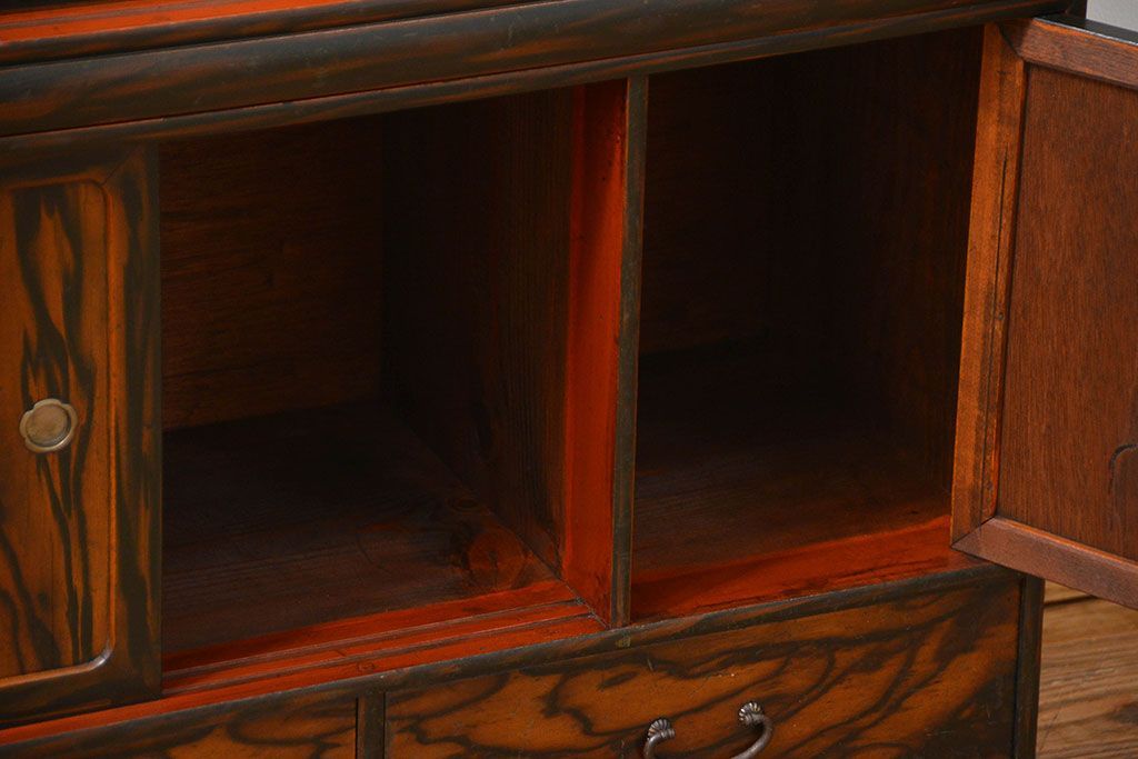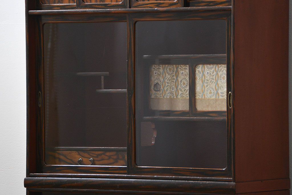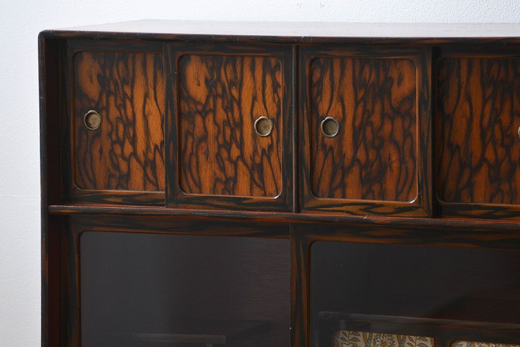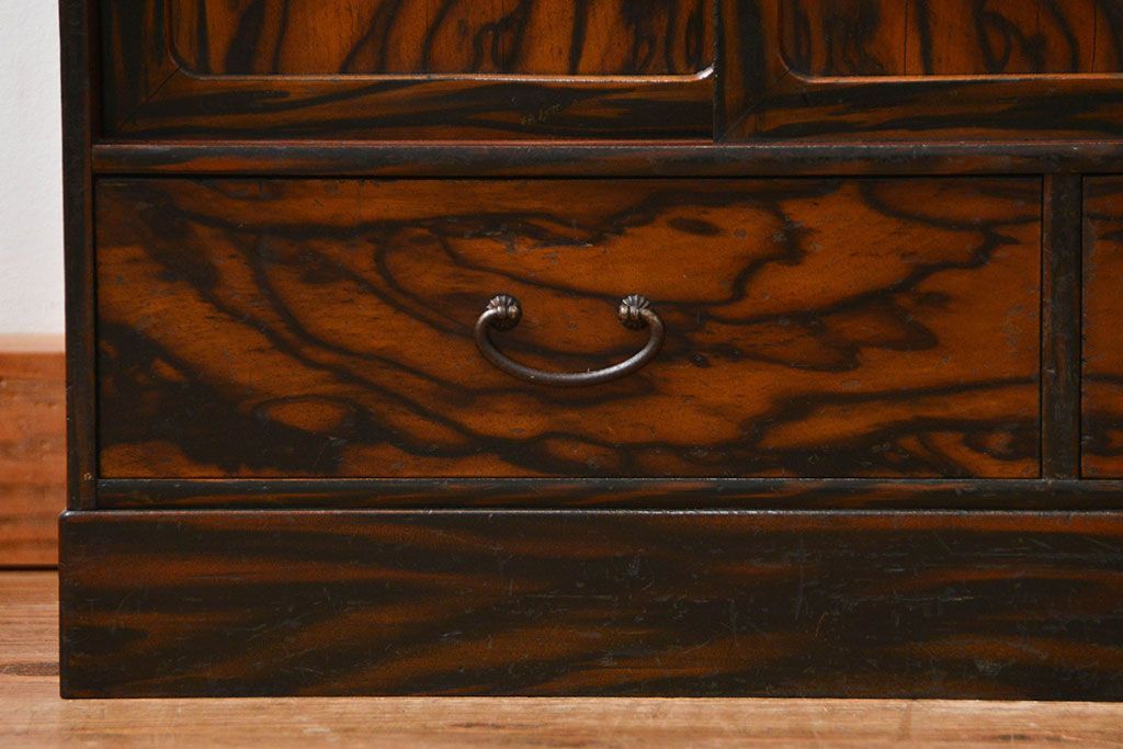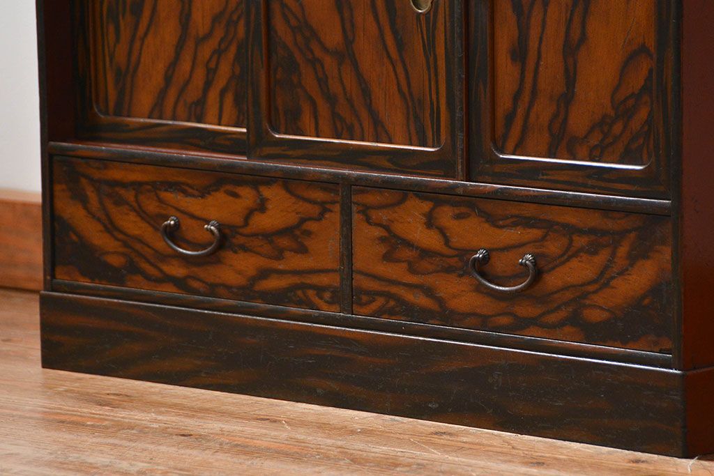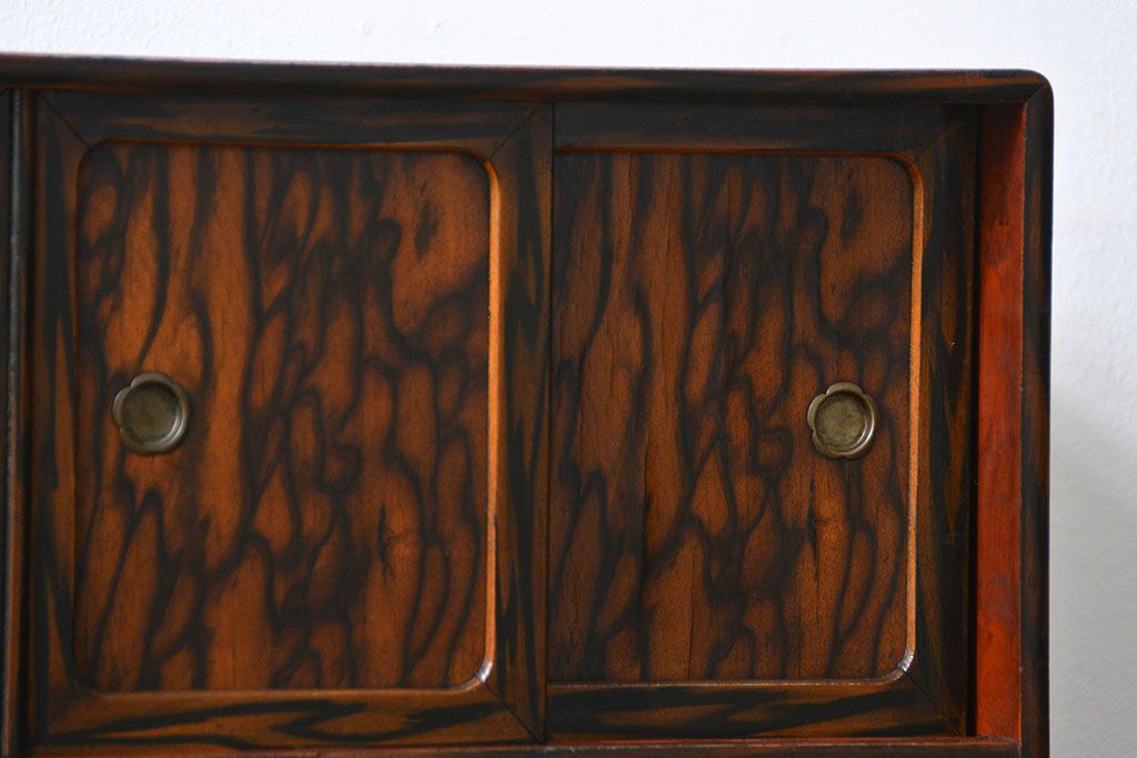 レトロ家具 昭和レトロ 小振りな黒柿杢目茶箪笥(収納棚)