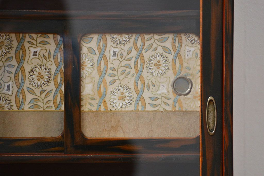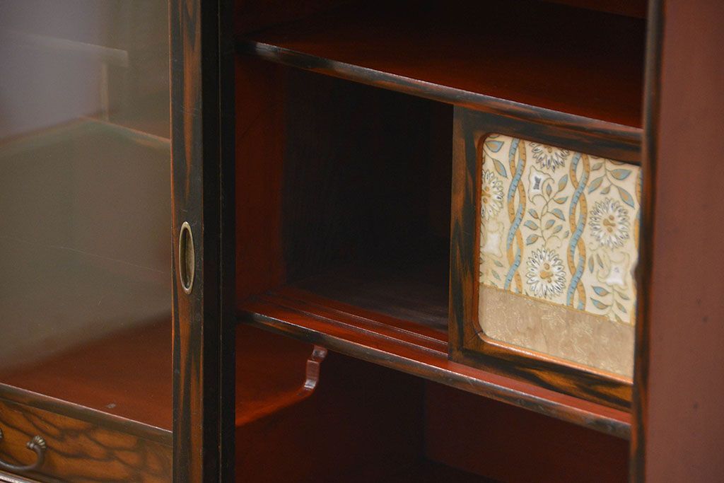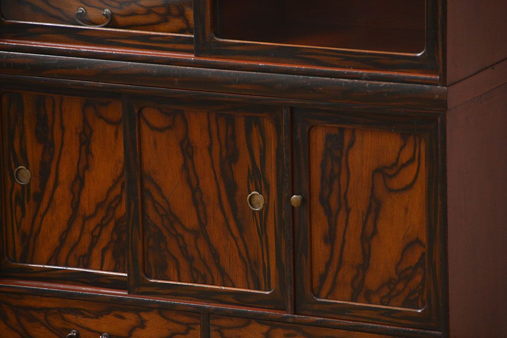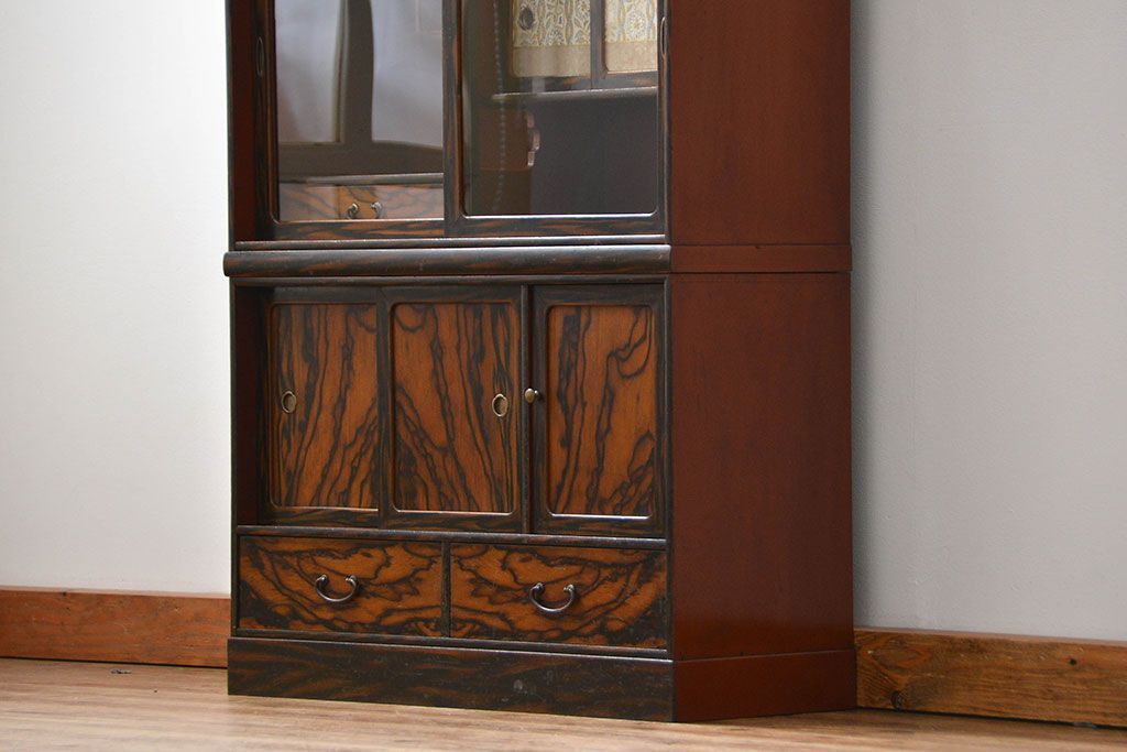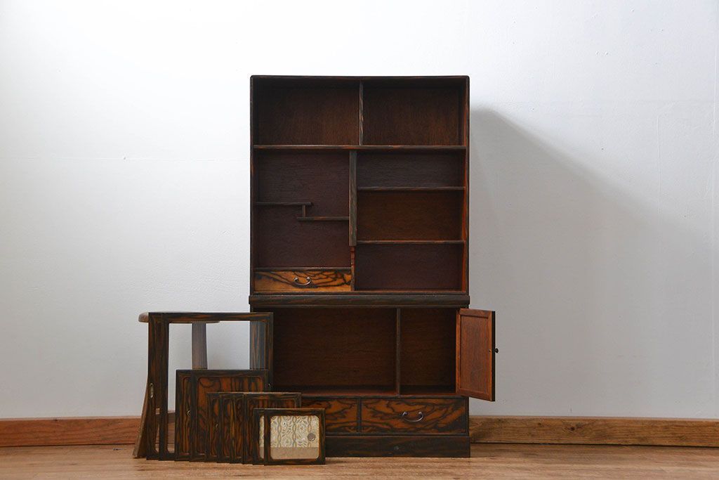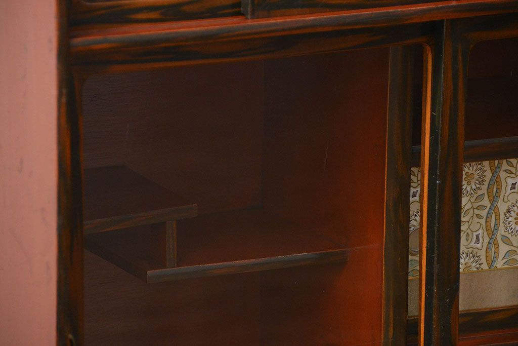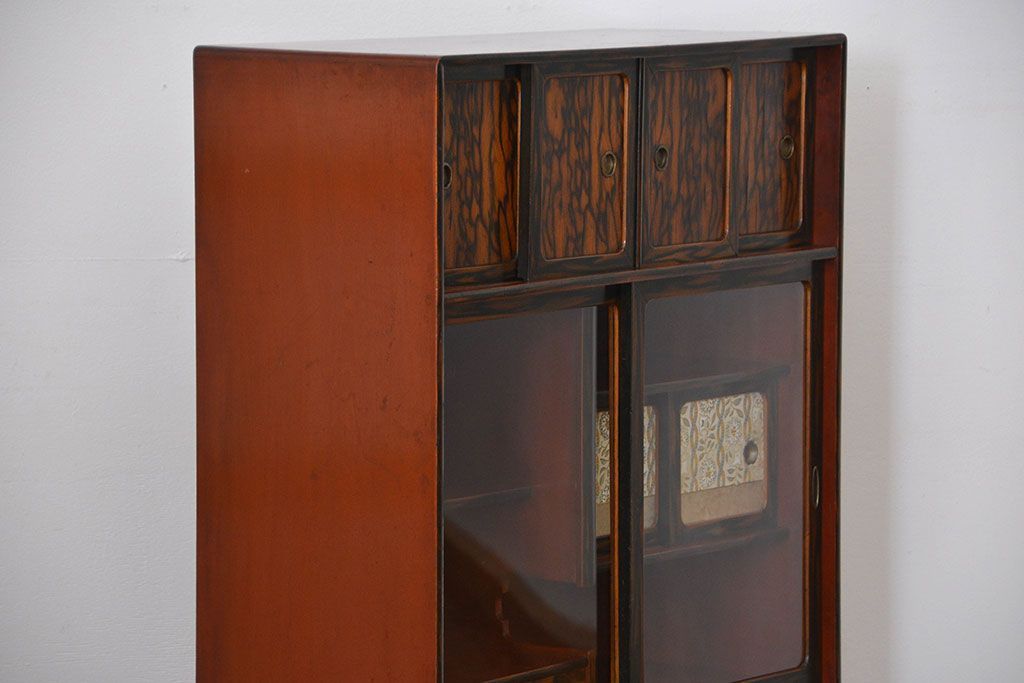 レトロ家具 昭和レトロ 小振りな黒柿杢目茶箪笥(収納棚)